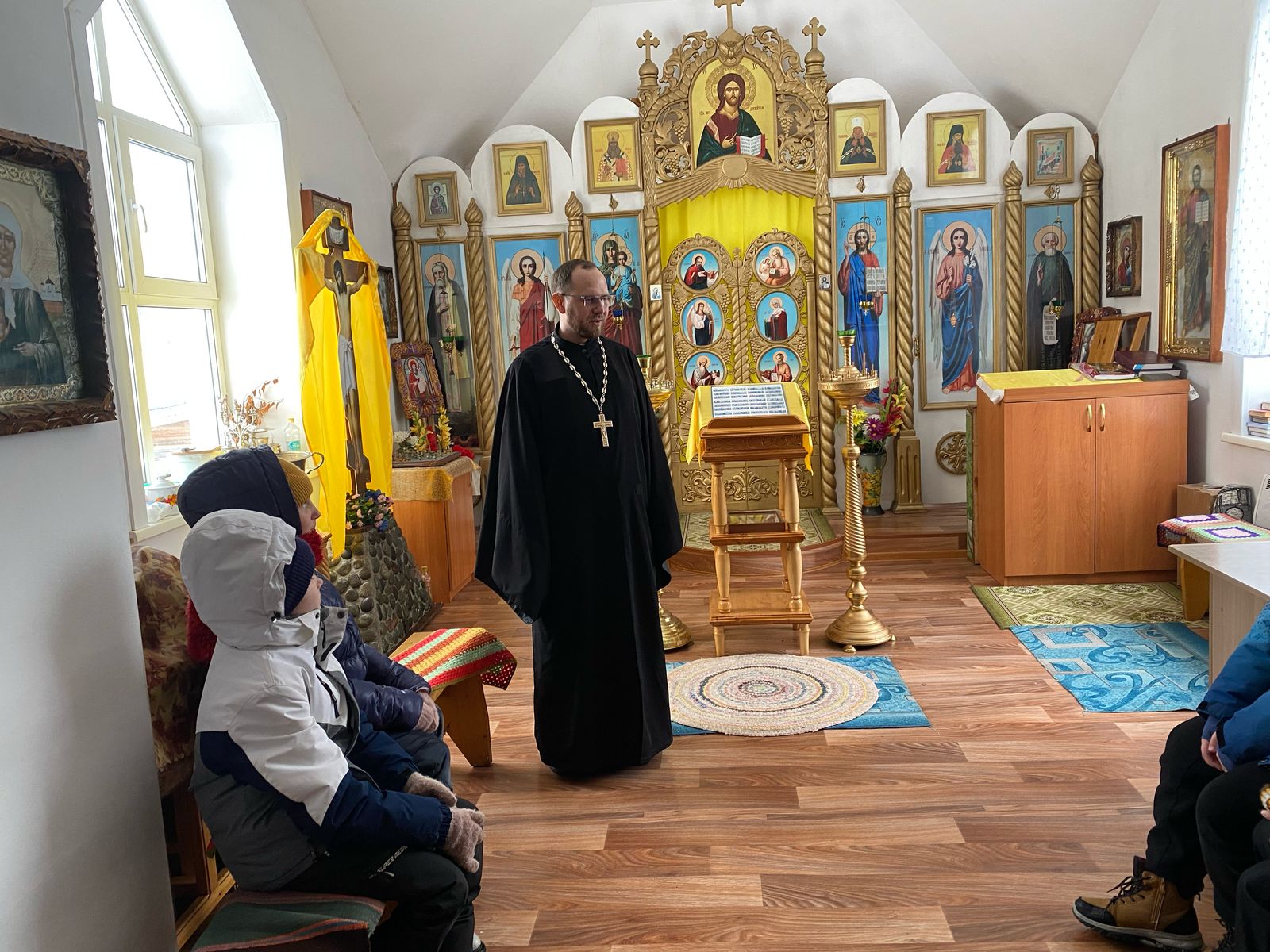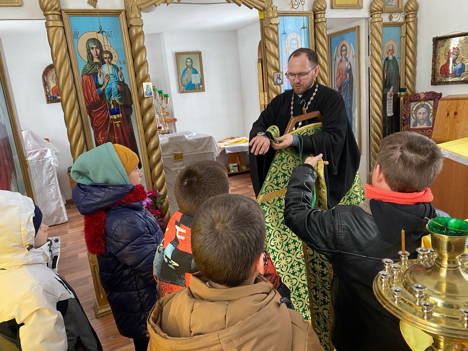 Урок на тему " Что такое Божий храм" провел настоятель храма иерей Сергий Юречко совместно с учителям Золотухиной Анастасией Васильевной. Отец Сергий рассказал о храме, его истории, показал церковную утварь, облачение священника.