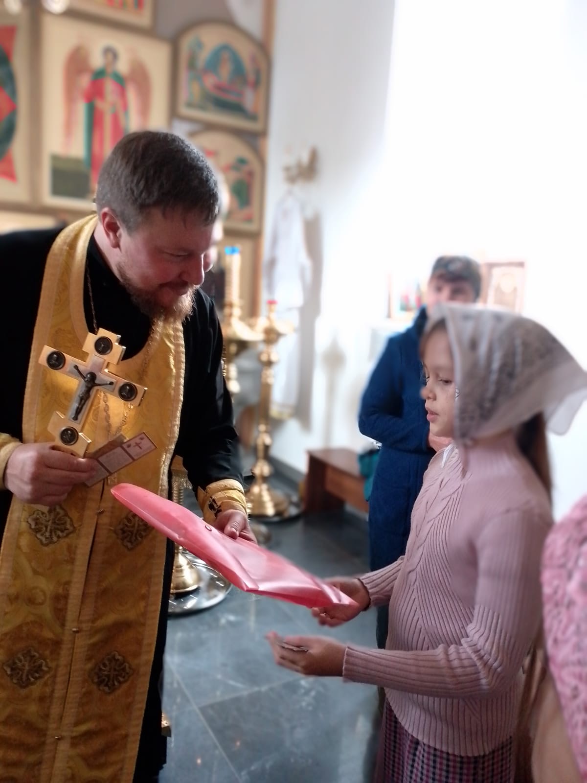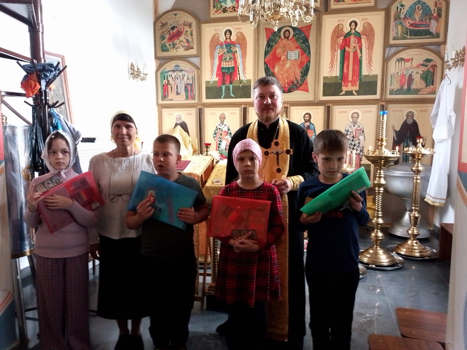 Каждому ребёнку были вручены памятные иконы и необходимые учебные принадлежности, пожертвованные социальным отделом Бийской епархии.