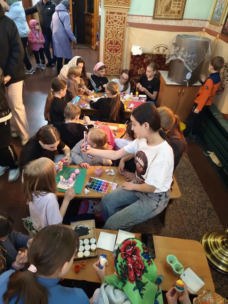 Все вместе славили Воскресение Христово, расписывали пасхальные яйца, играли в праздничные игры и звонили в колокола. Всем детям были вручены пасхальные подарки.