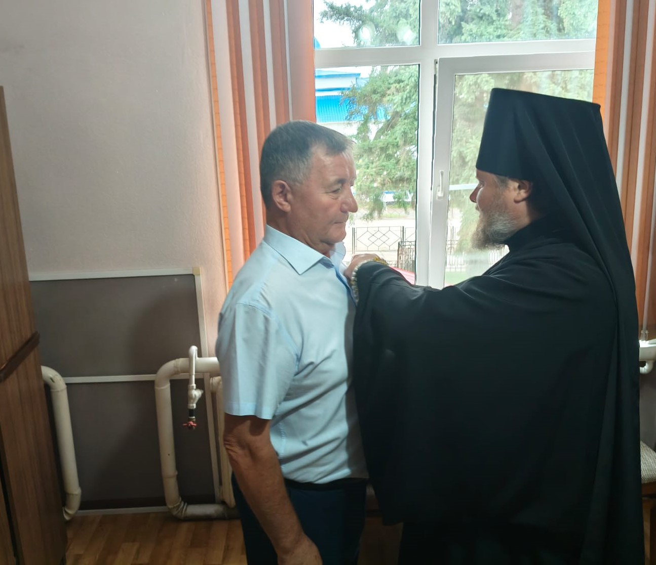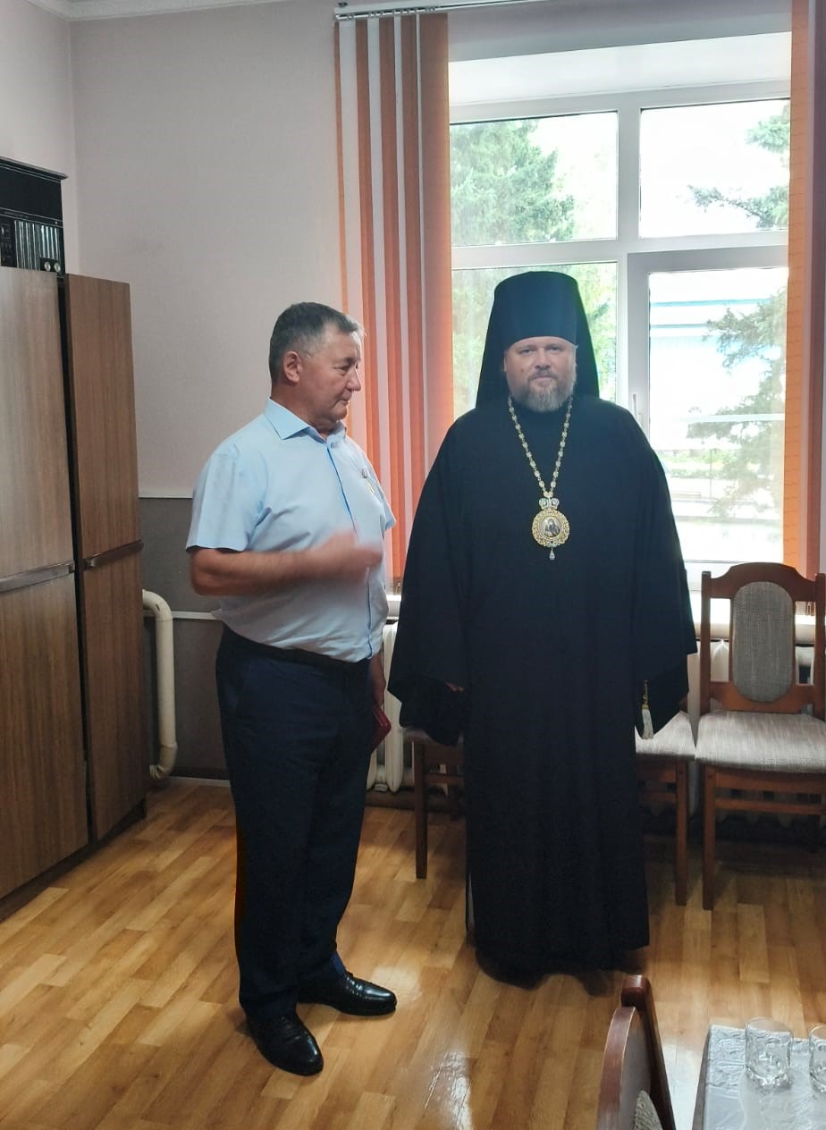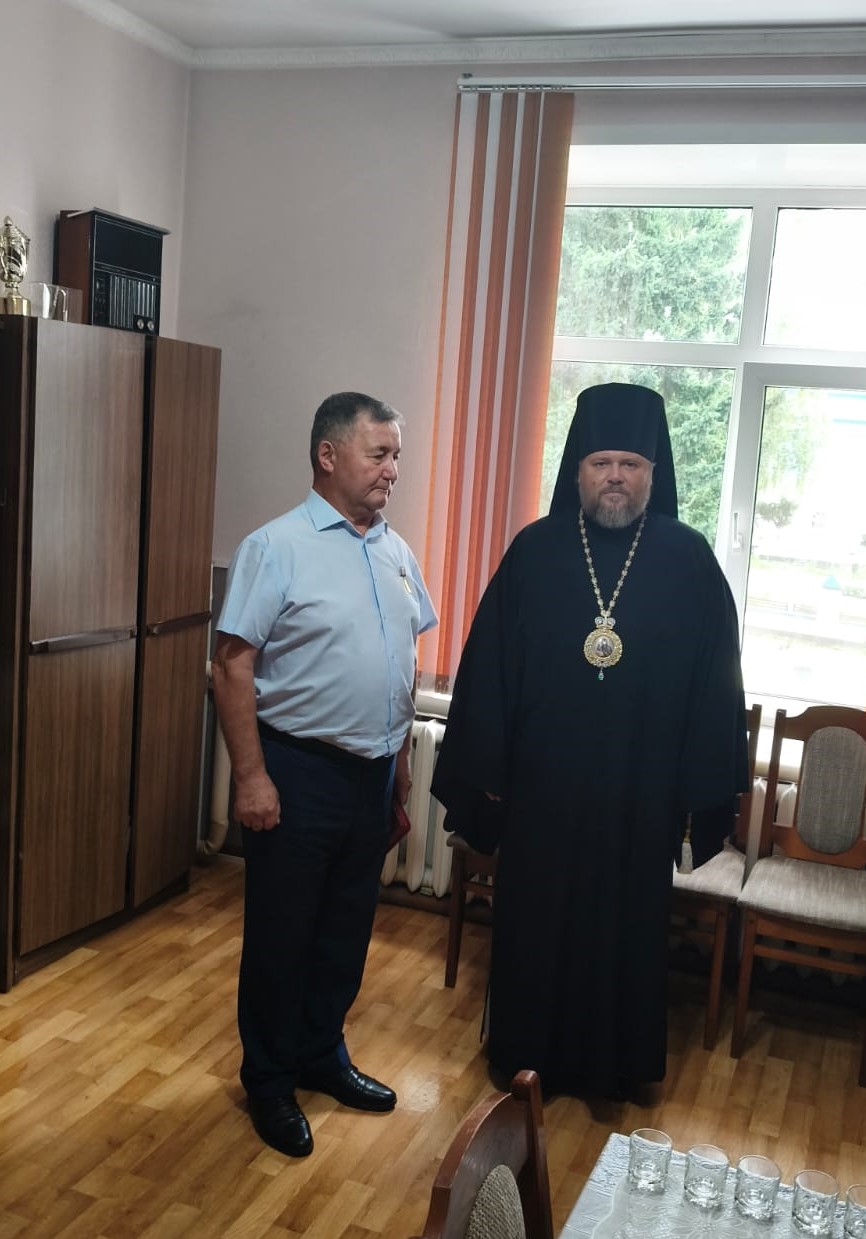 Также епископ Серафим провел рабочую встречу с главой администрации Целинного района Бирюковым Виктором Николаевичем и вручил ему епархиальную медаль.