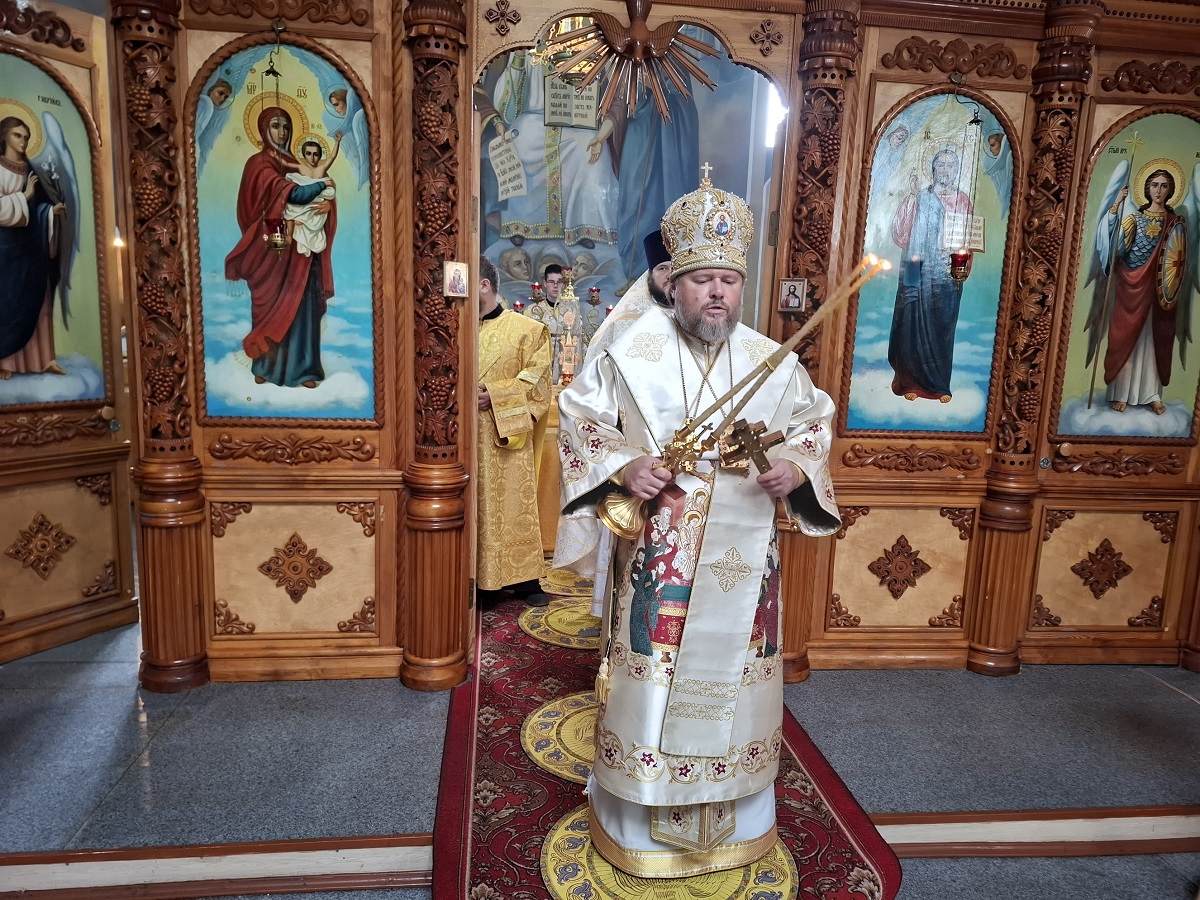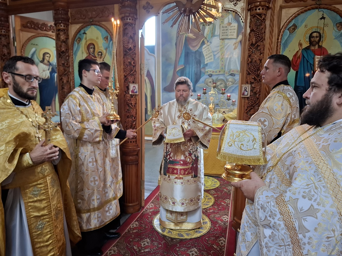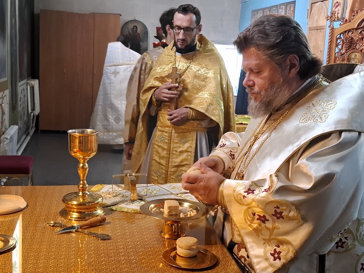 Преосвященному владыке сослужили: настоятель храма иерей Дионисий Вещагин, иерей Димитрий Щербаков, диакон Никита Гологузов.