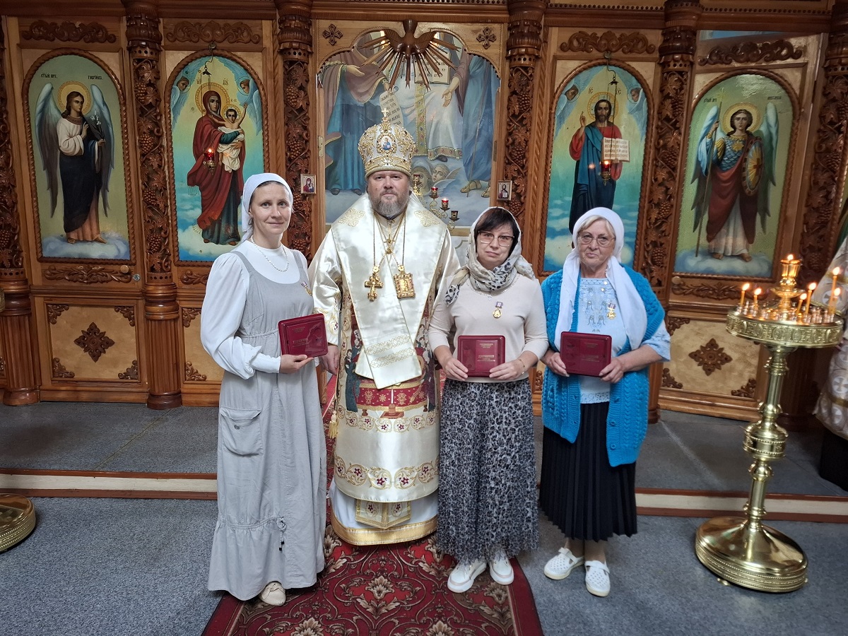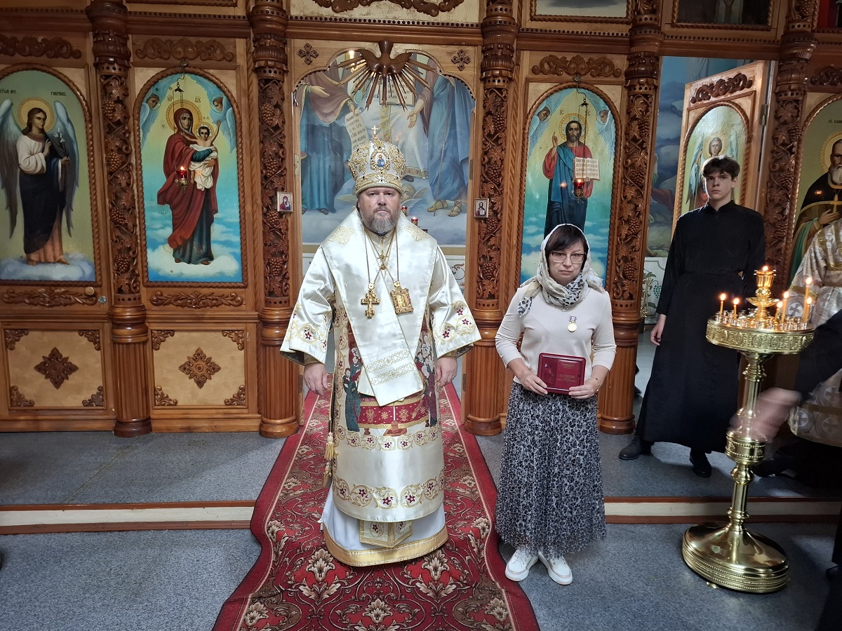 По окончании богослужения архипастырь вручил епархиальные медали активным прихожанам Покровского храма.