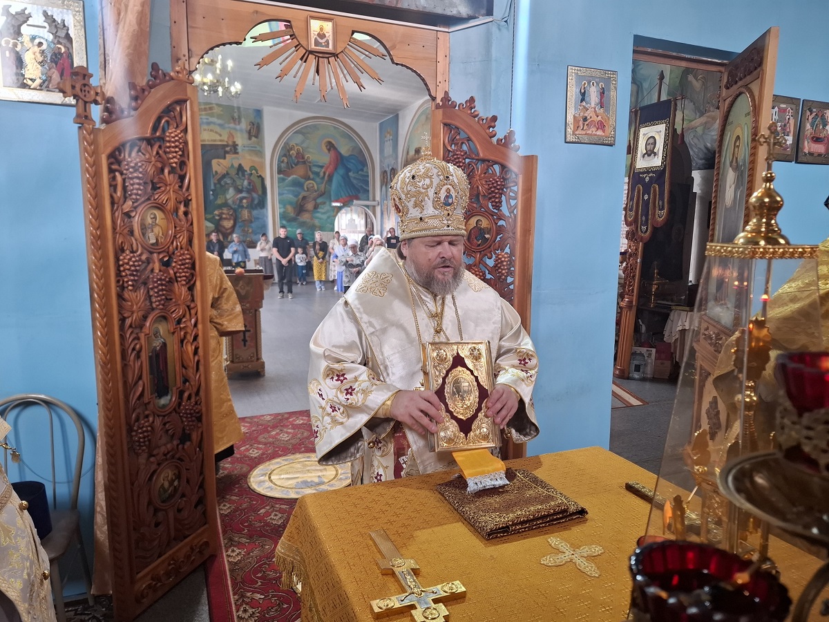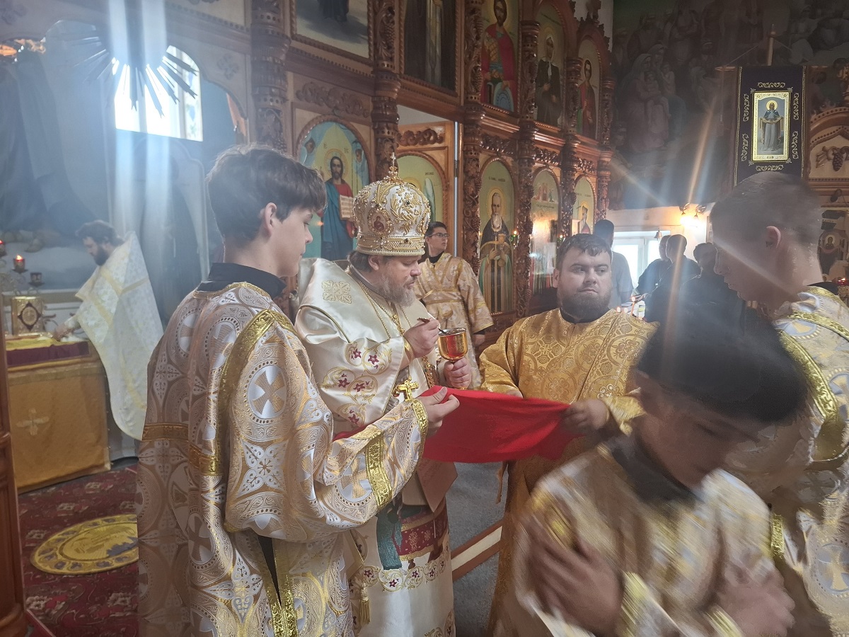 На литургии владыка Серафим причастил верующих Святых Христовых Таин.