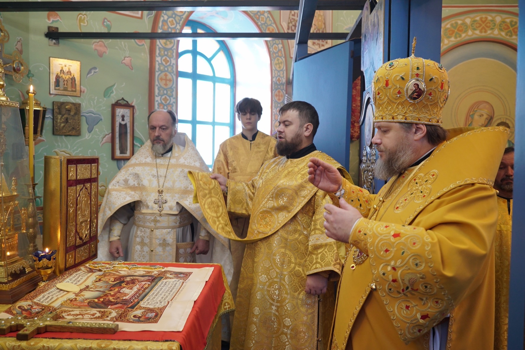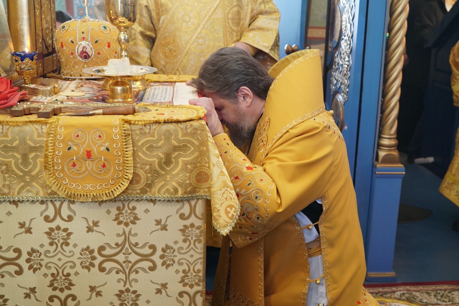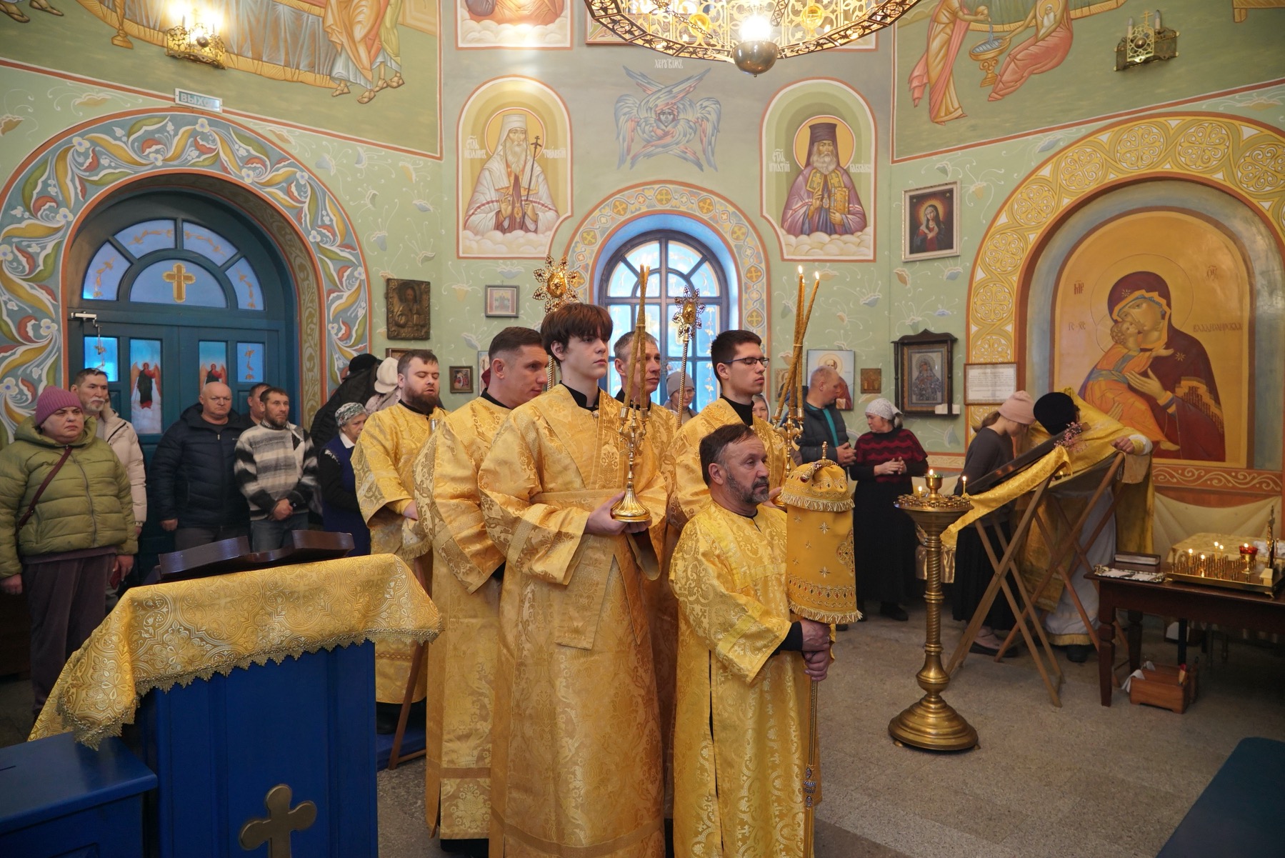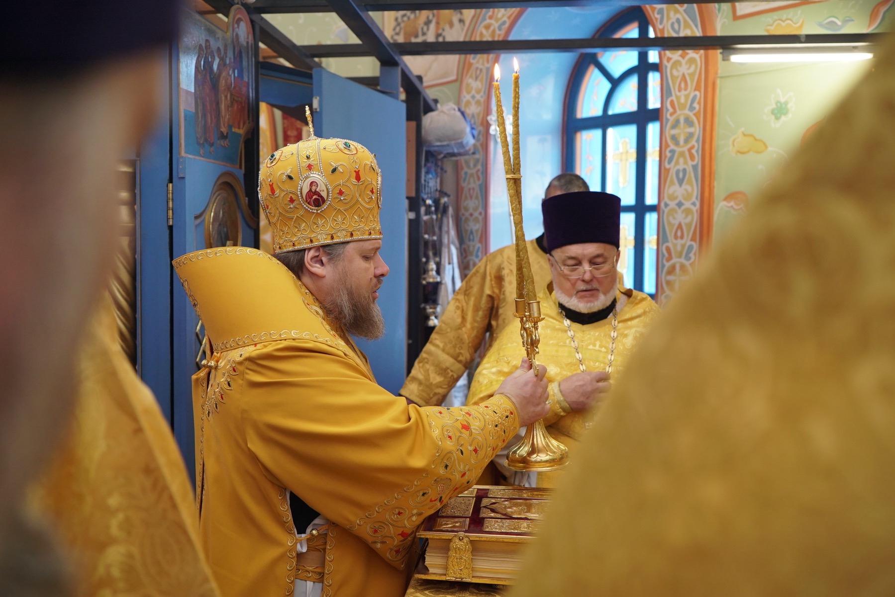 Преосвященному владыке сослужили: ключарь Успенского кафедрального собора протоиерей Александр Петров, благочинный Алтайского округа иерей Леонид Клепиков, настоятель храма иерей Иоанн Ступишин, диакон Никита Гологузов.