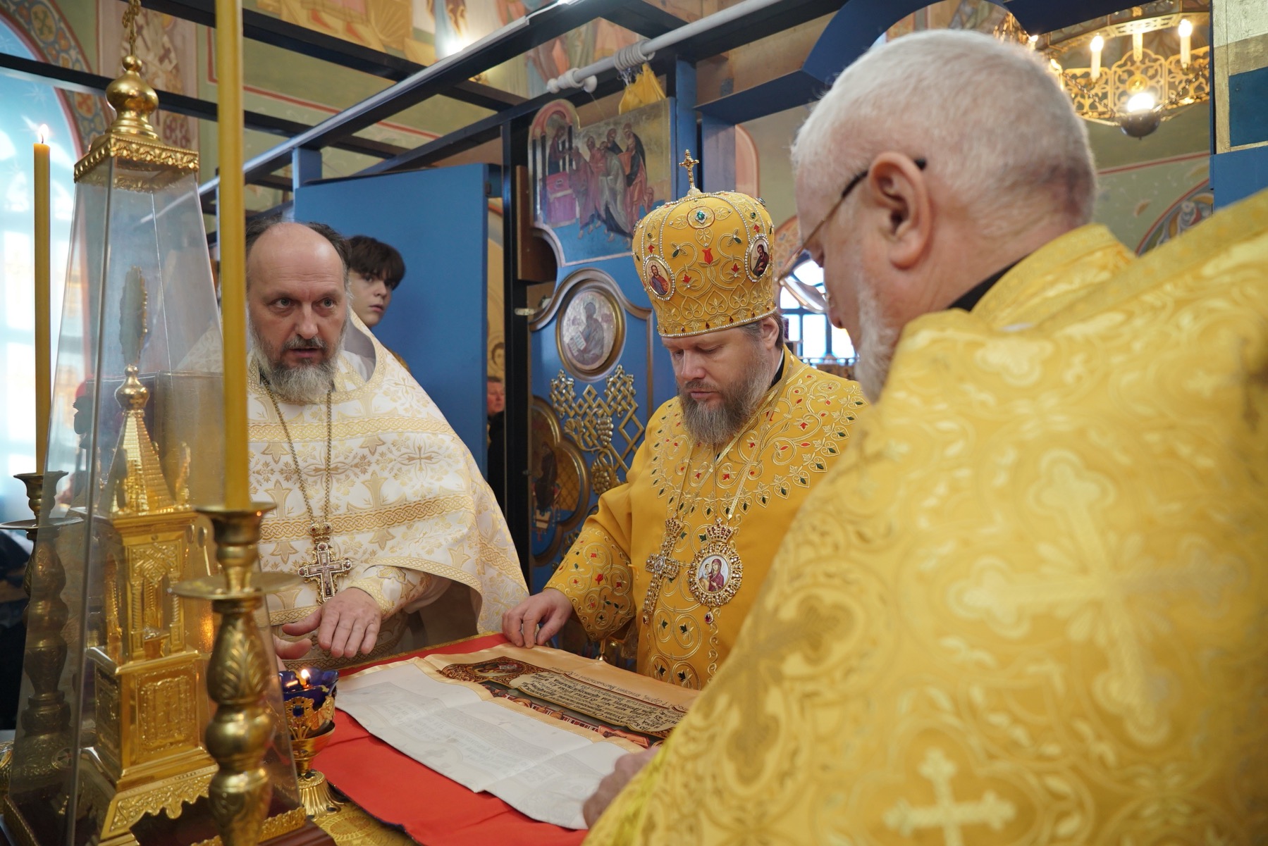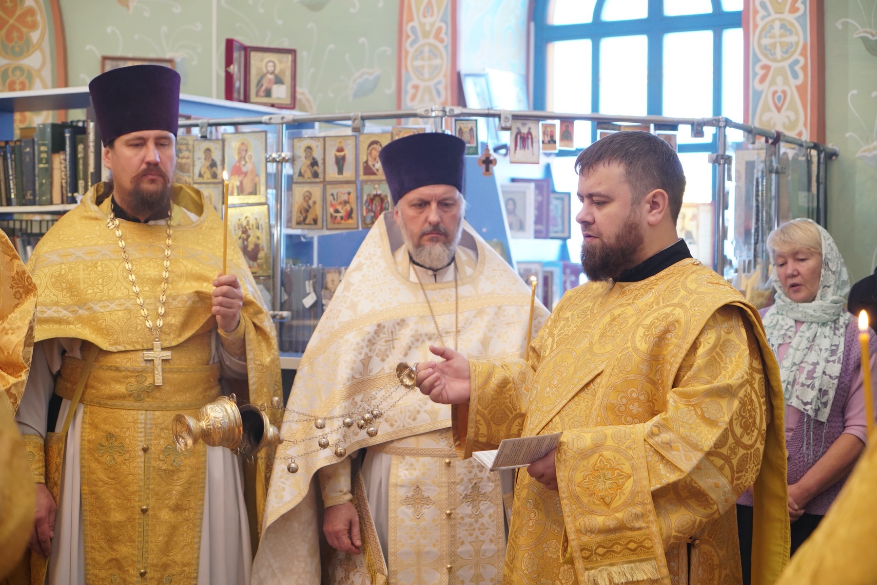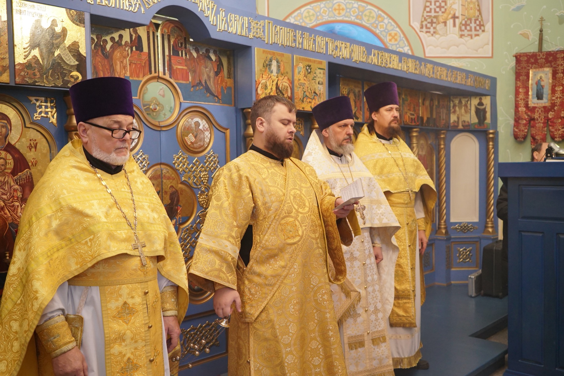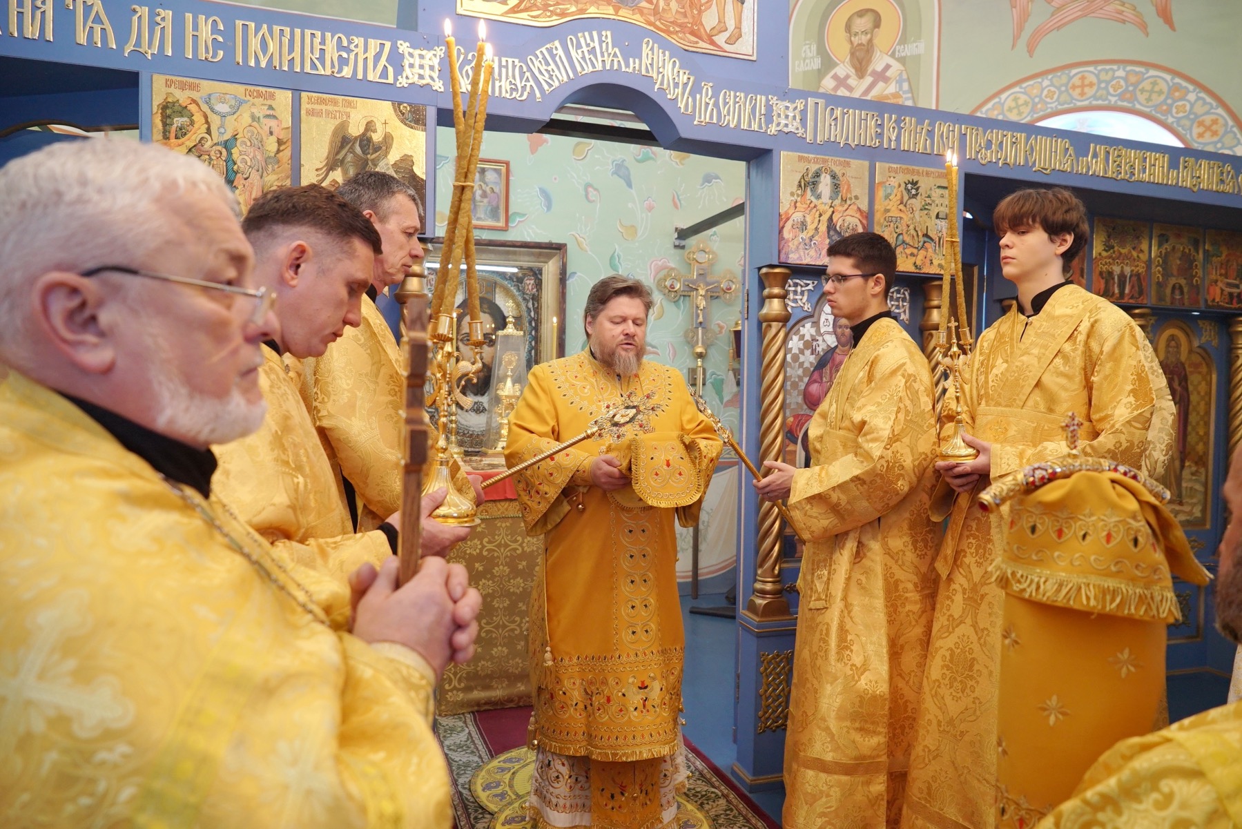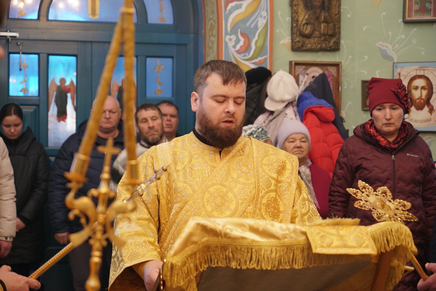 Преосвященному владыке сослужили: ключарь Успенского кафедрального собора протоиерей Александр Петров, благочинный Алтайского округа иерей Леонид Клепиков, настоятель храма иерей Иоанн Ступишин, диакон Никита Гологузов.