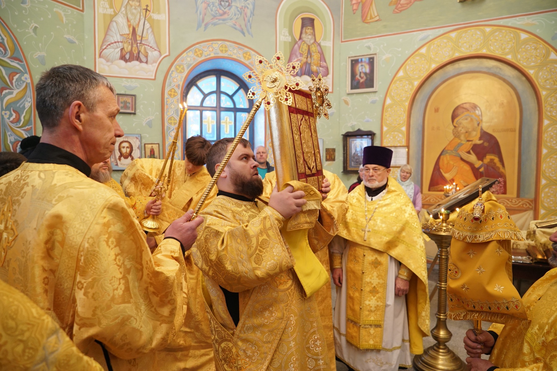 На сугубой ектении были произнесены особые прошения: «…о еже прияти молитвы нас недостойных рабов Твоих в сию годину испытания, пришедшую на Русь Святую…». Затем правящий архиерей вознес молитву о Святой Руси.