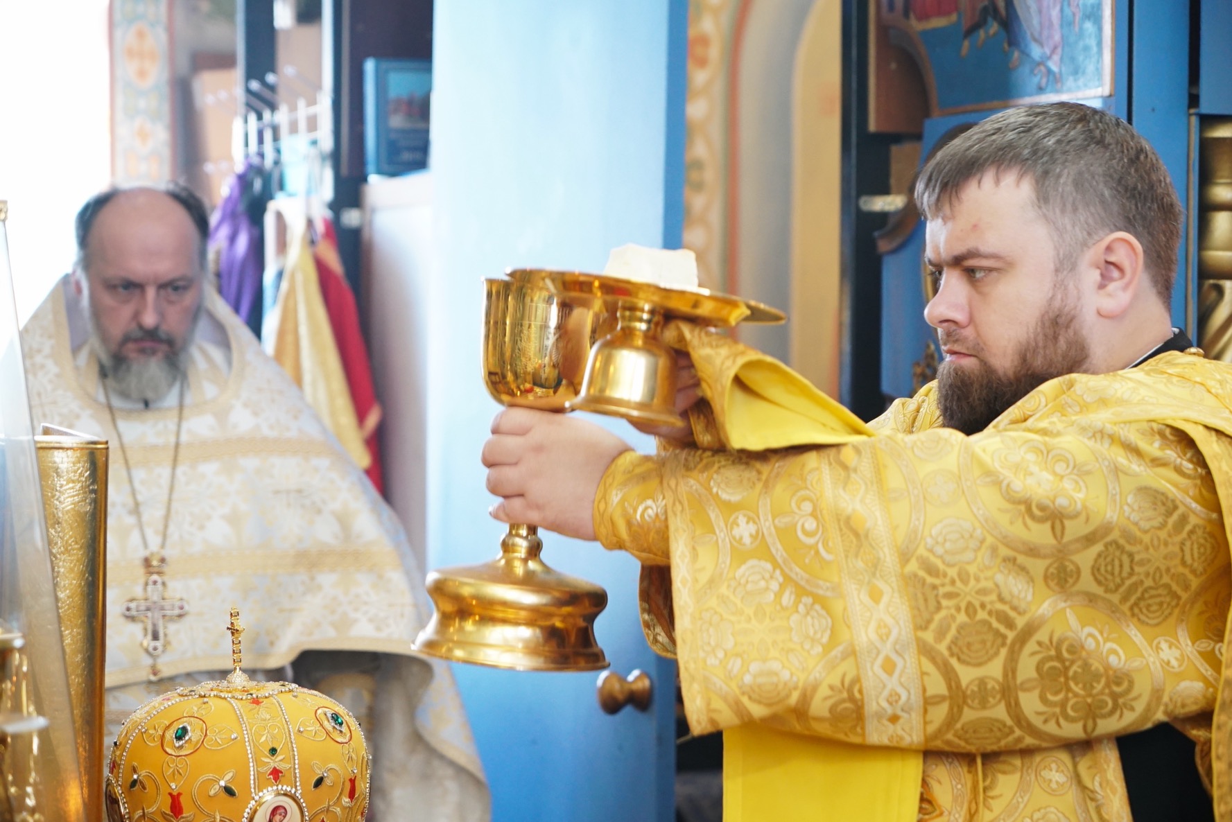 На литургии владыка Серафим причастил верующих Святых Христовых Таин.