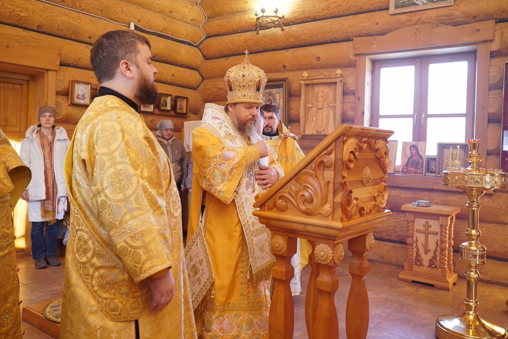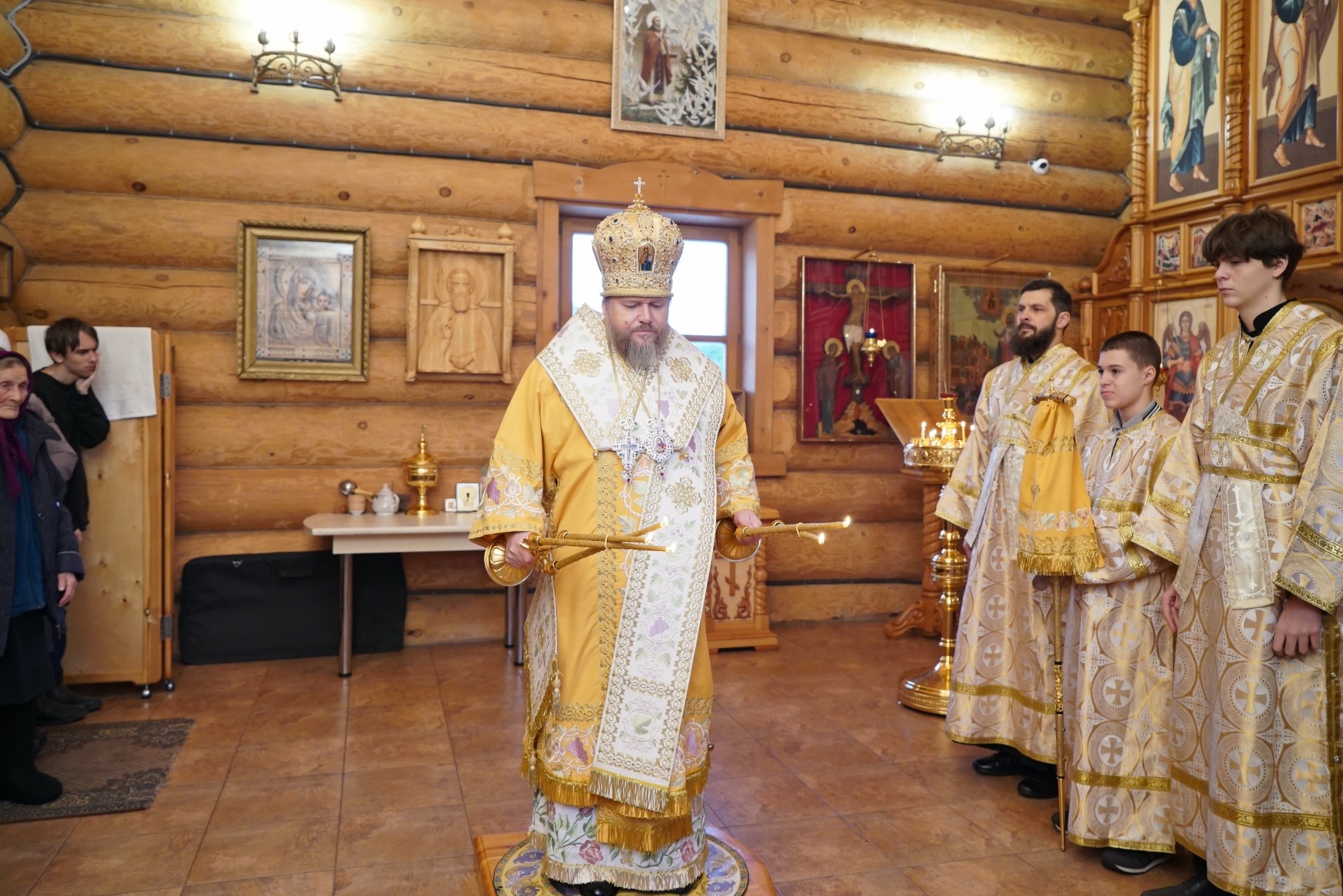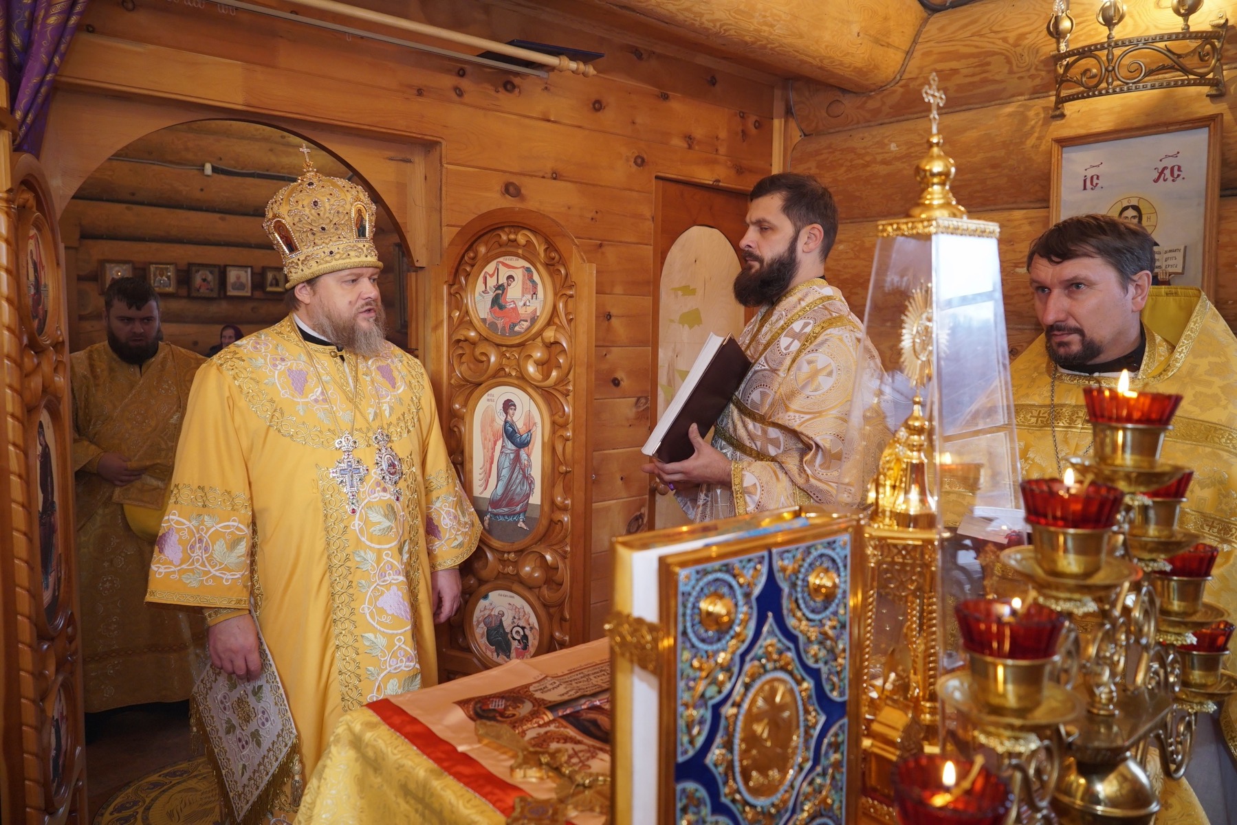 Преосвященному владыке сослужили: ключарь Успенского кафедрального собора протоиерей Александр Петров, настоятель храма иерей Сергий Шабанов, диакон Никита Гологузов.