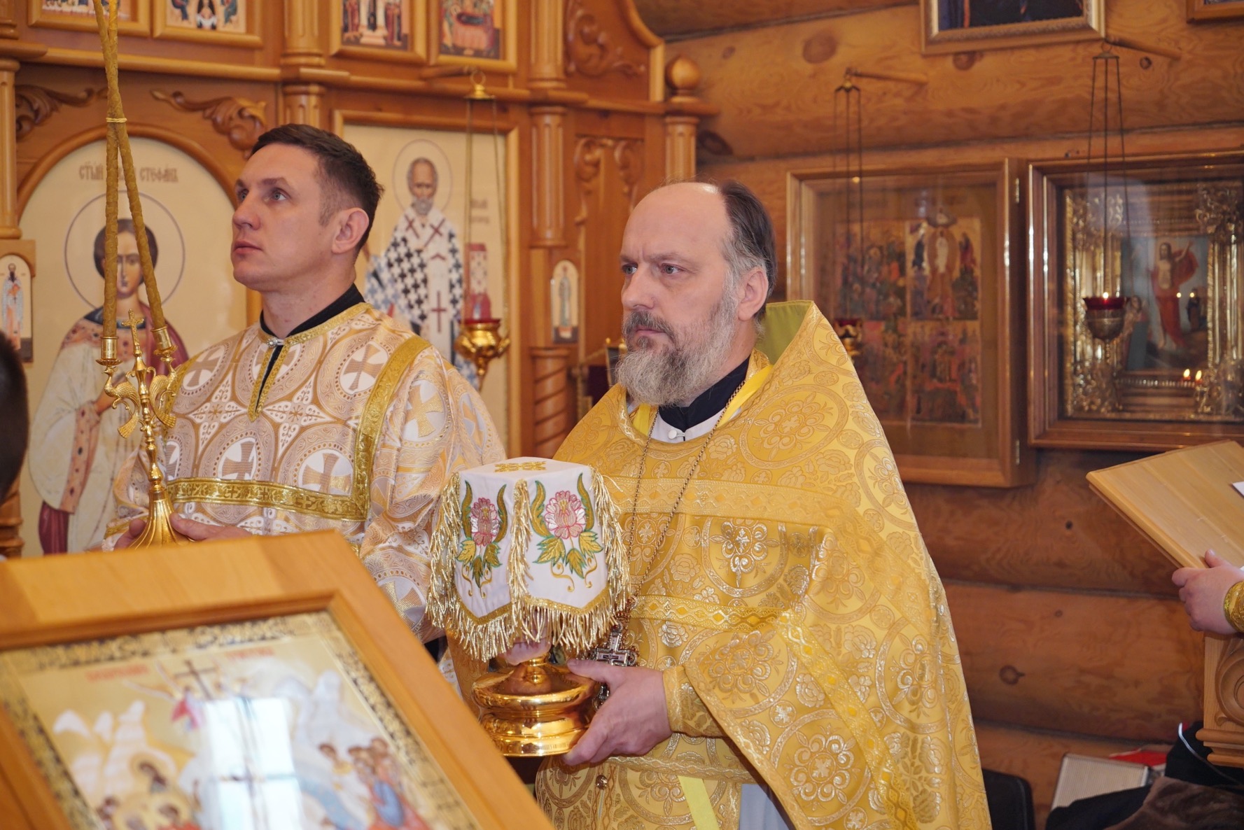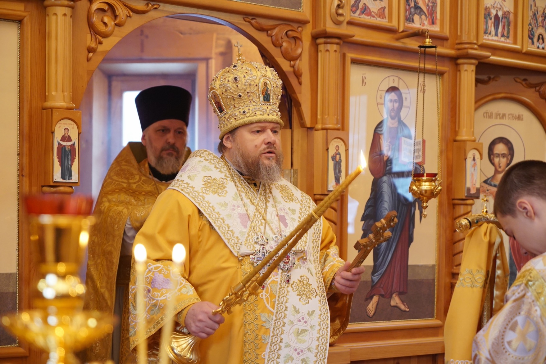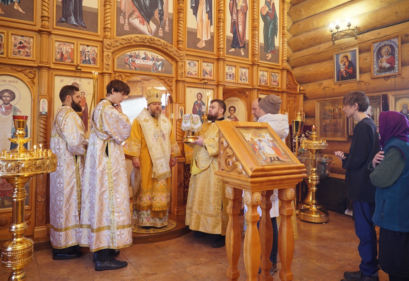 Преосвященному владыке сослужили: ключарь Успенского кафедрального собора протоиерей Александр Петров, настоятель храма иерей Сергий Шабанов, диакон Никита Гологузов.