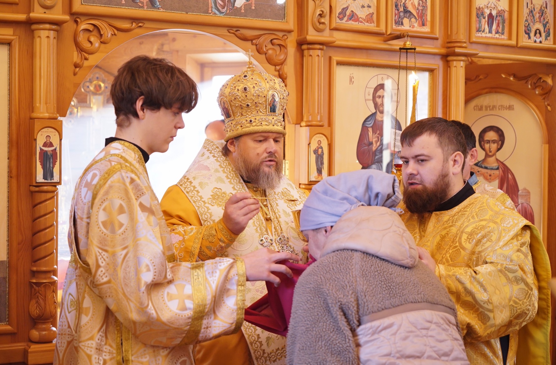На литургии владыка Серафим причастил верующих Святых Христовых Таин.