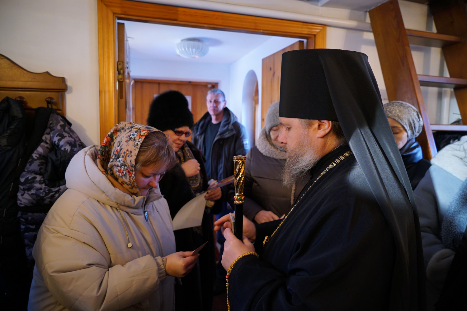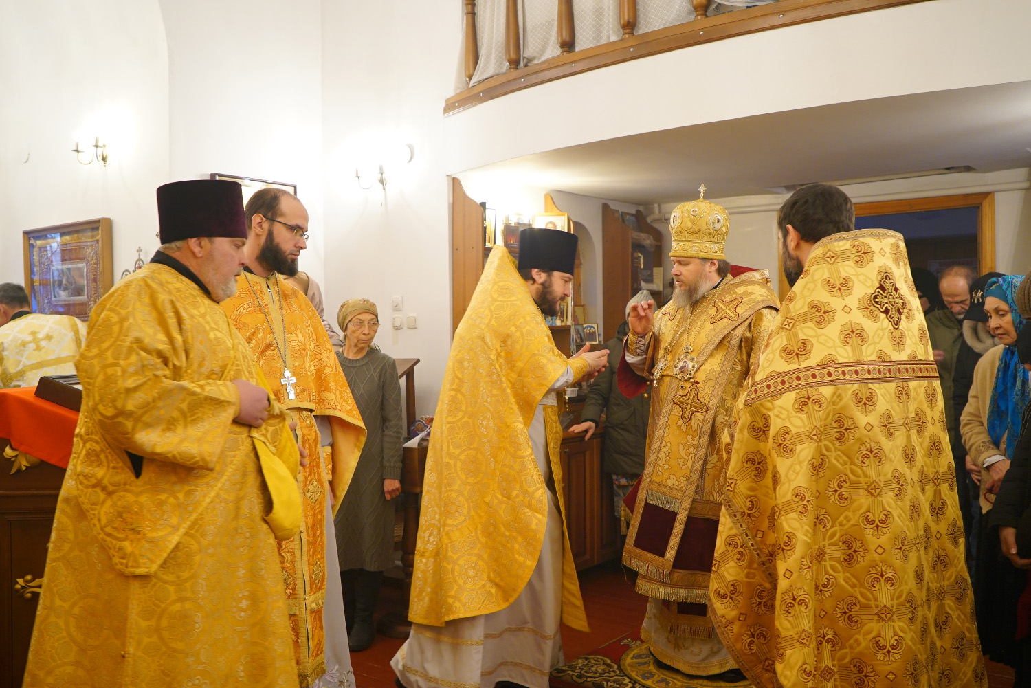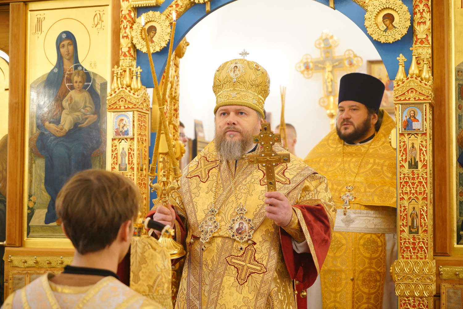 Его Преосвященству сослужили: настоятель храма иерей Герман Ходаковский, иерей Димитрий Щербаков, иерей Иоанн Ходаковский (Новосибирская митрополия), диакон Вадим Шпак.