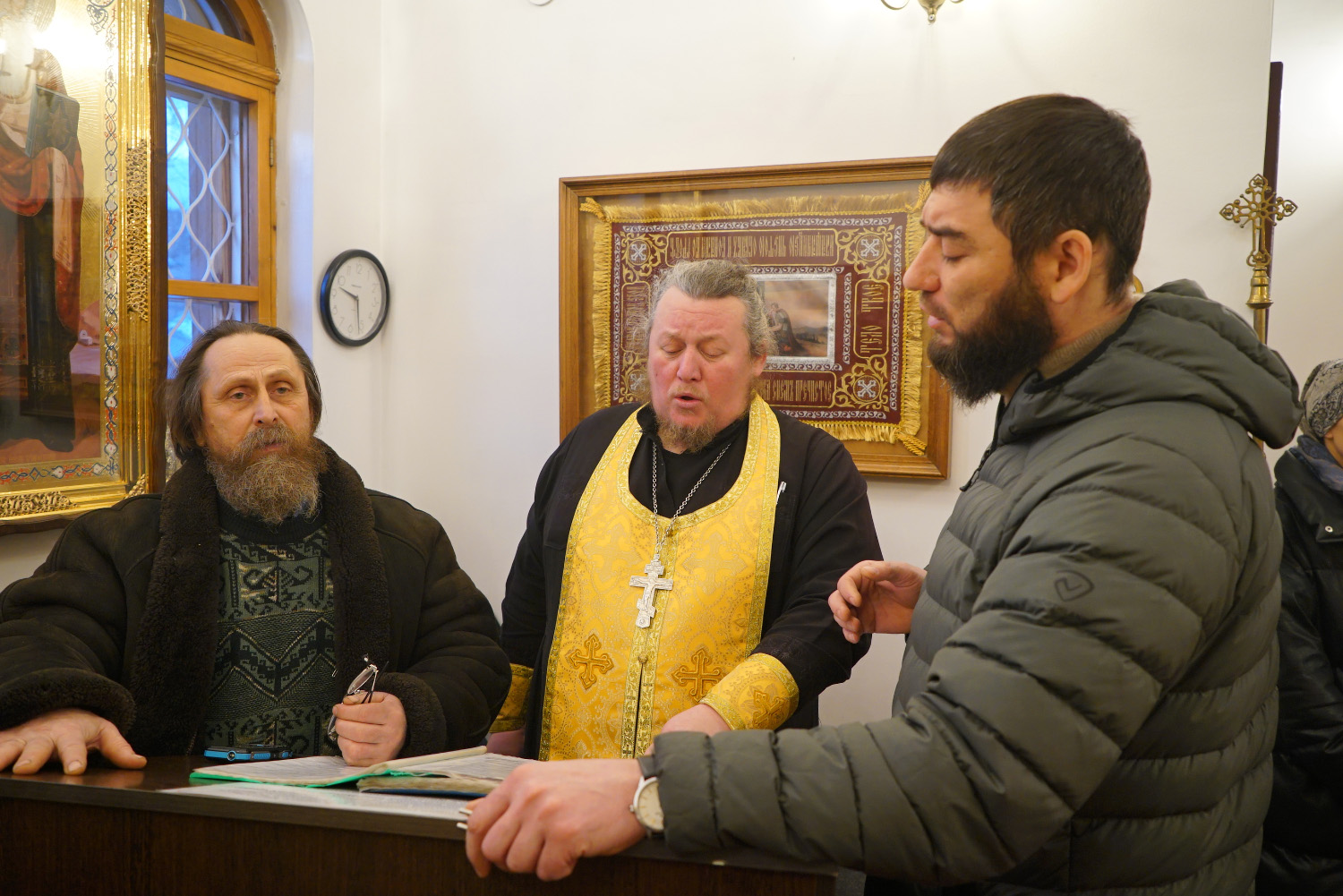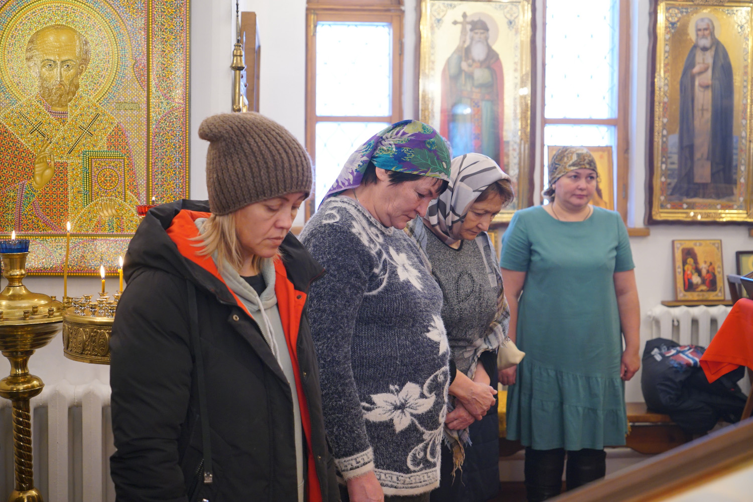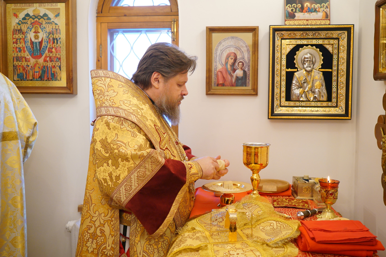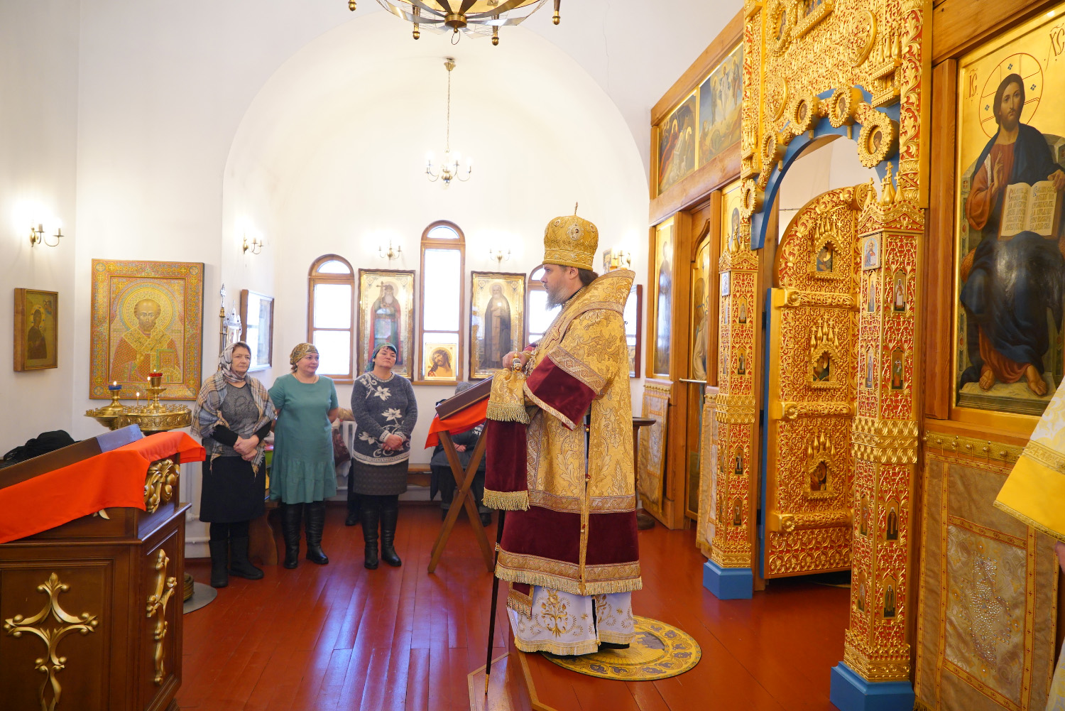 Его Преосвященству сослужили: настоятель храма иерей Герман Ходаковский, иерей Димитрий Щербаков, иерей Иоанн Ходаковский (Новосибирская митрополия), диакон Вадим Шпак.