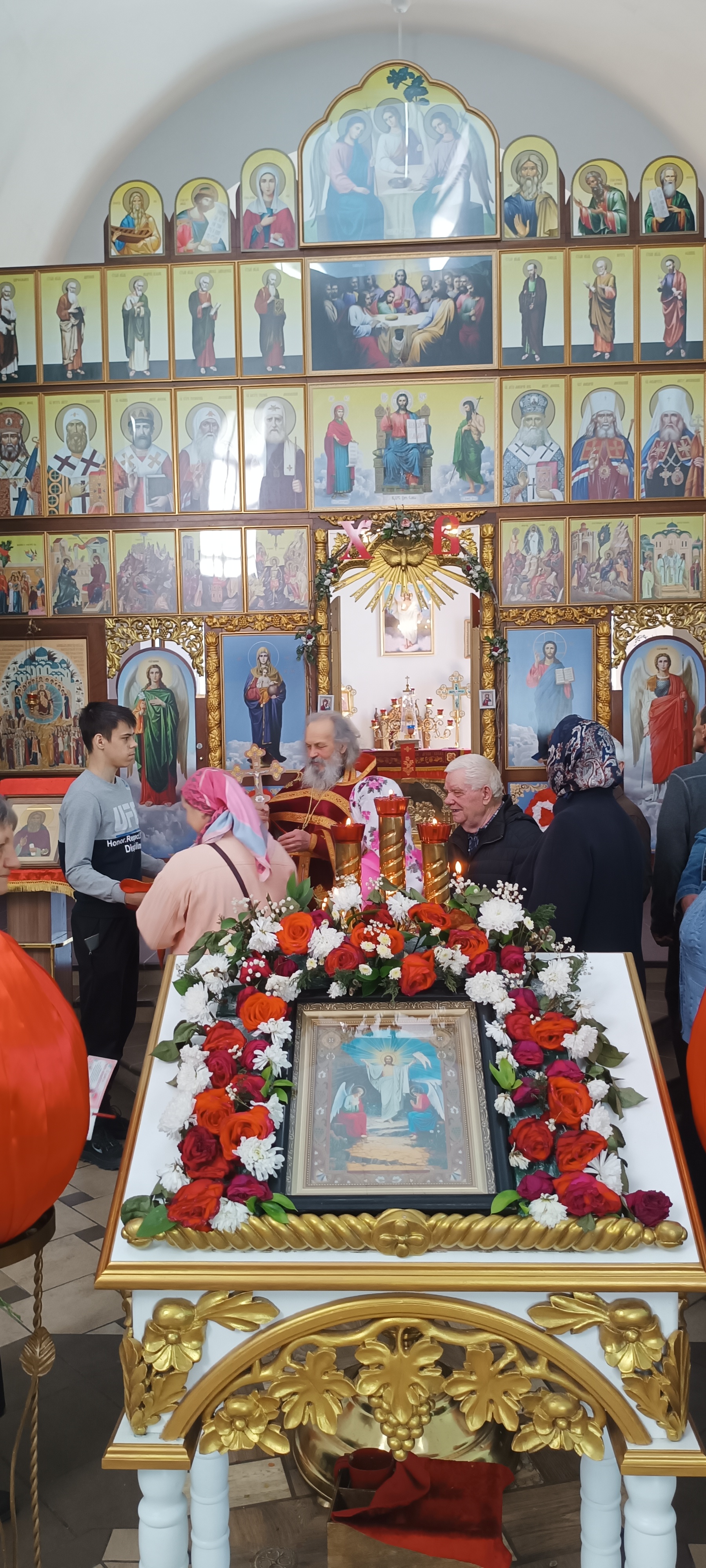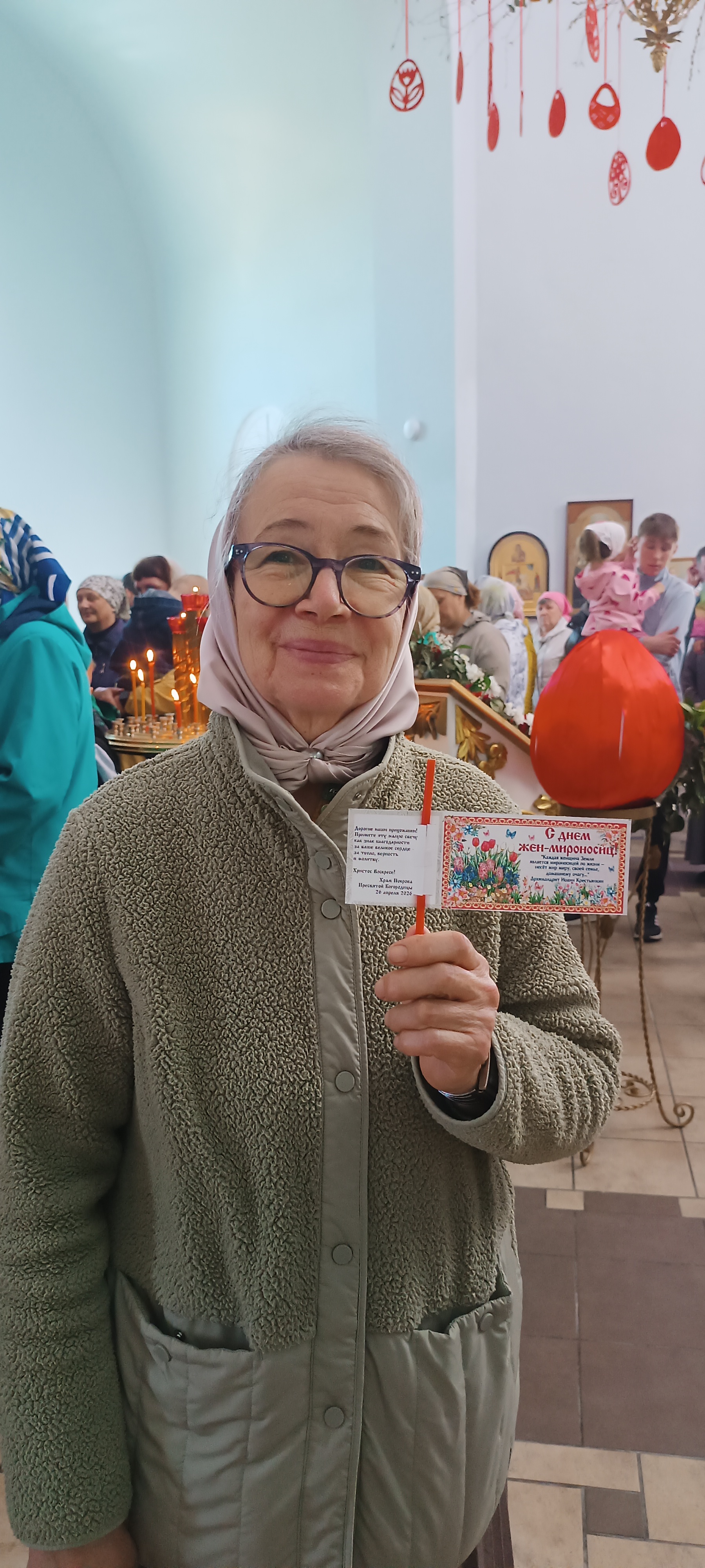 В Неделю 3-ю по Пасхе, святых жен-мироносиц, настоятель храма Покрова Пресвятой Богородицы Свято-Макарьевской монашеской общины поздравил прихожанок с праздником