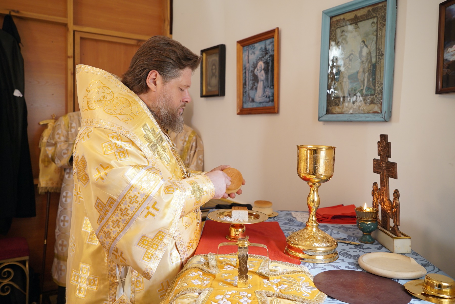Преосвященному владыке сослужили: настоятель храма иерей Александр Лобанов, иерей Димитрий Щербаков, диакон Никита Гологузов.