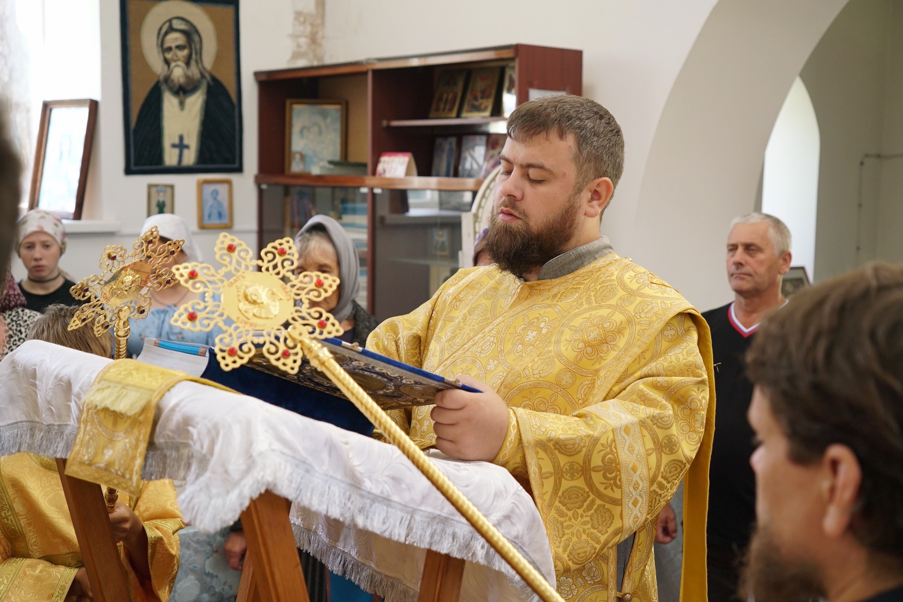 На сугубой ектении были произнесены особые прошения: «…о еже прияти молитвы нас недостойных рабов Твоих в сию годину испытания, пришедшую на Русь Святую…». Затем правящий архиерей вознес молитву о Святой Руси.