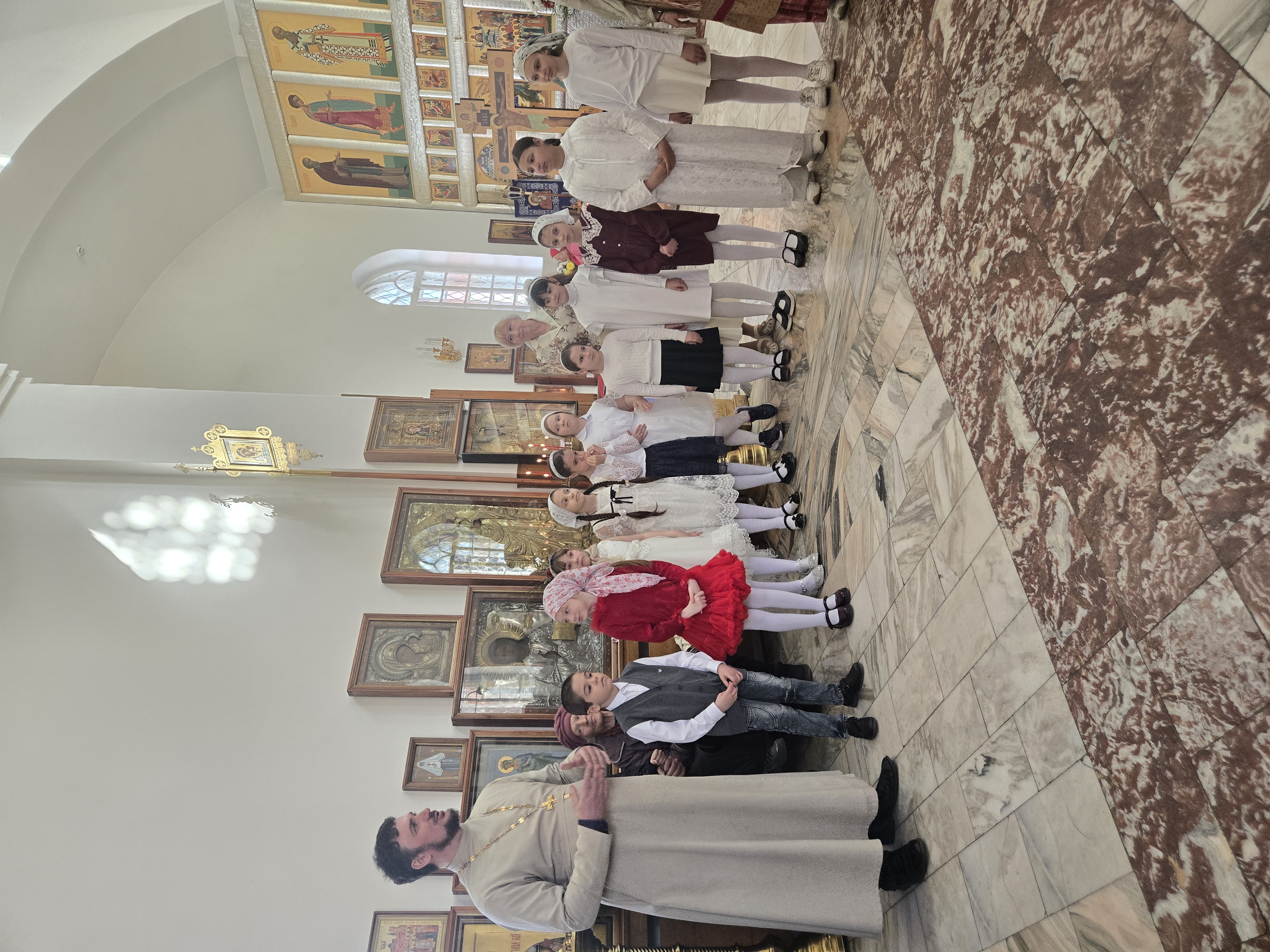 Ключарь собора иерей Роман Третьяков и штатный священник иерей Андрей Новиков поздравили ребят с праздником и подарили сладкие подарки.