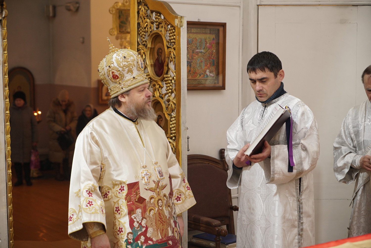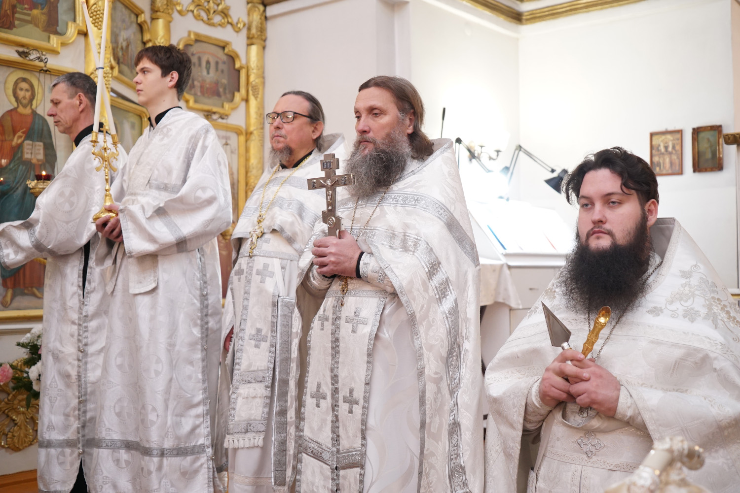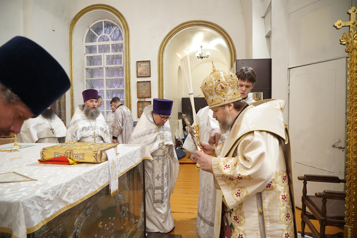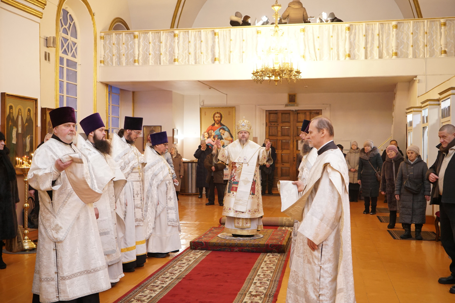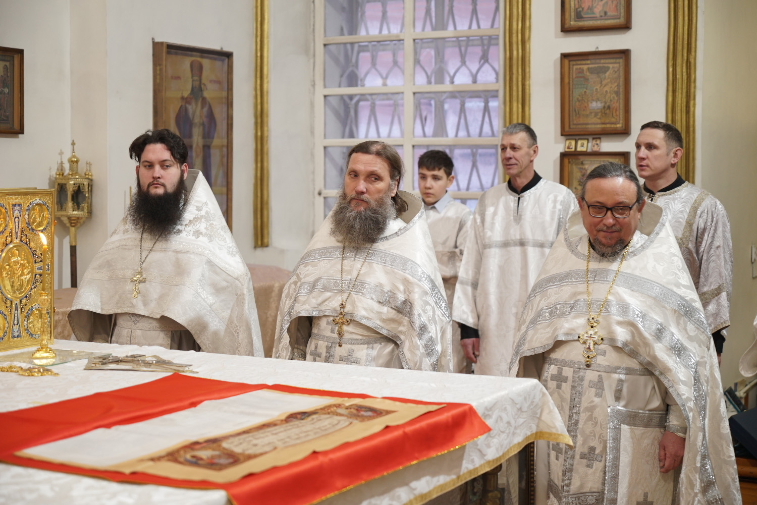 Преосвященному владыке сослужили: настоятель храма протоиерей Валерий Замятин, иерей Димитрий Камбалин, иерей Евгений Щигрев, иерей Вадим Четвергов, иерей Александр Лобанов, диакон Вадим Шпак, диакон Николай Геришенко.