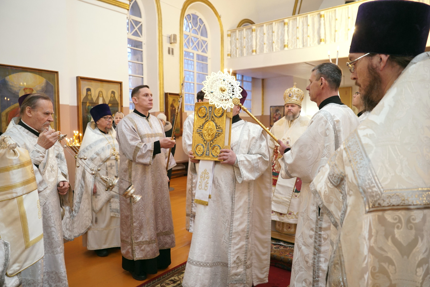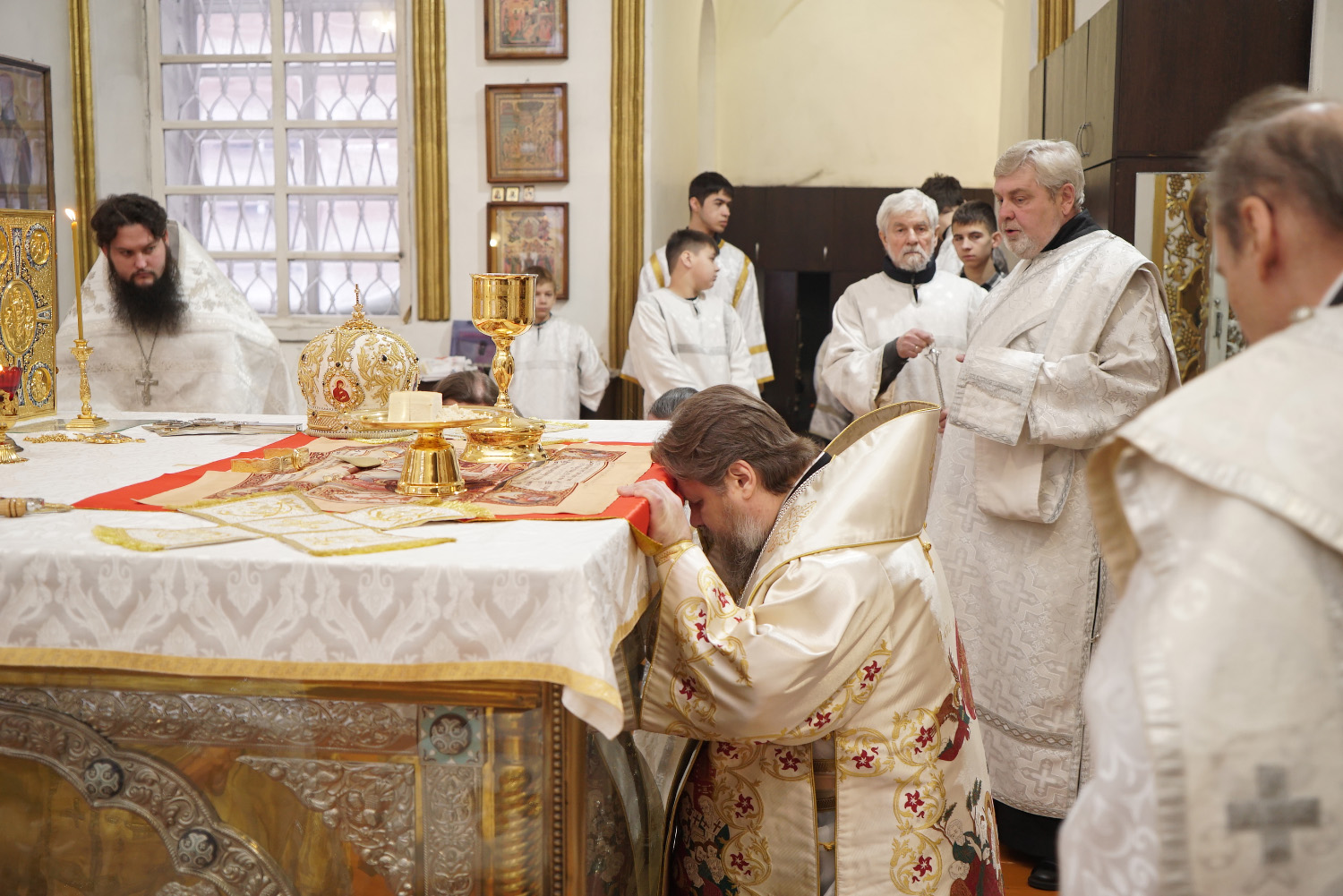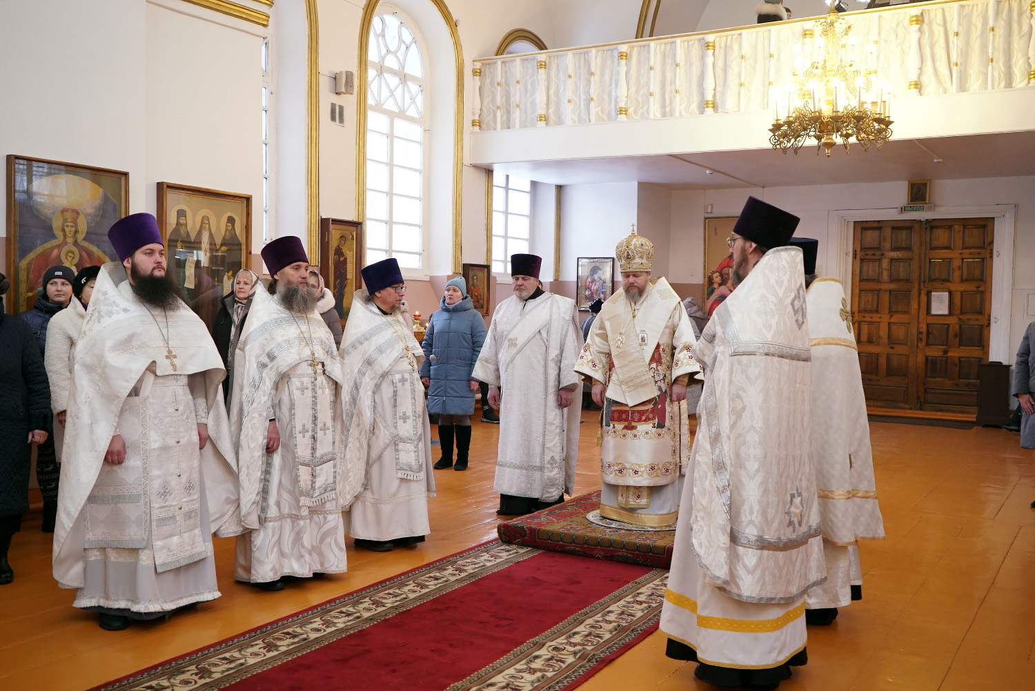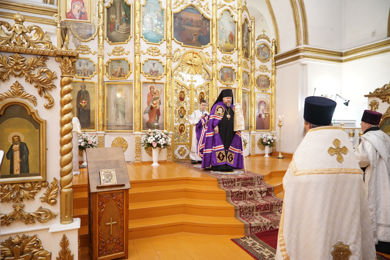 Преосвященному владыке сослужили: настоятель храма протоиерей Валерий Замятин, иерей Димитрий Камбалин, иерей Евгений Щигрев, иерей Вадим Четвергов, иерей Александр Лобанов, диакон Вадим Шпак, диакон Николай Геришенко.