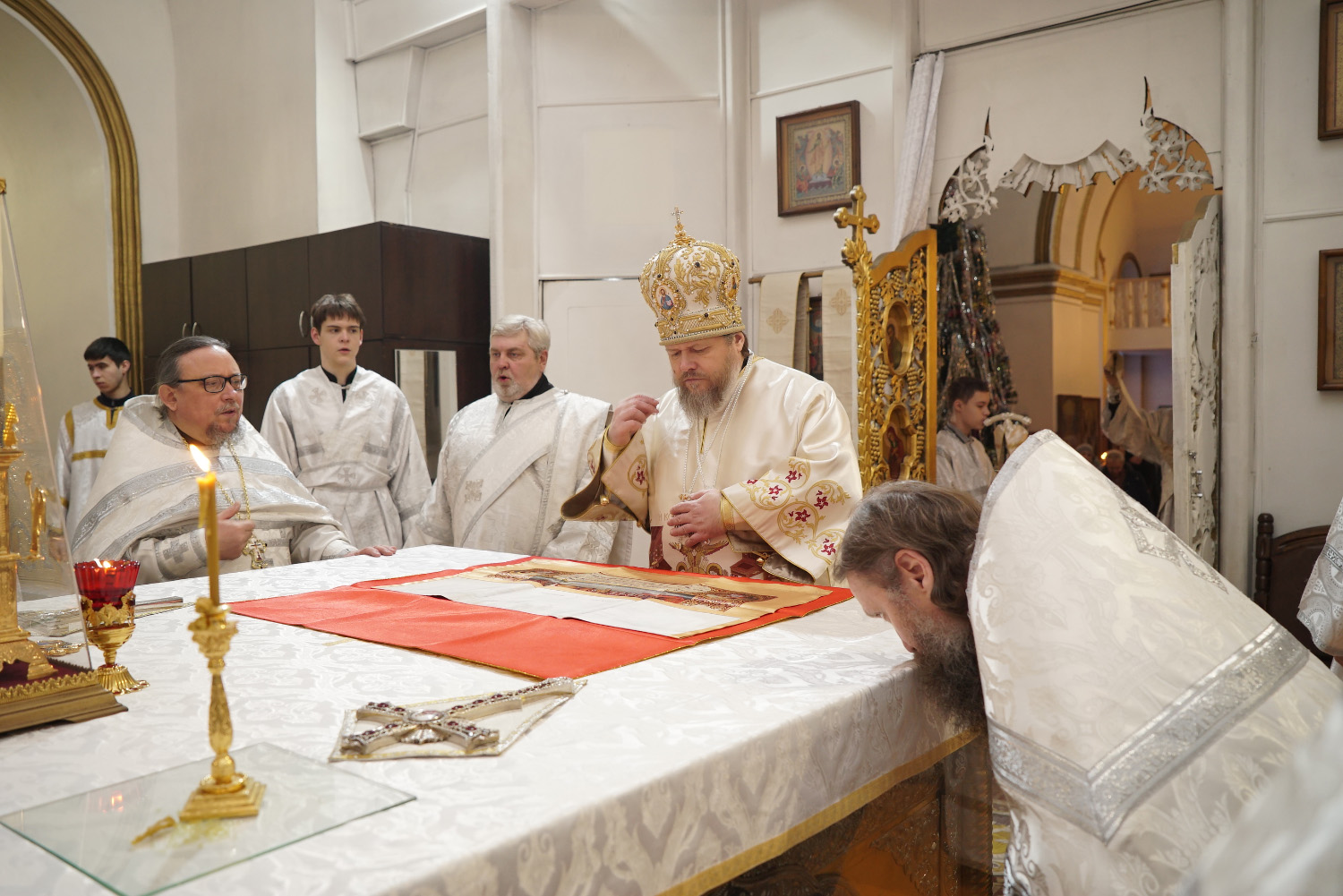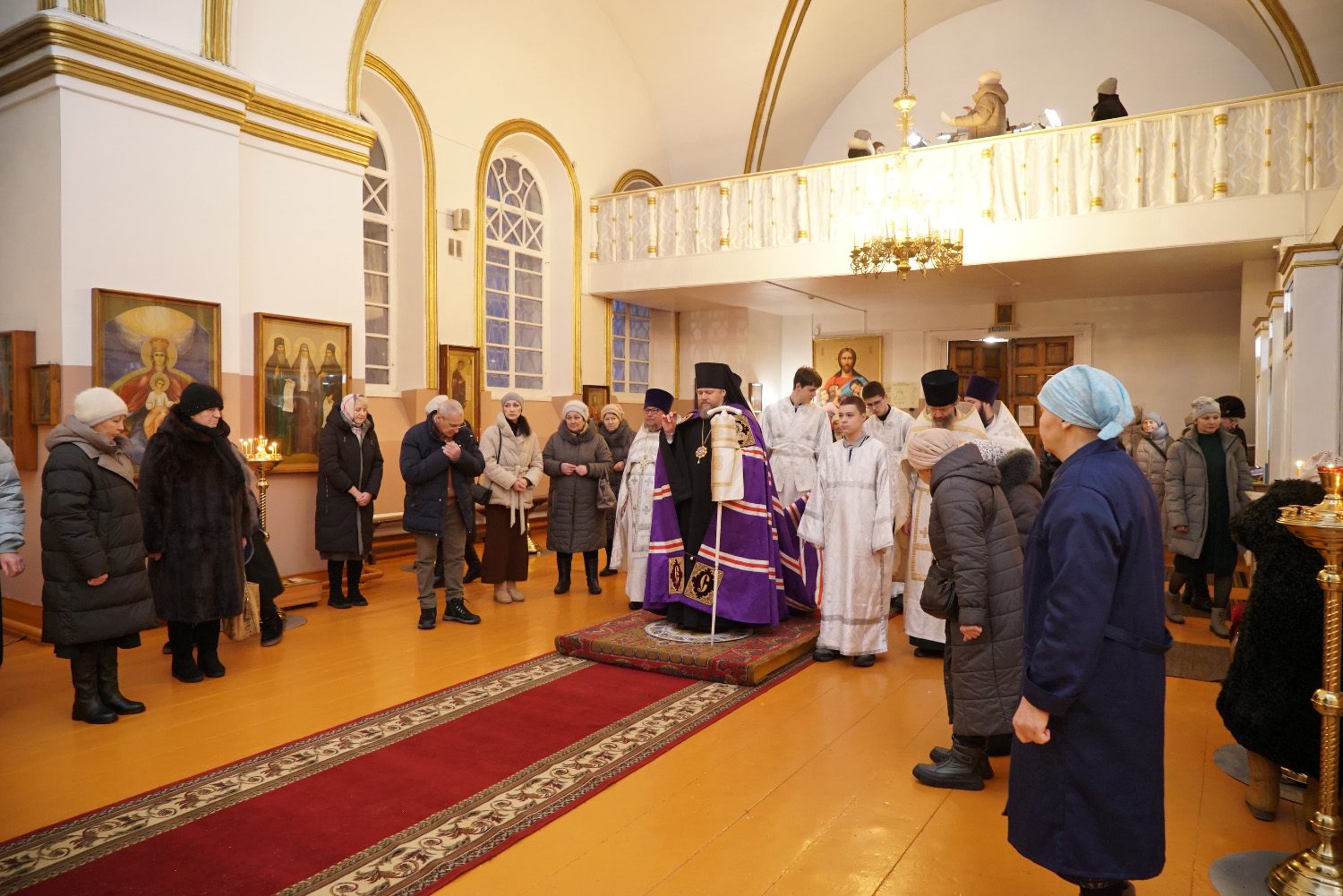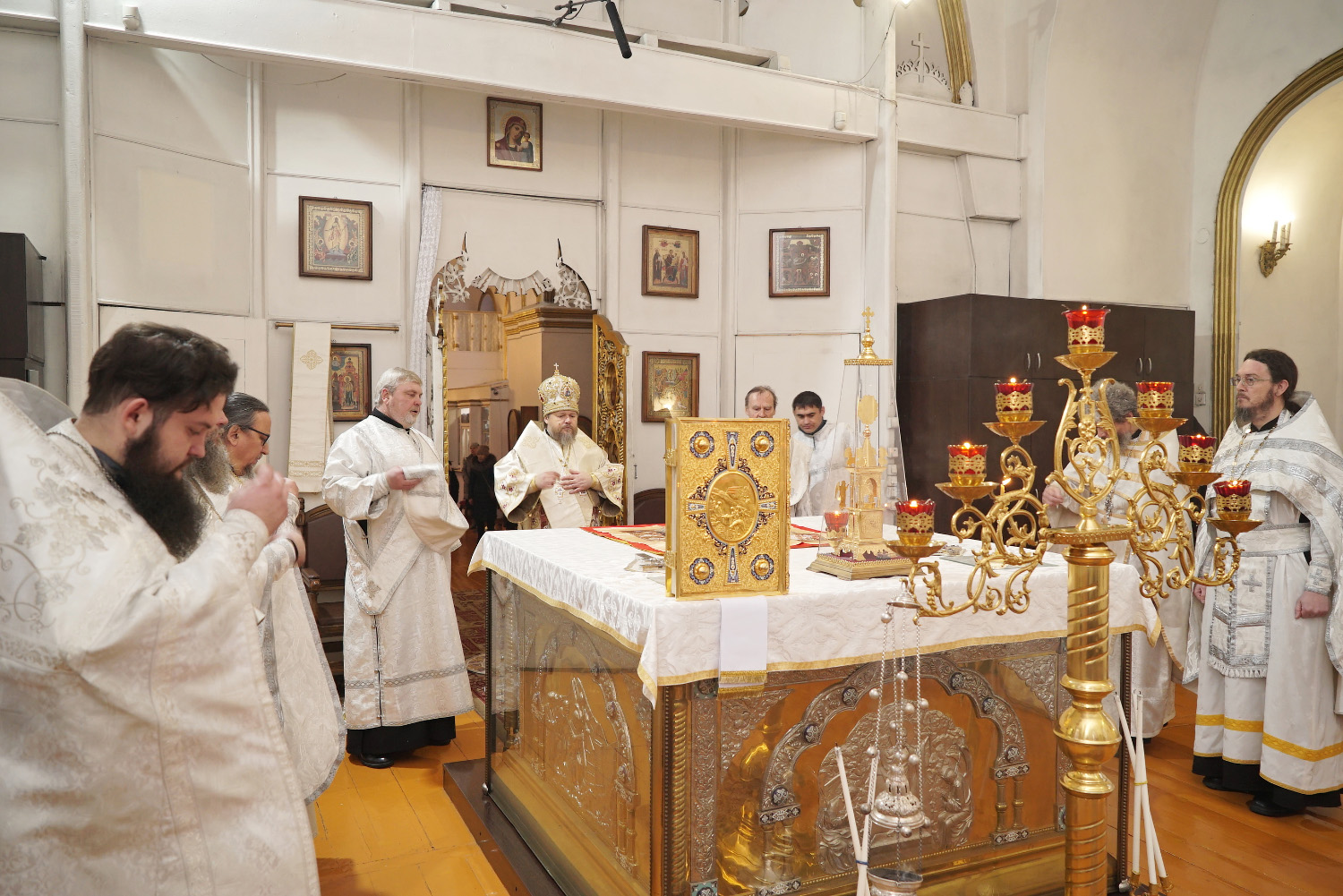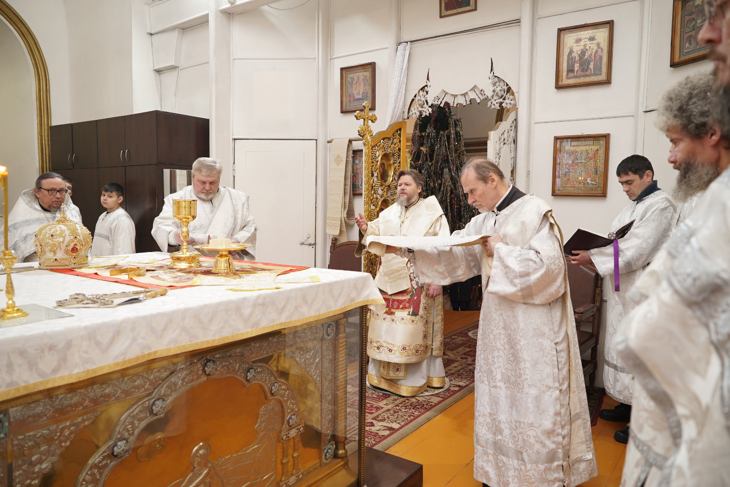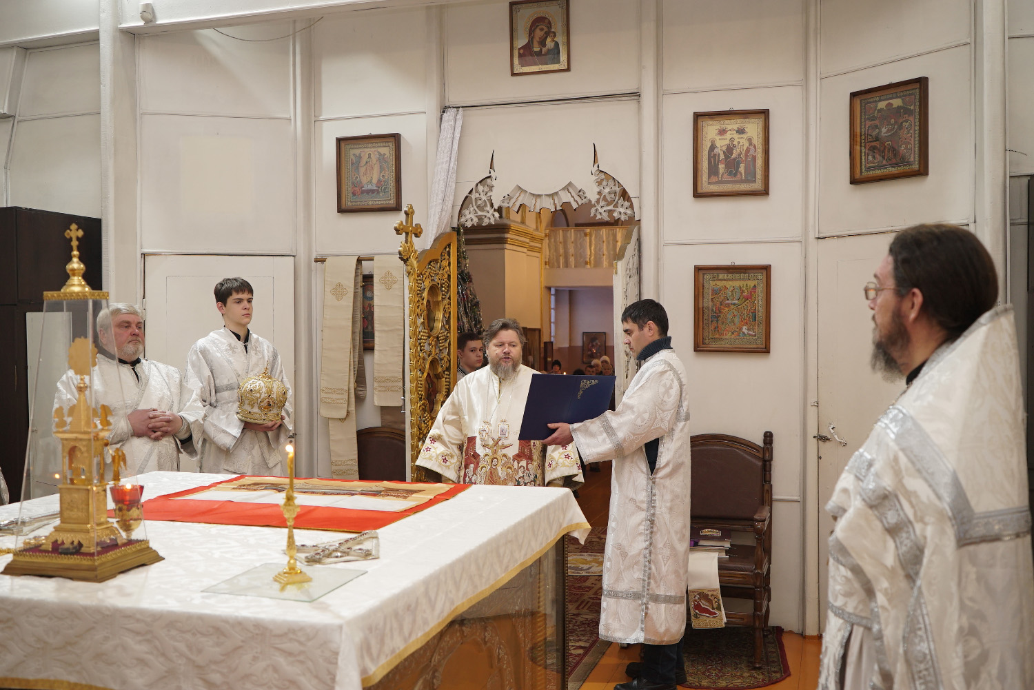 Преосвященному владыке сослужили: настоятель храма протоиерей Валерий Замятин, иерей Димитрий Камбалин, иерей Евгений Щигрев, иерей Вадим Четвергов, иерей Александр Лобанов, диакон Вадим Шпак, диакон Николай Геришенко.