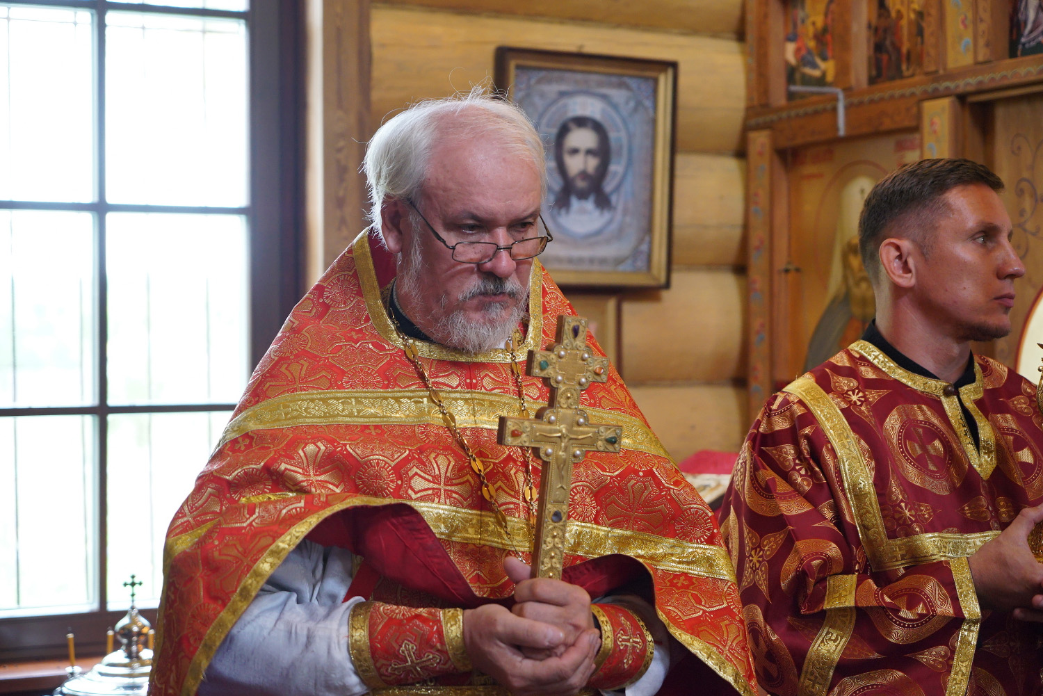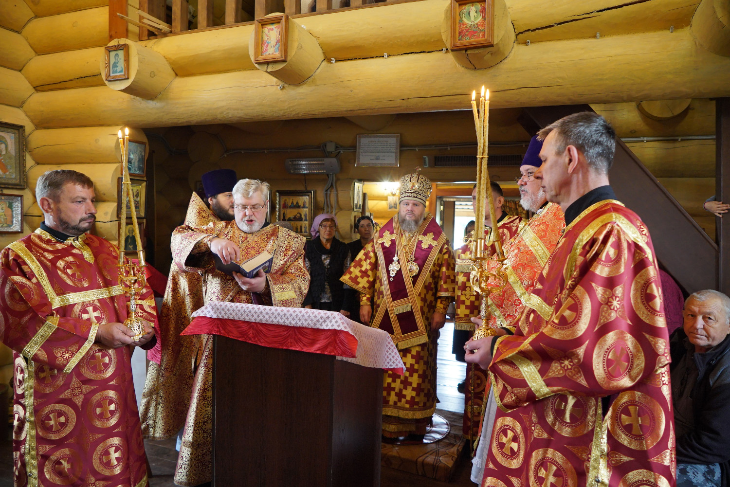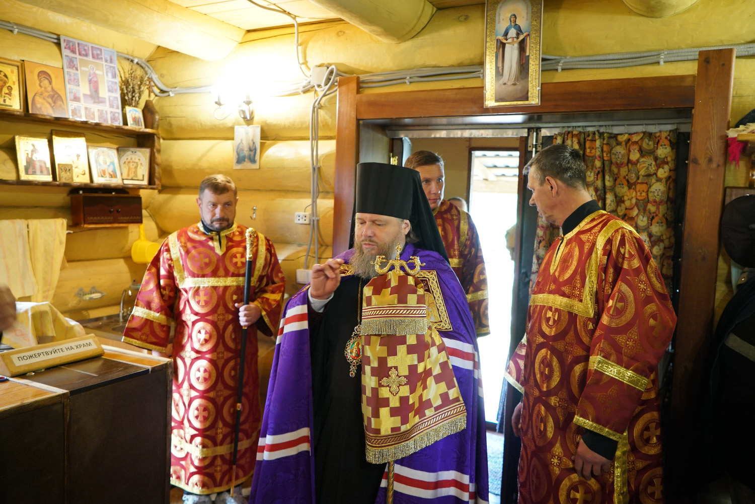 На сугубой ектении были произнесены особые прошения: «…о еже прияти молитвы нас недостойных рабов Твоих в сию годину испытания, пришедшую на Русь Святую…». Затем правящий архиерей вознес молитву о Святой Руси.
