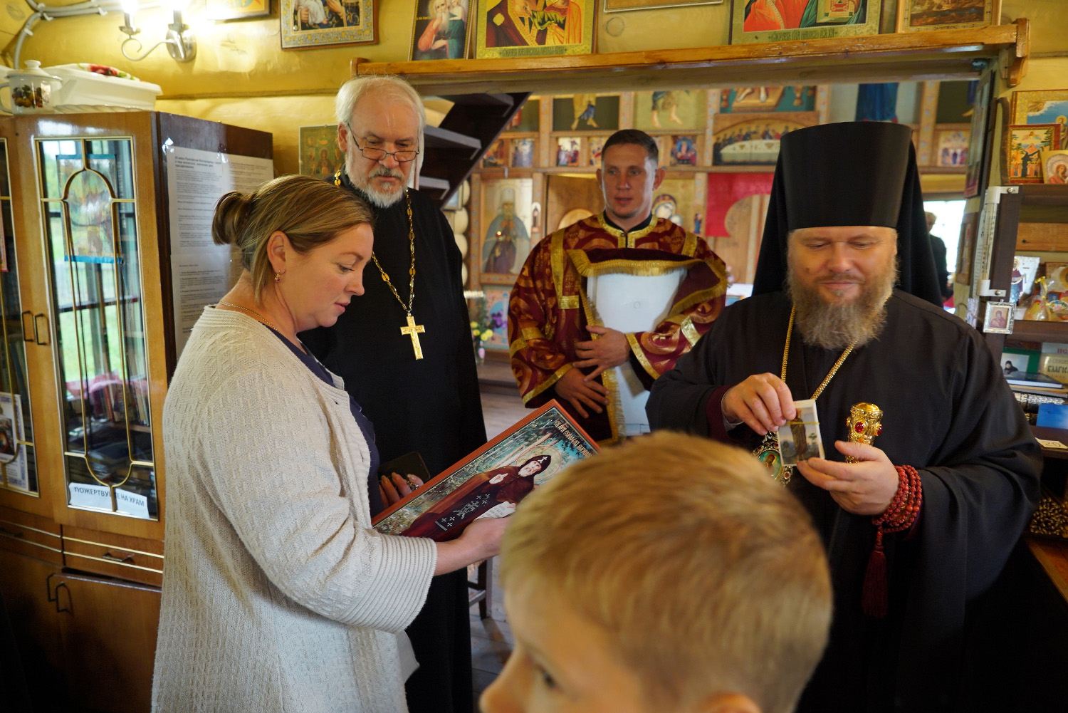 В завершение богослужения архипастырь обратился к сослужащему духовенству и всем молящимся с проповедью, посвященной сегодняшнему празднику, а затем подарил прихожанам памятные иконки.