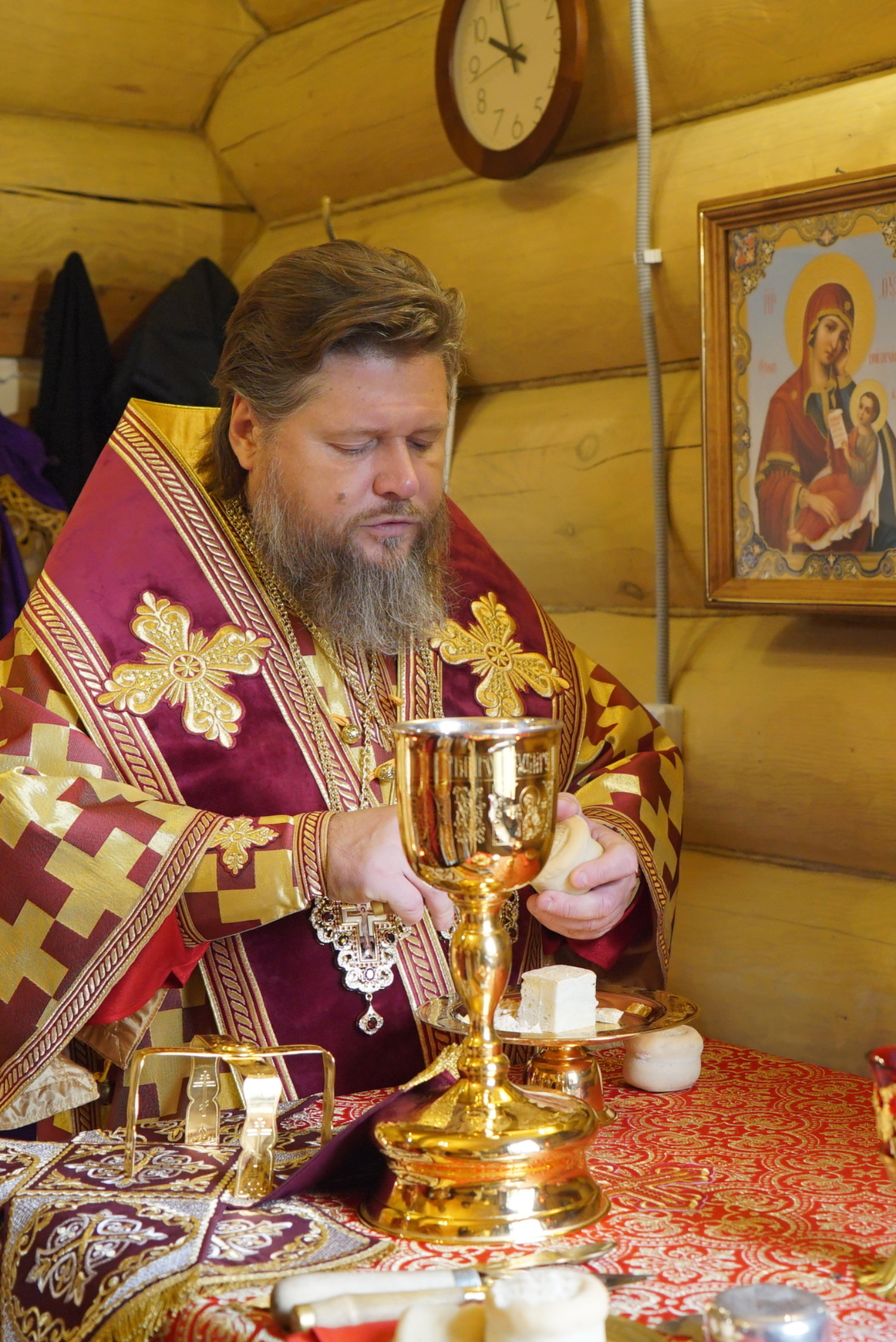 На литургии владыка Серафим причастил верующих Святых Христовых Таин.