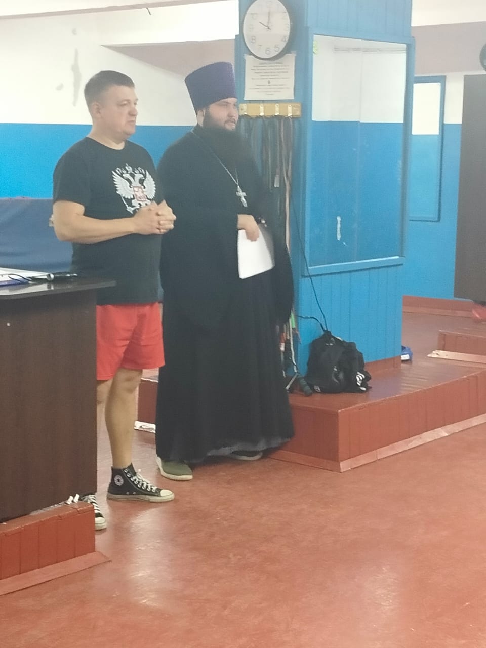 В своем выступлении отец Александр рассказал об установлении и истории праздника в память об освобождении Москвы от врагов в начале XVII века. В завершение встречи батюшка ответил на вопросы и пожелал присутствующим крепости духа и спортивных побед.