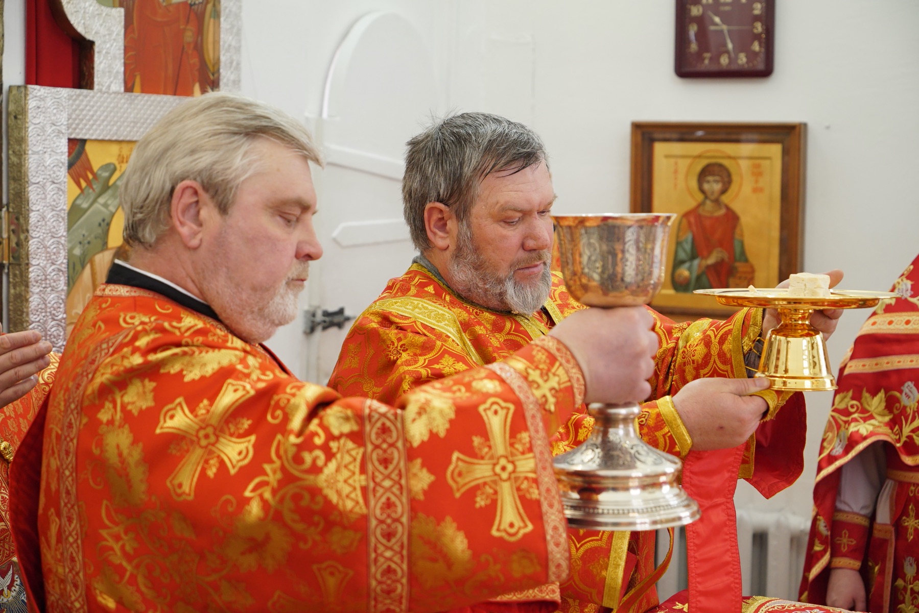 За литургией владыка Серафим причастил верующих Святых Христовых Таин.