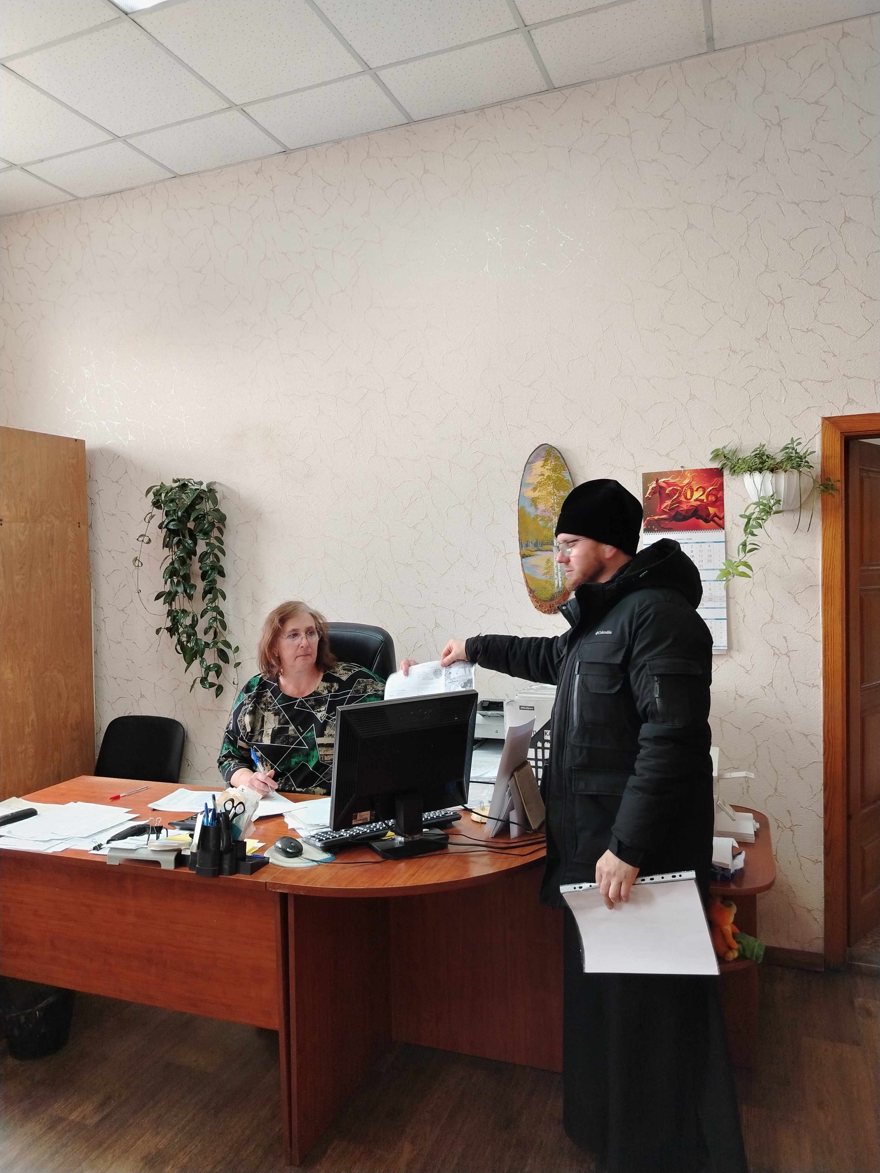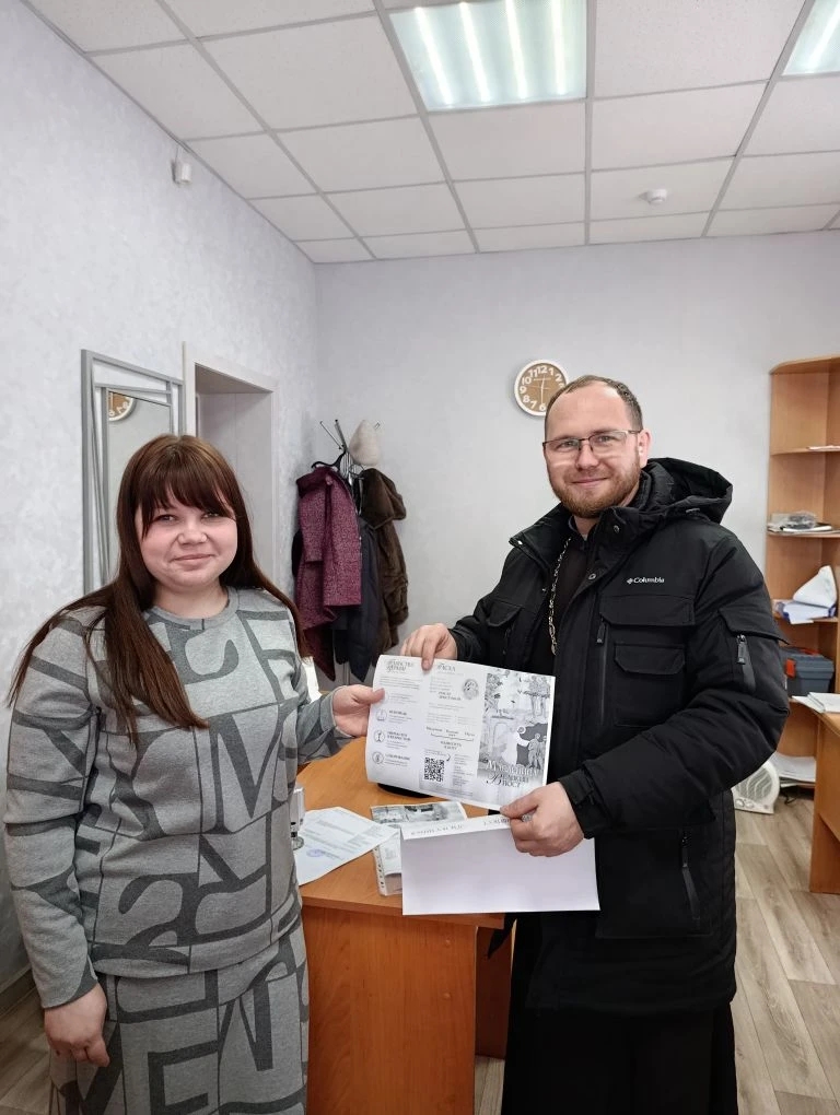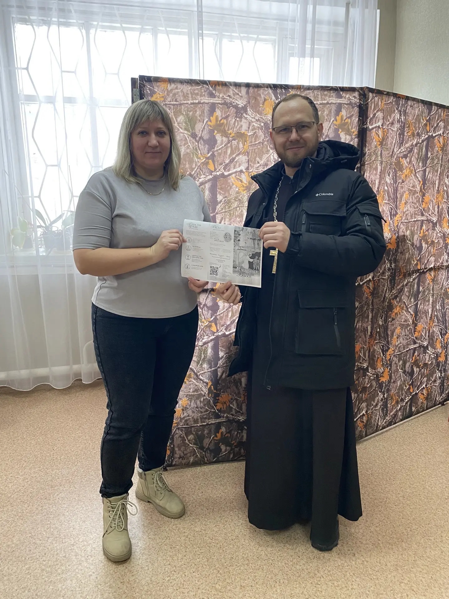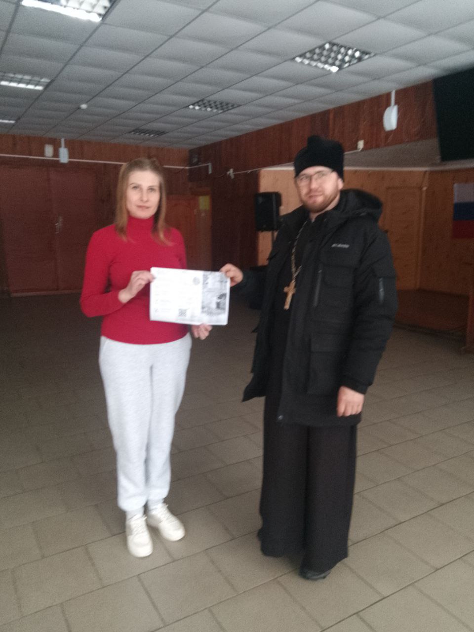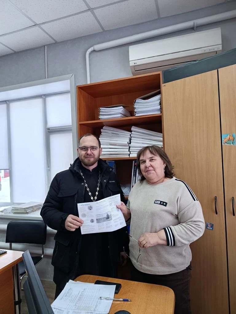 Батюшка раздавал буклеты, посвященные Масленице и Великому посту, жителям села на улицах, а также в различных организациях.