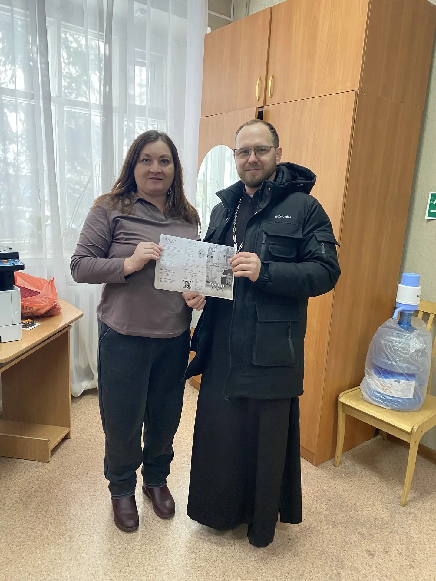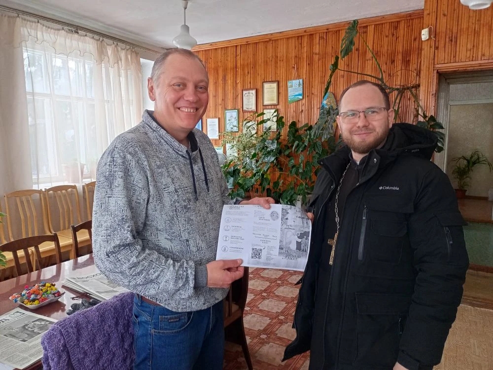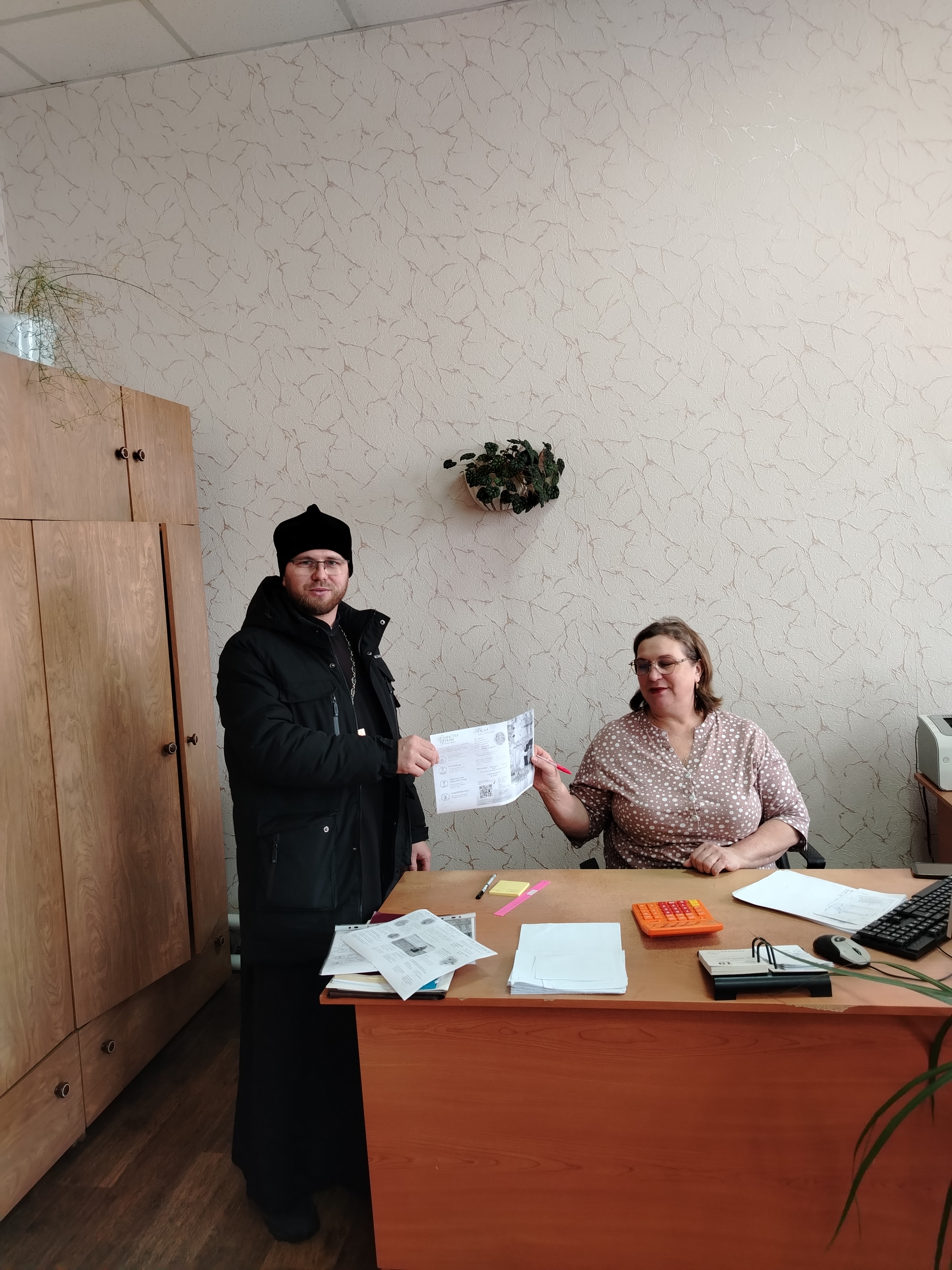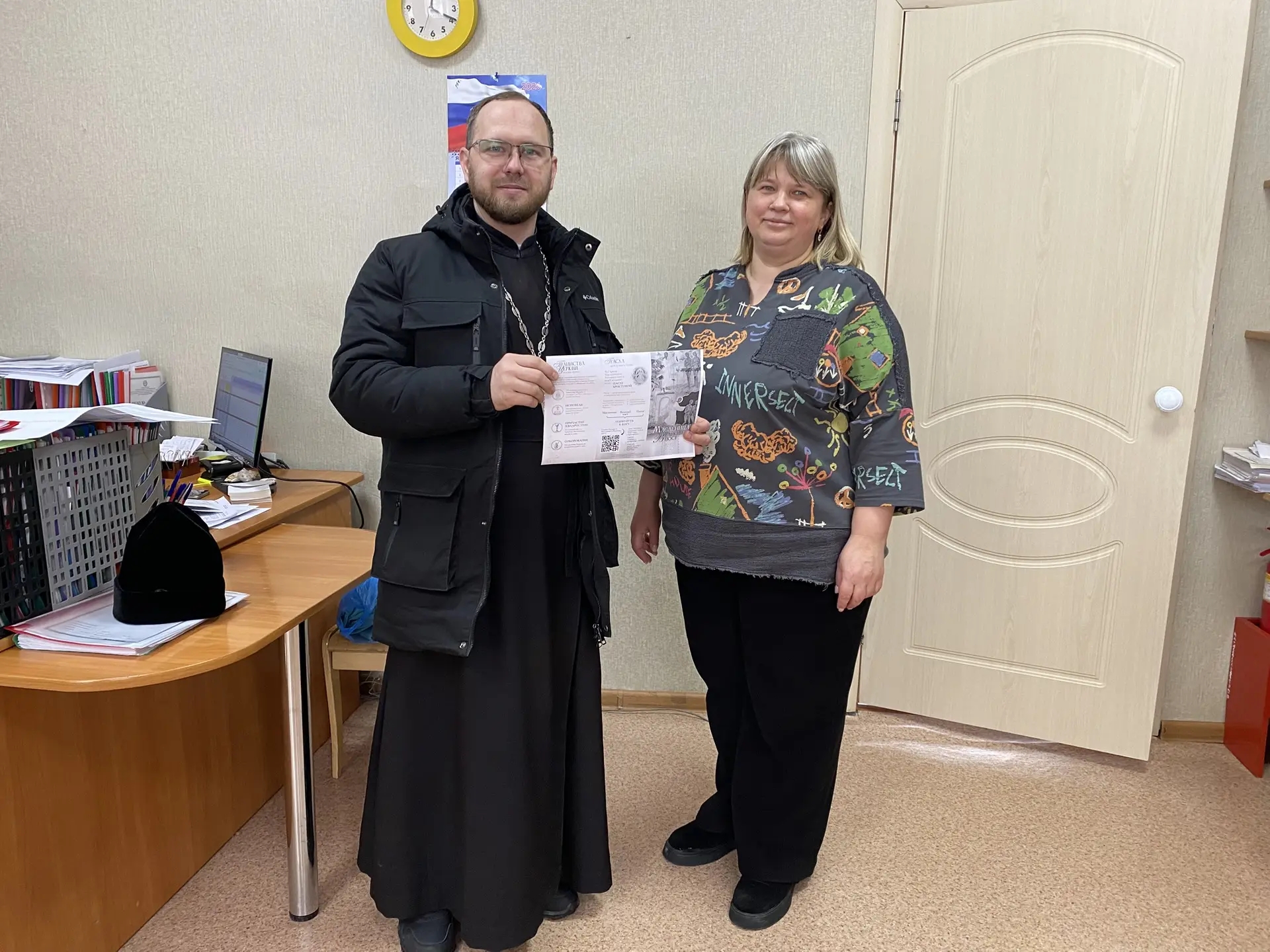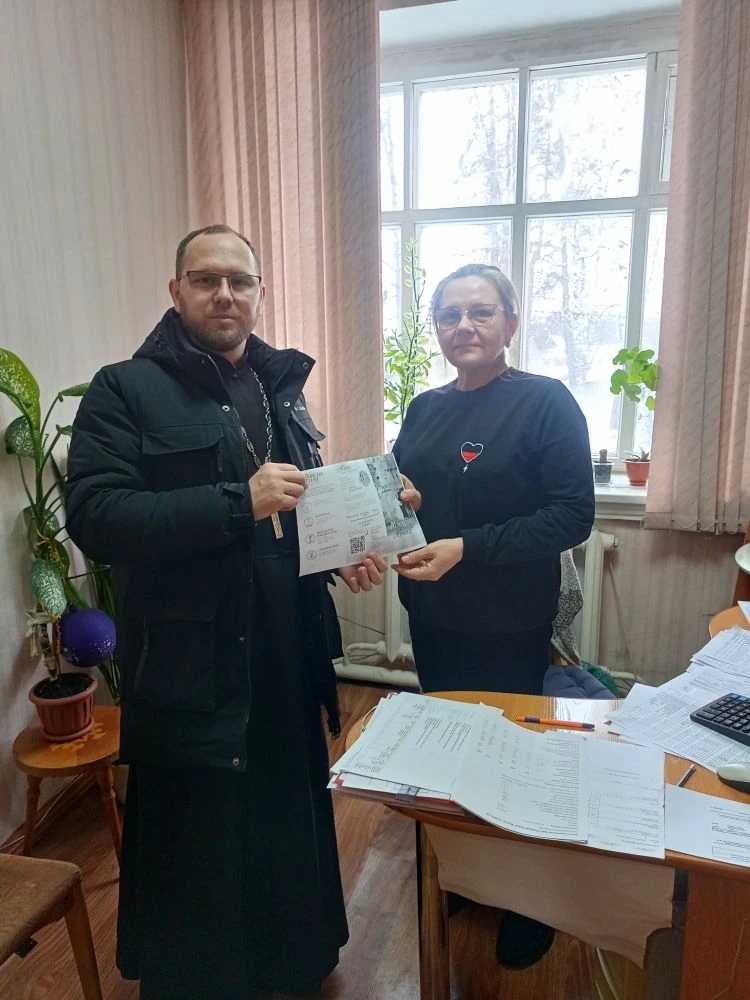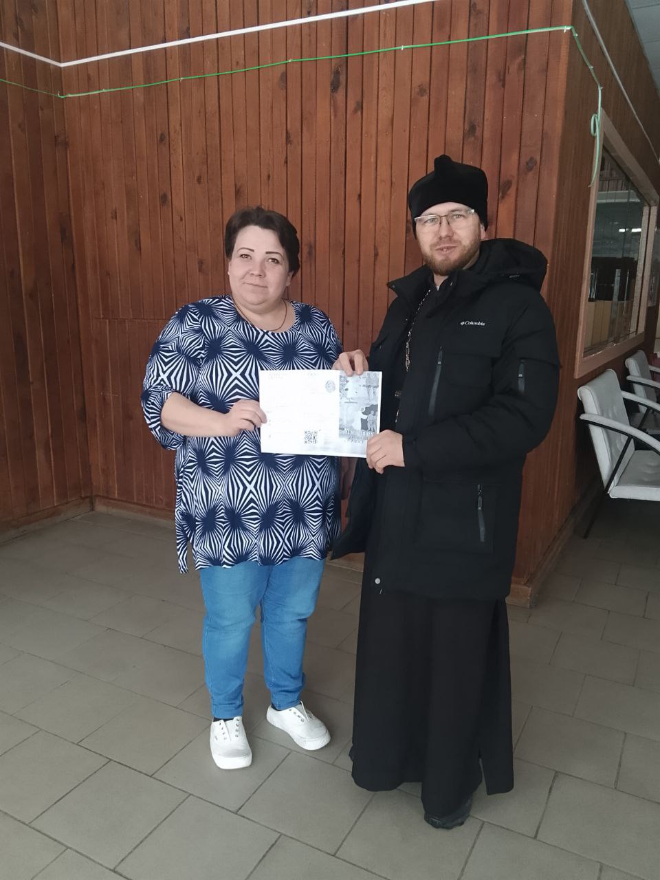 Батюшка раздавал буклеты, посвященные Масленице и Великому посту, жителям села на улицах, а также в различных организациях.