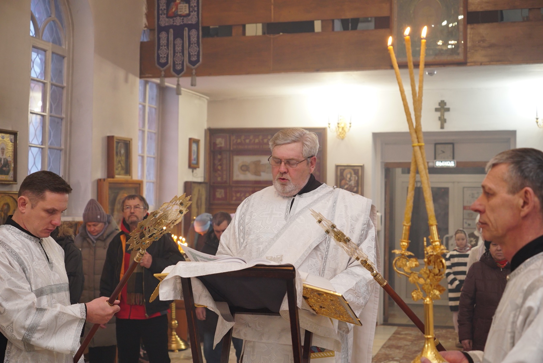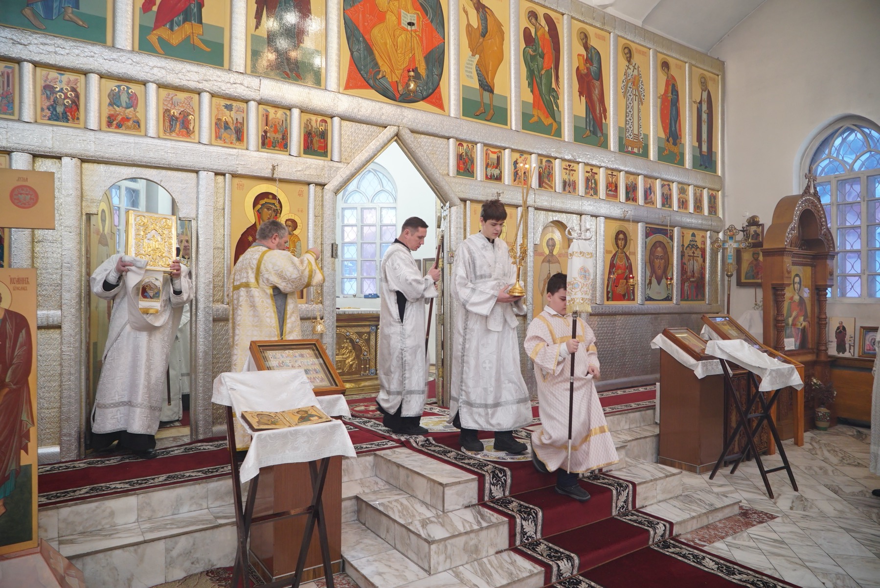 На сугубой ектении были произнесены особые прошения: «…о еже прияти молитвы нас недостойных рабов Твоих в сию годину испытания, пришедшую на Русь Святую…». Затем правящий архиерей вознес молитву о Святой Руси.