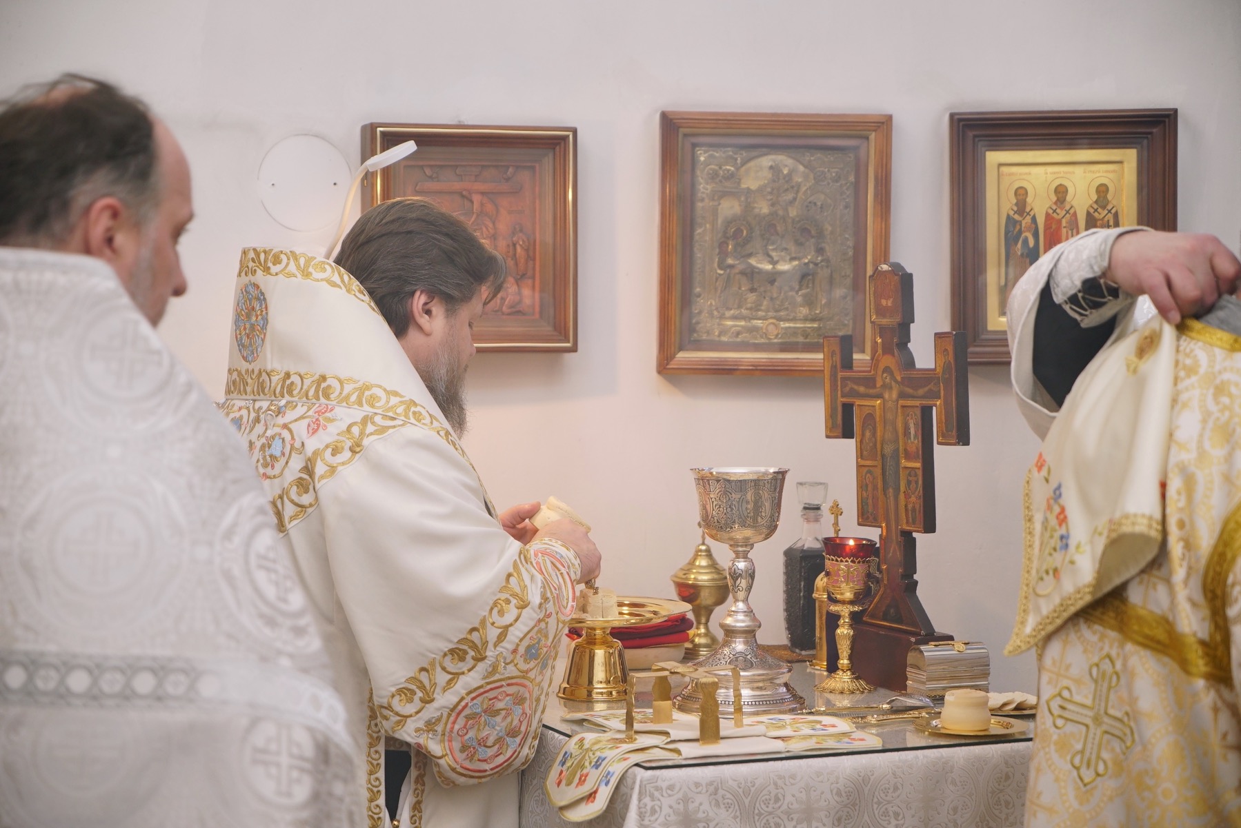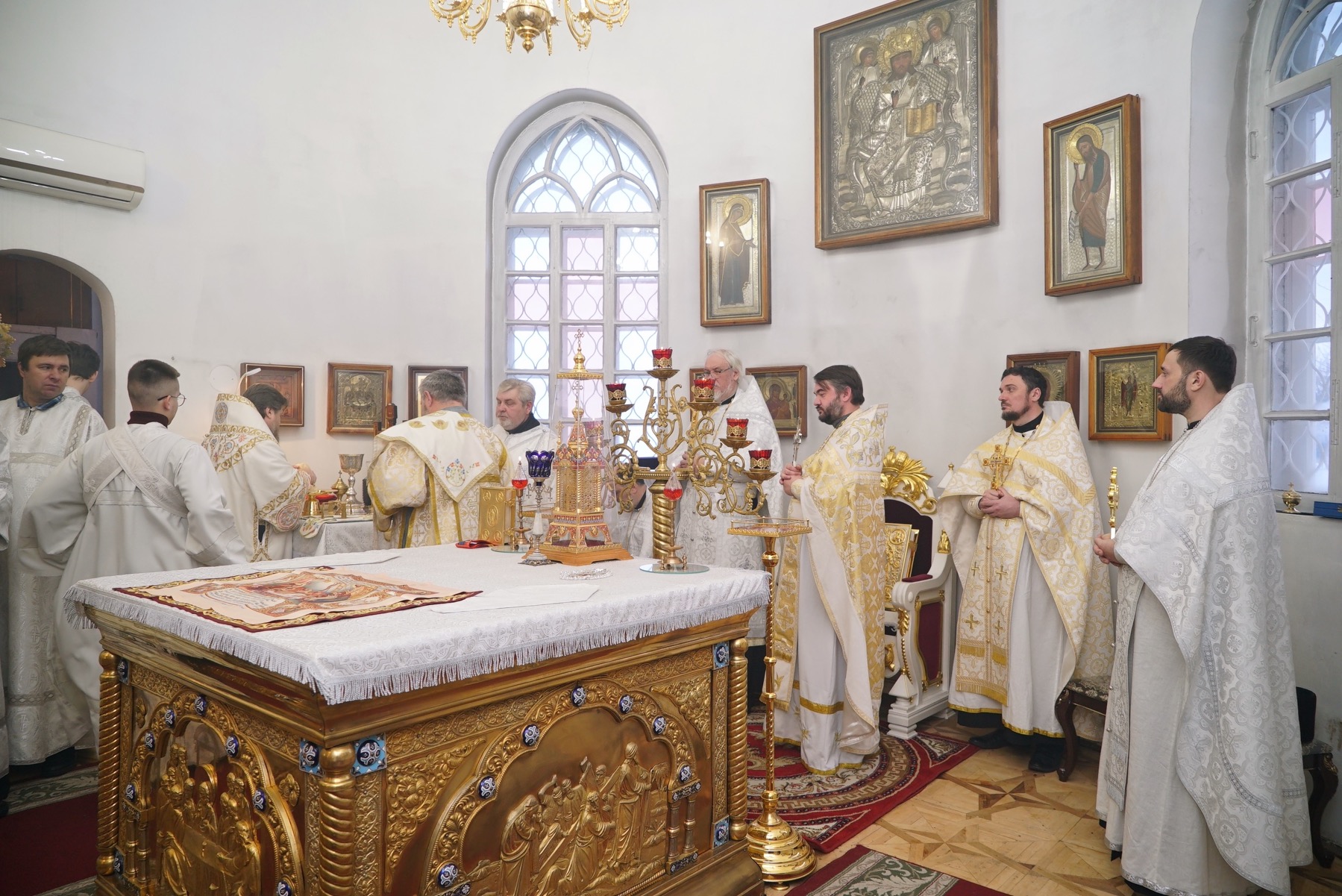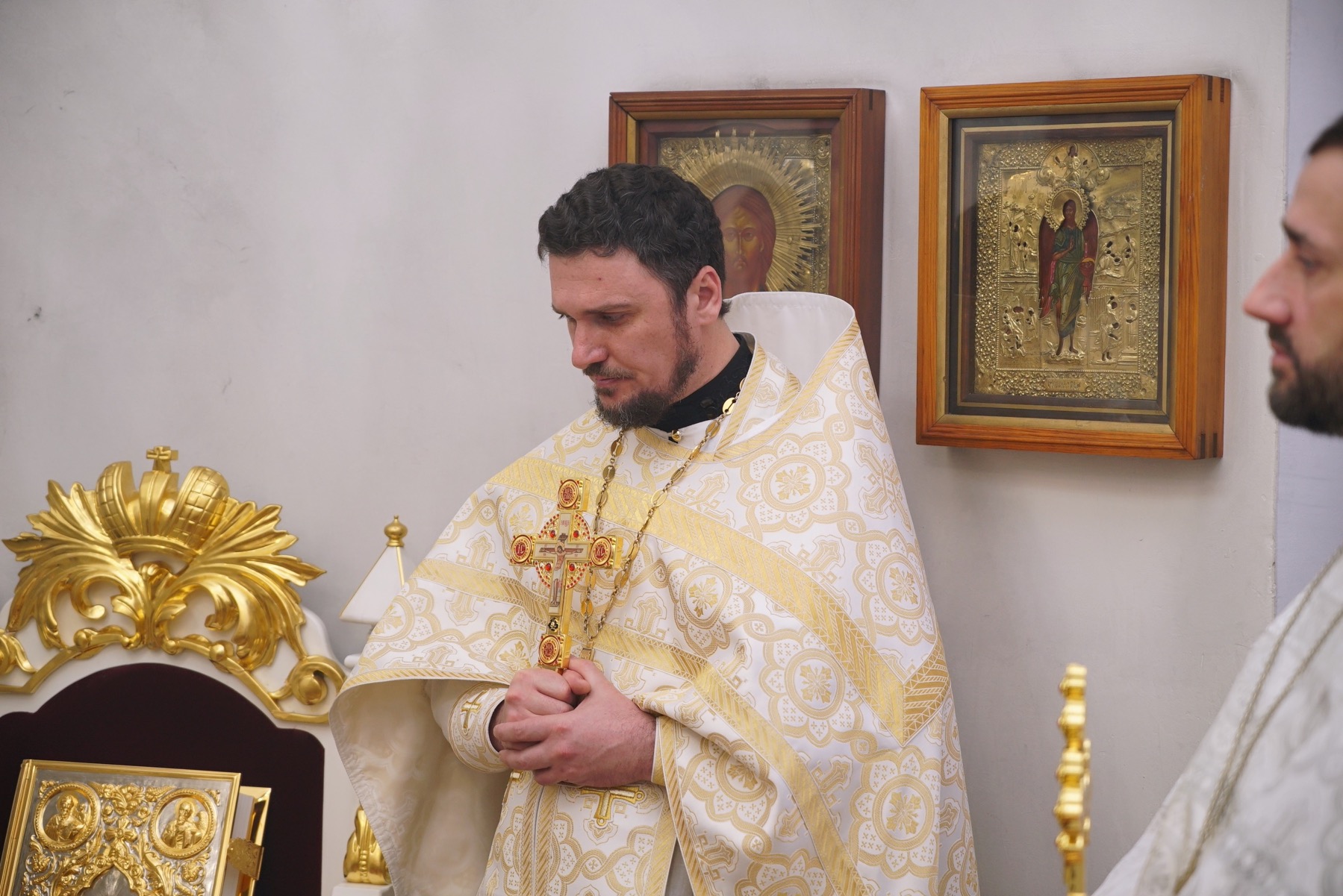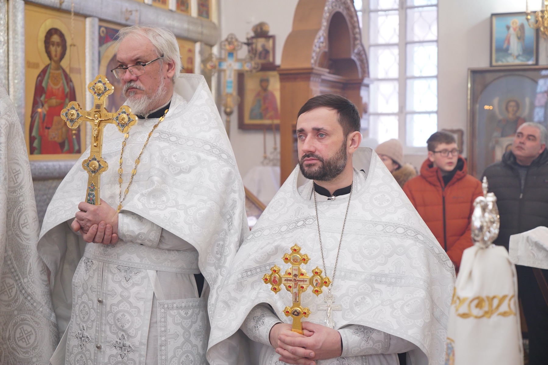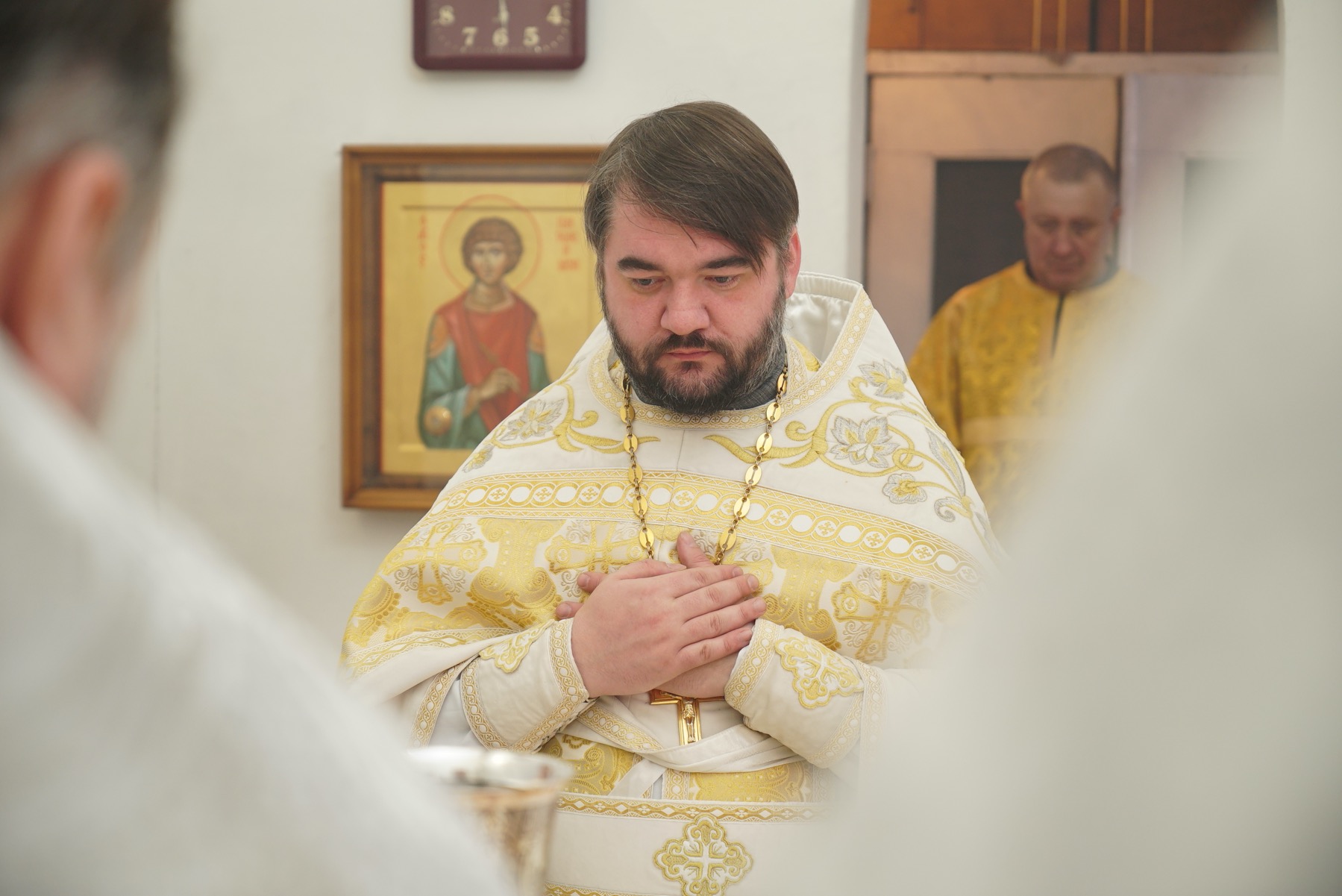 Преосвященному владыке сослужили: ключарь Успенского кафедрального собора протоиерей Александр Петров, ключарь Пантелеимоновского собора иерей Роман Третьяков, иерей Виктор Пушкарев, иерей Андрей Новиков, иерей Герман Ходаковский, диакон Вадим Шпак, диакон Андрей Поповичев.