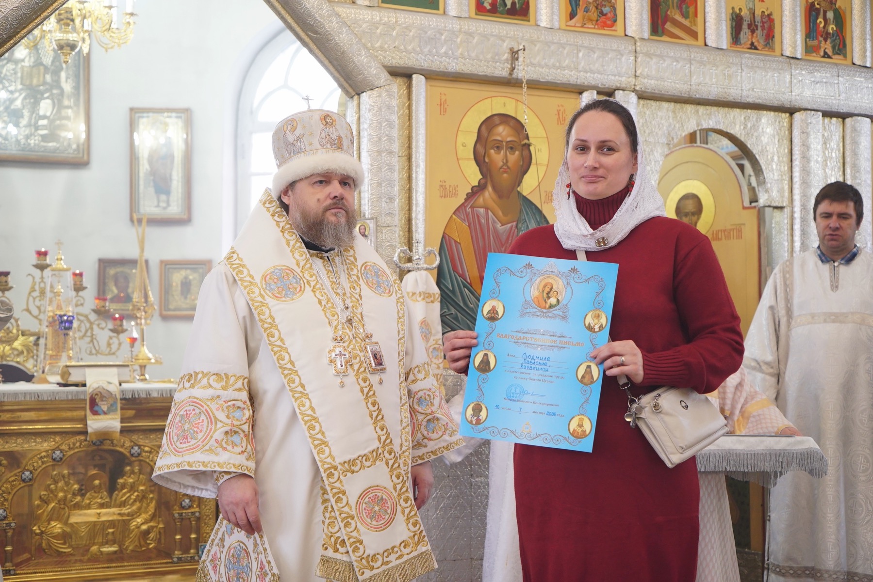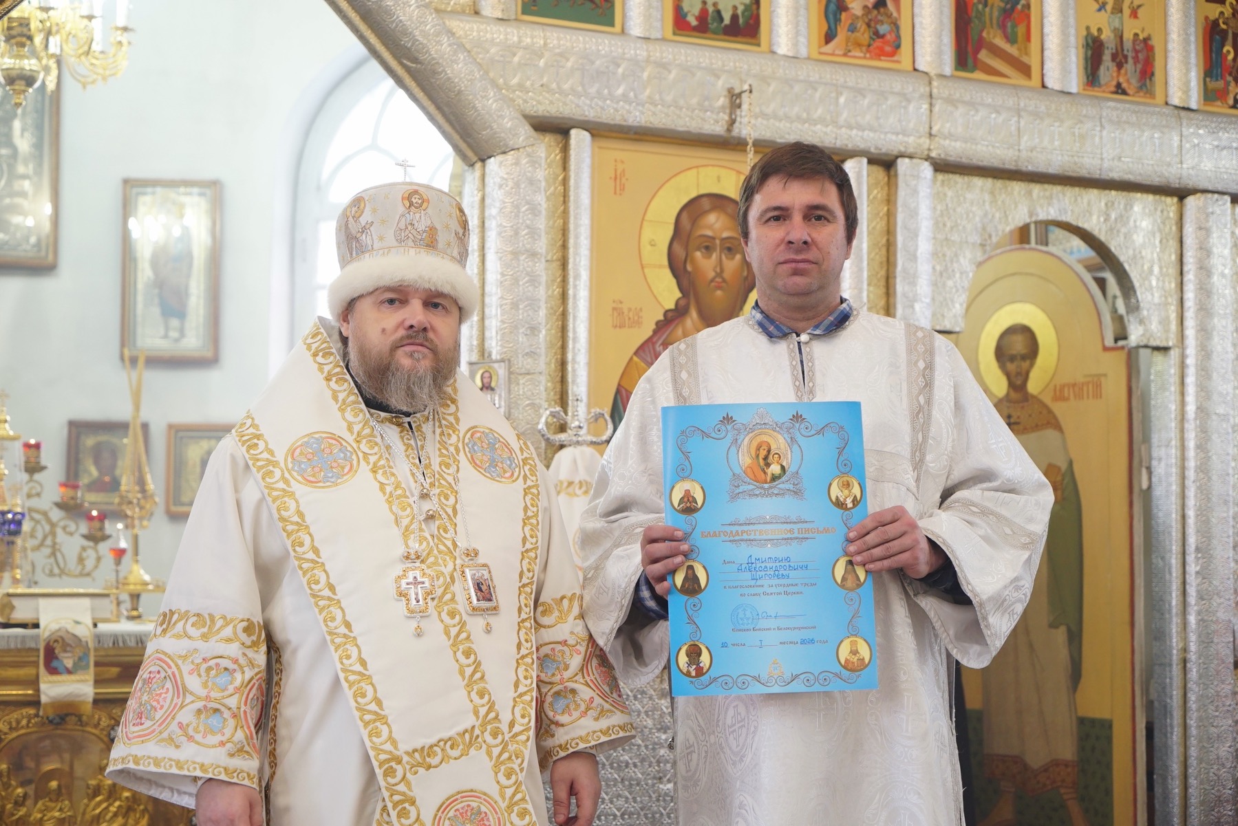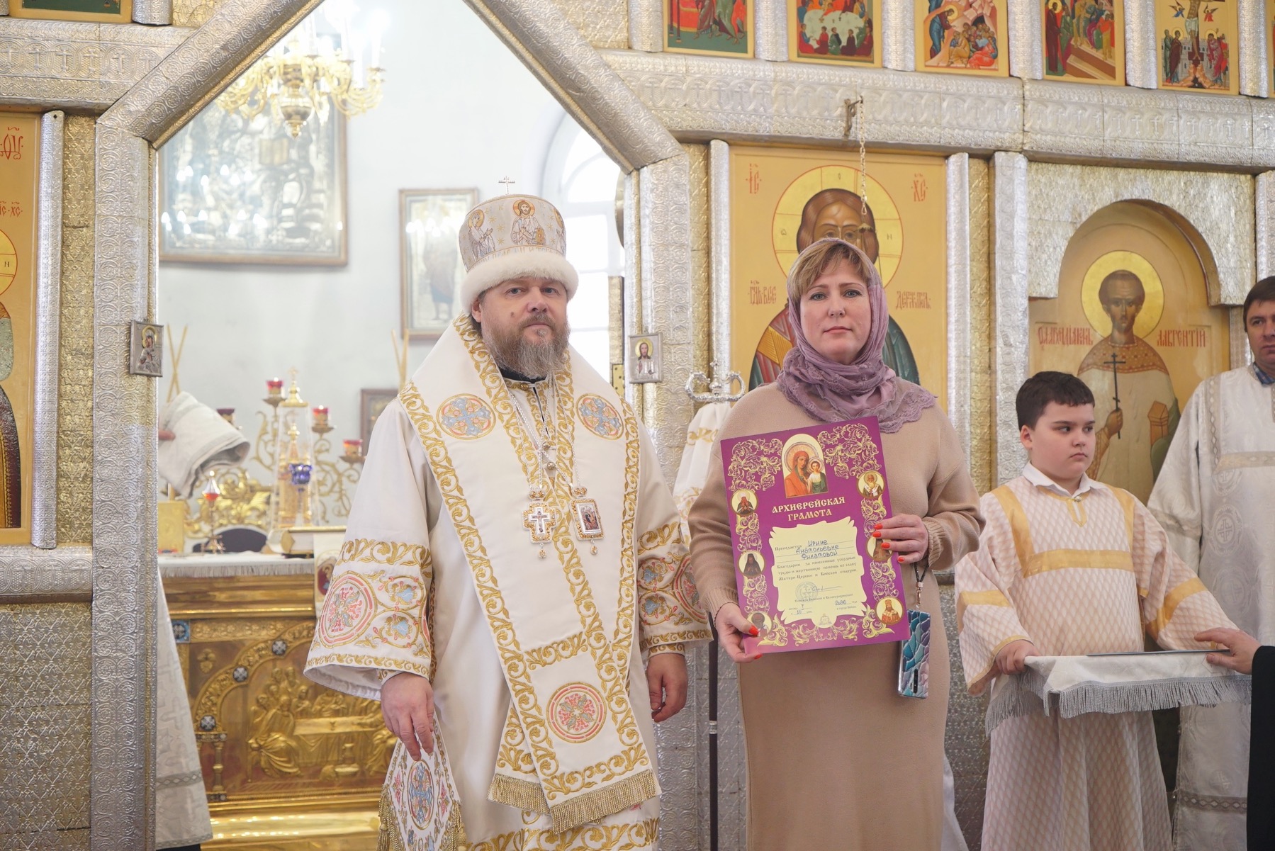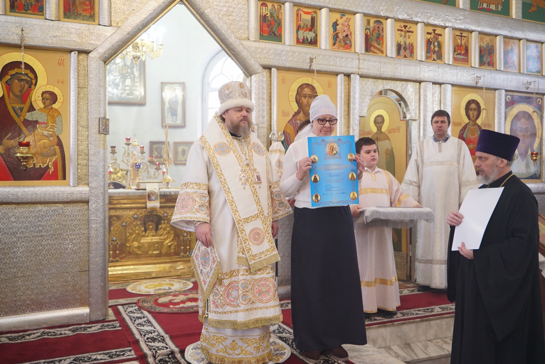 Епископ Серафим вручил Архиерейские грамоты и Благодарственные письма активным прихожанам Пантелеимоновского собора.