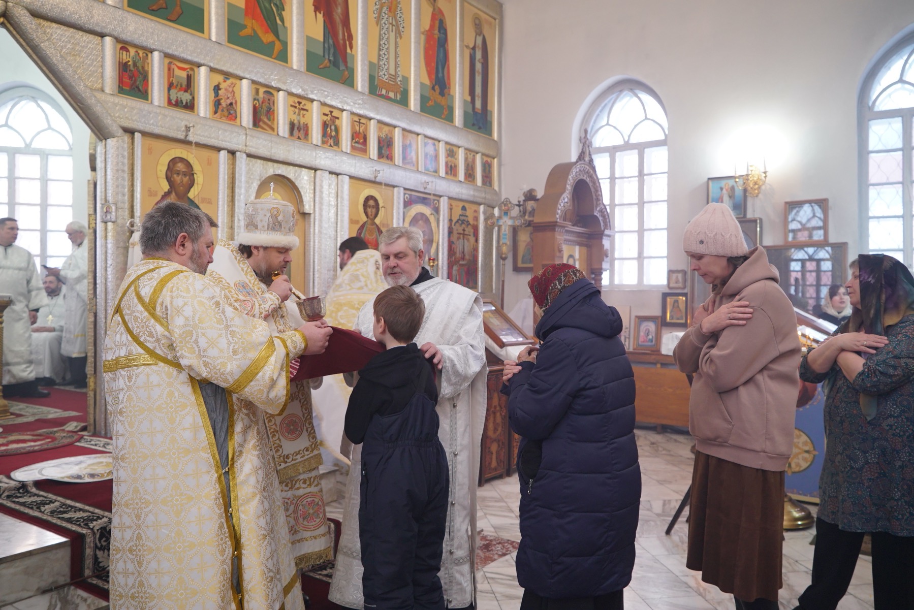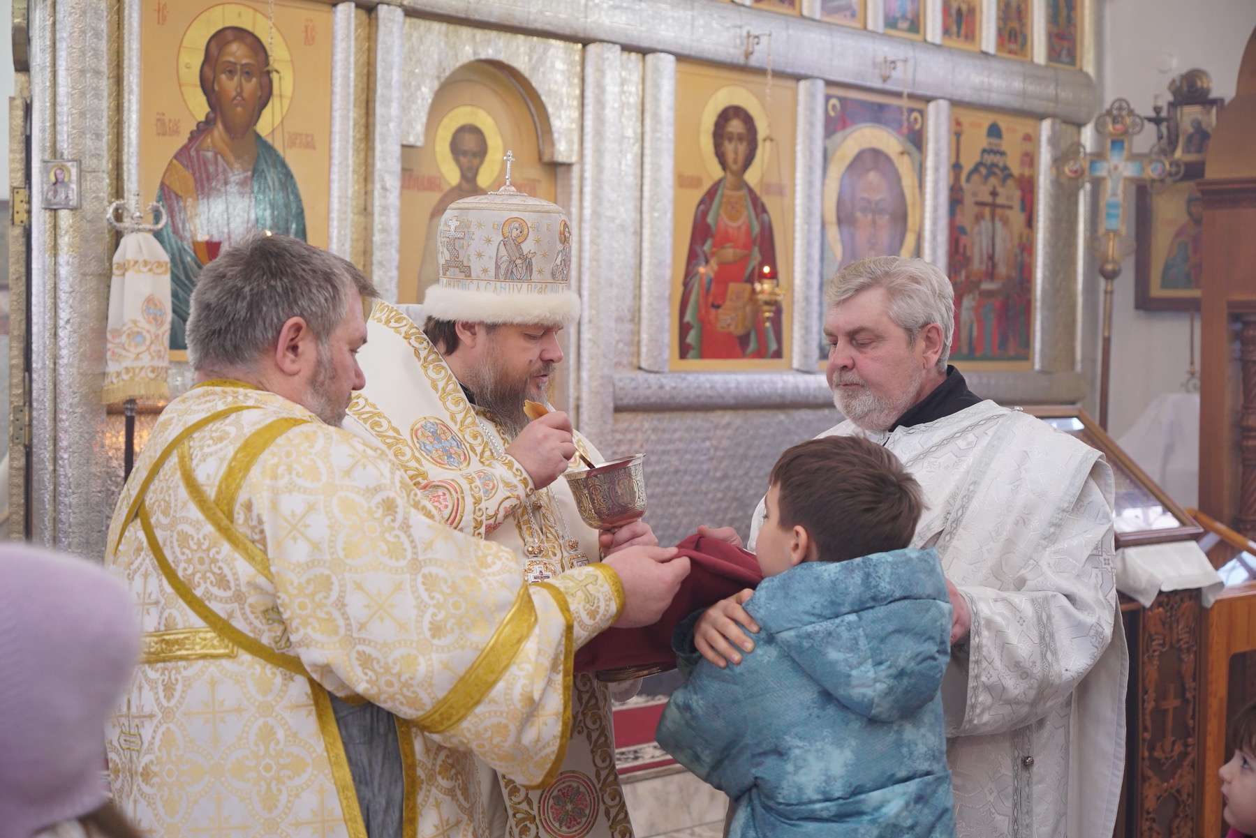 За литургией владыка Серафим причастил верующих Святых Христовых Таин.
