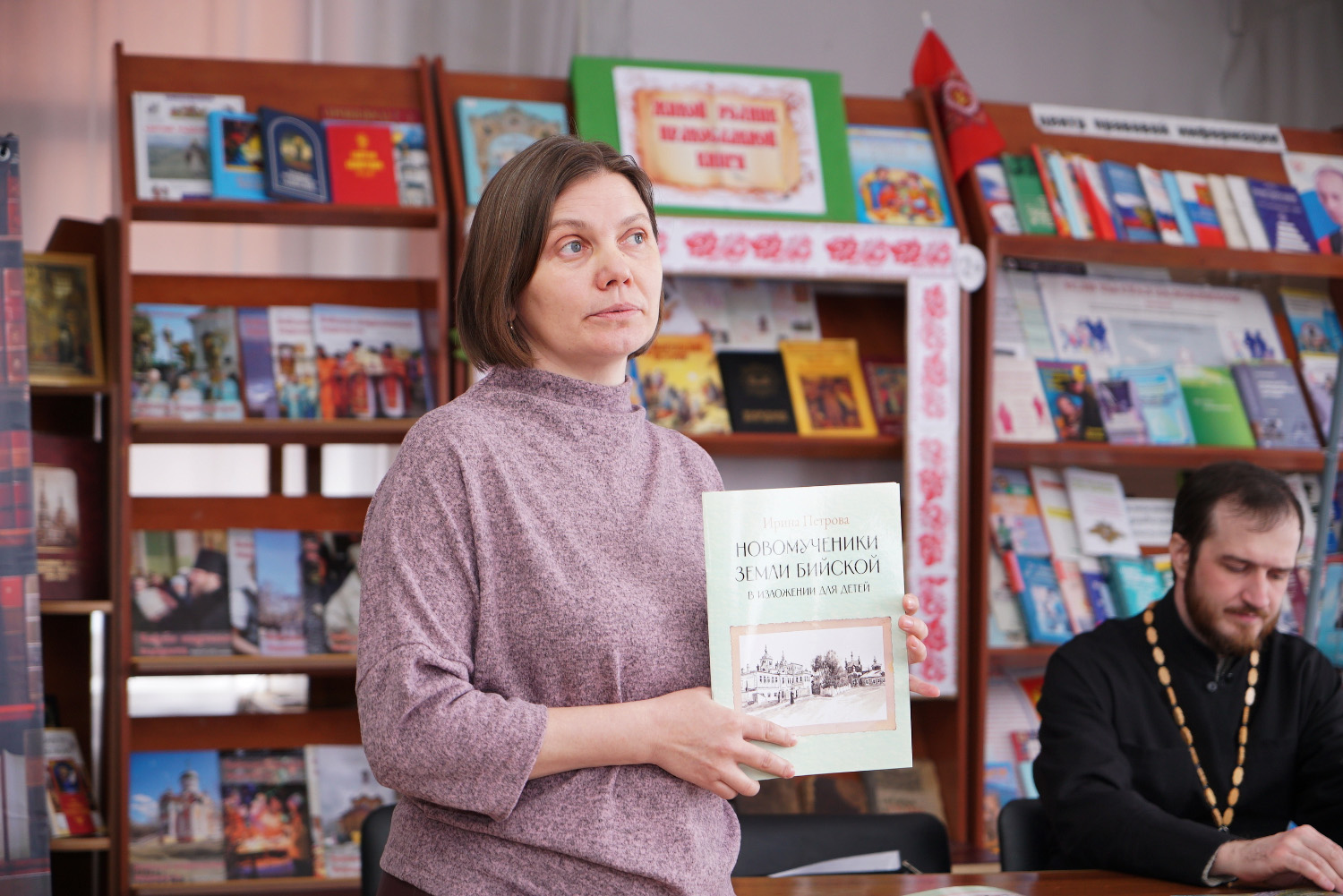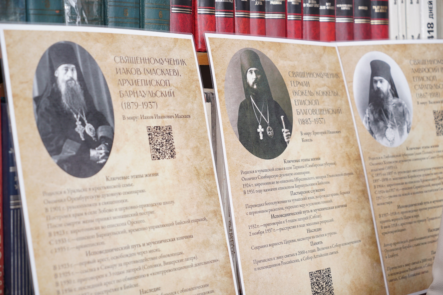 Кроме того, на встрече в библиотеке были представлены стенды, посвященные новомученикам Бийской земли.