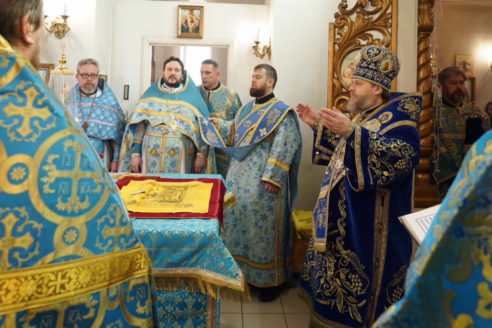Преосвященному владыке сослужили: благочинный Петропавловского церковного округа иерей Георгий Степанищев, настоятель храма иерей Виталий Попов, иерей Димитрий Щербаков, диакон Никита Гологузов.