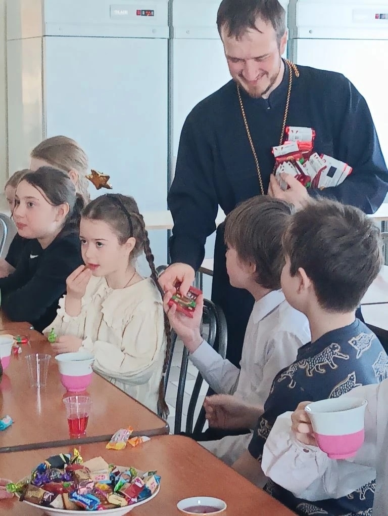 С вступительным словом к собравшимся обратился руководитель воскресной школы иерей Иоанн Шкуропацкий. Священник рассказал о смысле и традициях праздника Пасхи, напомнив зрителям о его духовном значении.