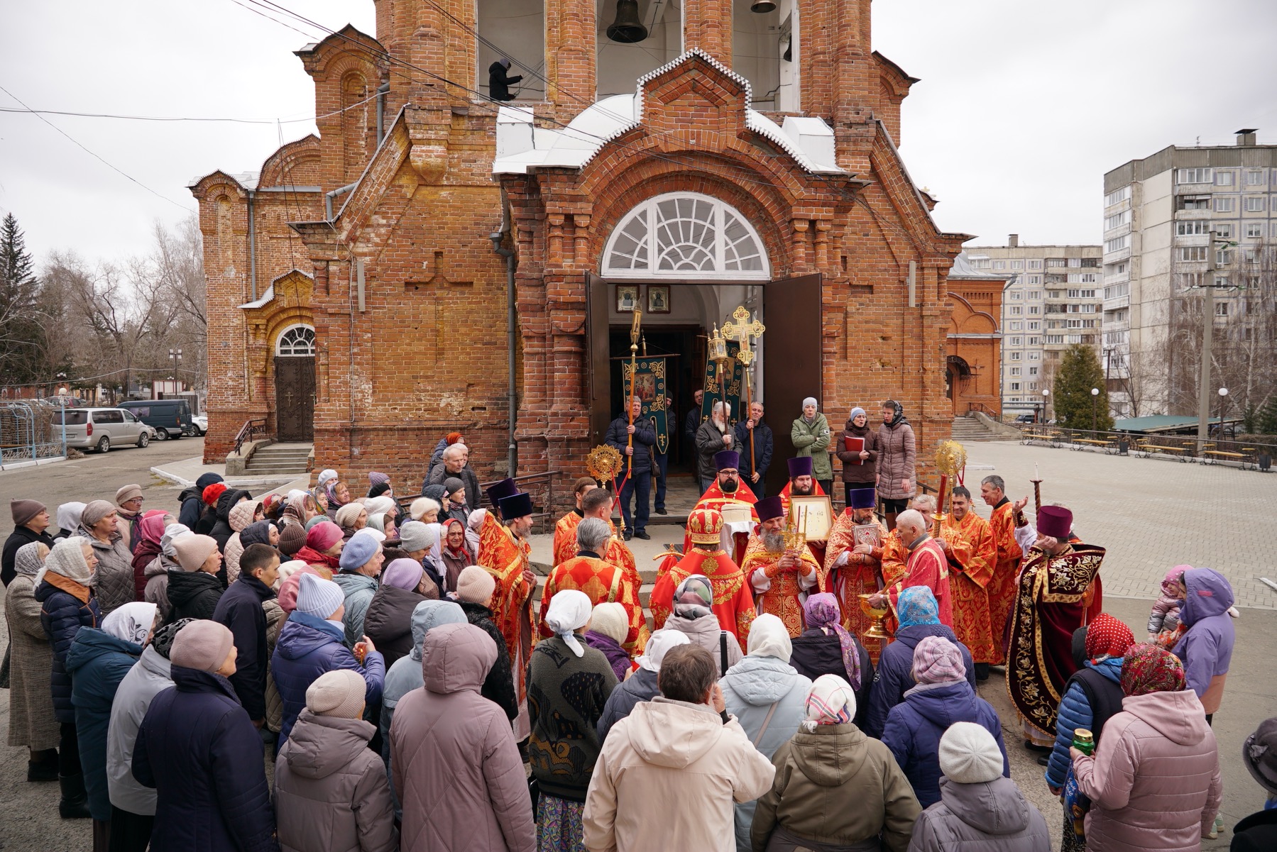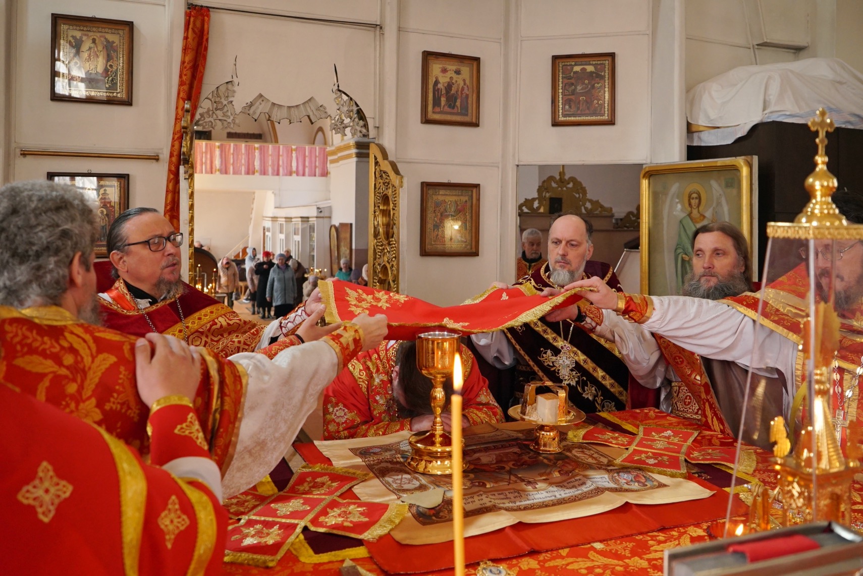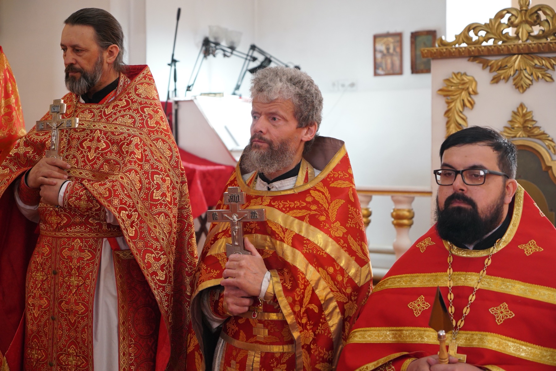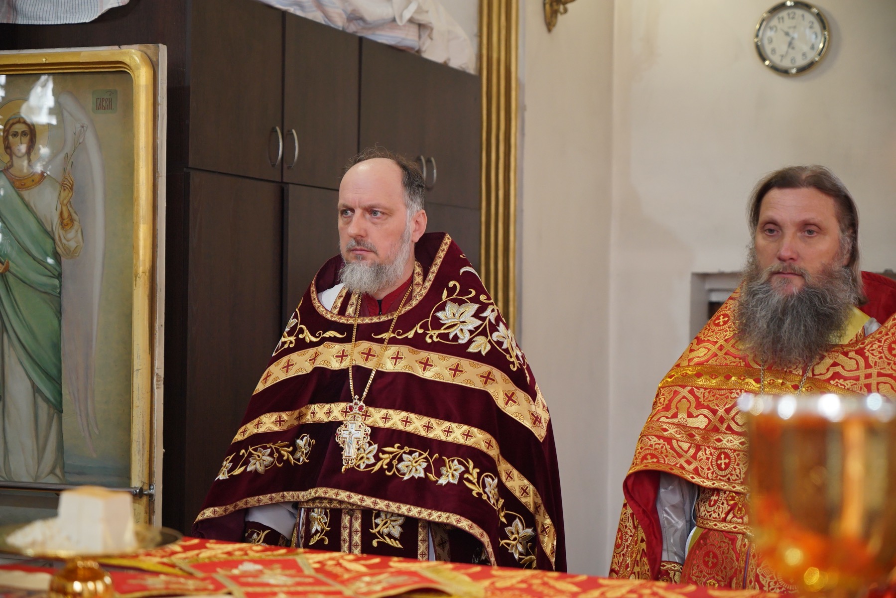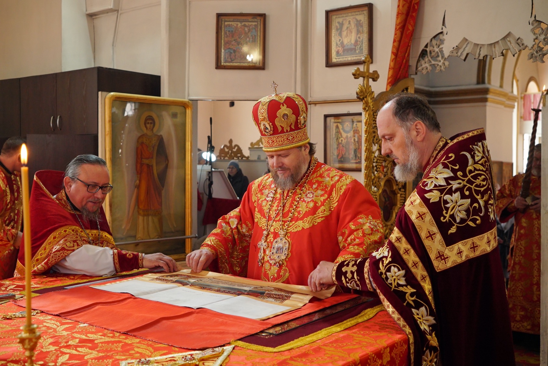 Его Преосвященству сослужили: настоятель храма протоиерей Валерий Замятин, протоиерей Александр Петров, иерей Евгений Щигрев, иерей Димитрий Харин, иерей Димитрий Камбалин, иерей Вадим Четвергов, иерей Василий Давыдкин, иерей Александр Лобанов, протодиакон Вадим Шпак, диакон Николай Геришенко.