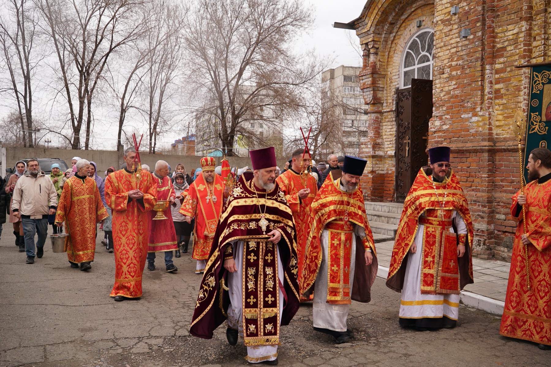 По окончании литургии был совершен Пасхальный крестный ход вокруг храма.