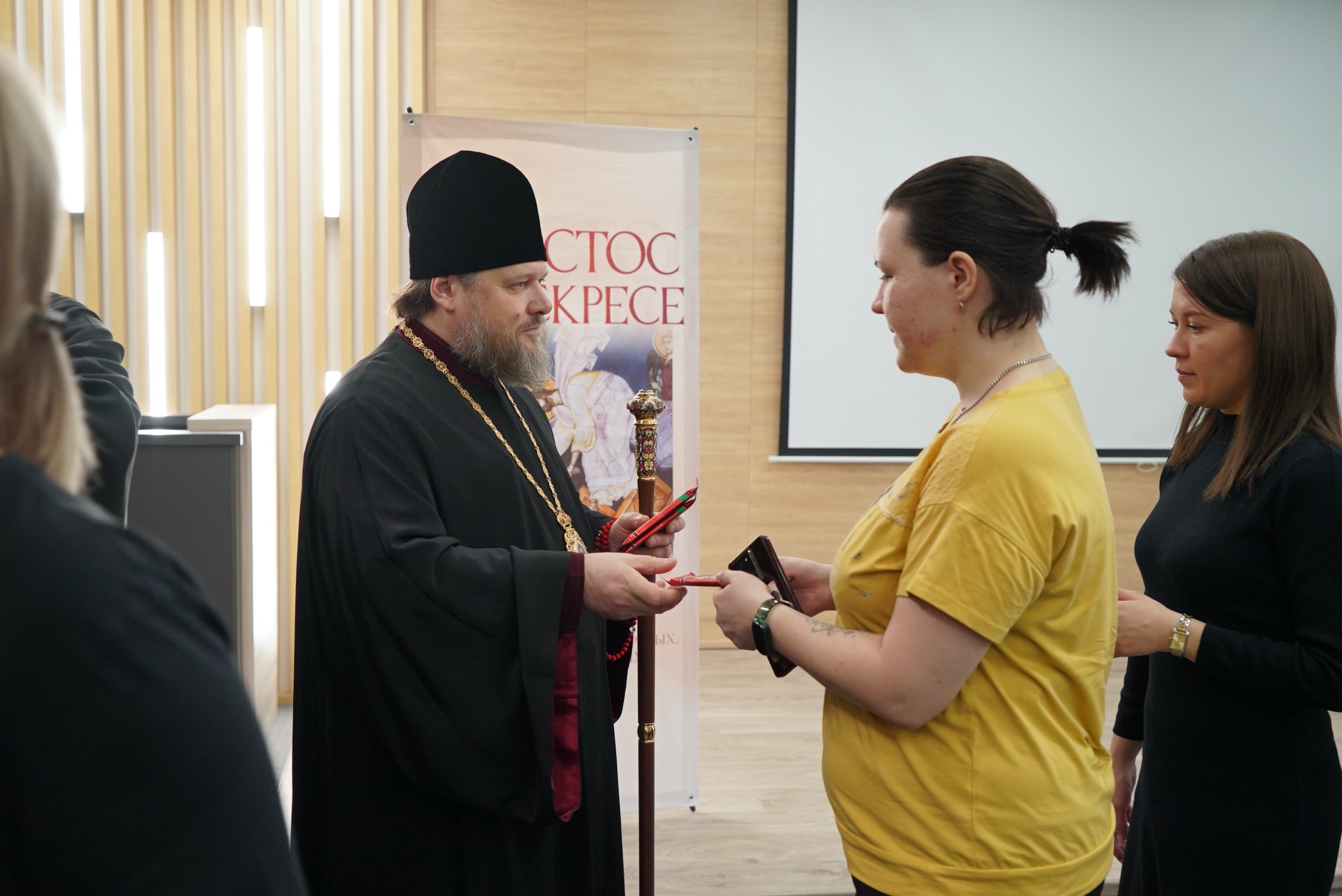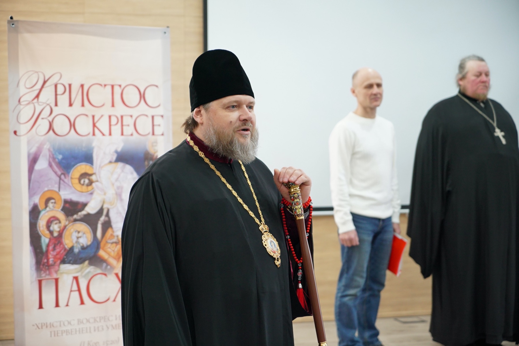 Владыка Серафим поздравил трудовой коллектив с праздником Пасхи. Поздравление сопровождалось исполнением пасхальных песнопений.