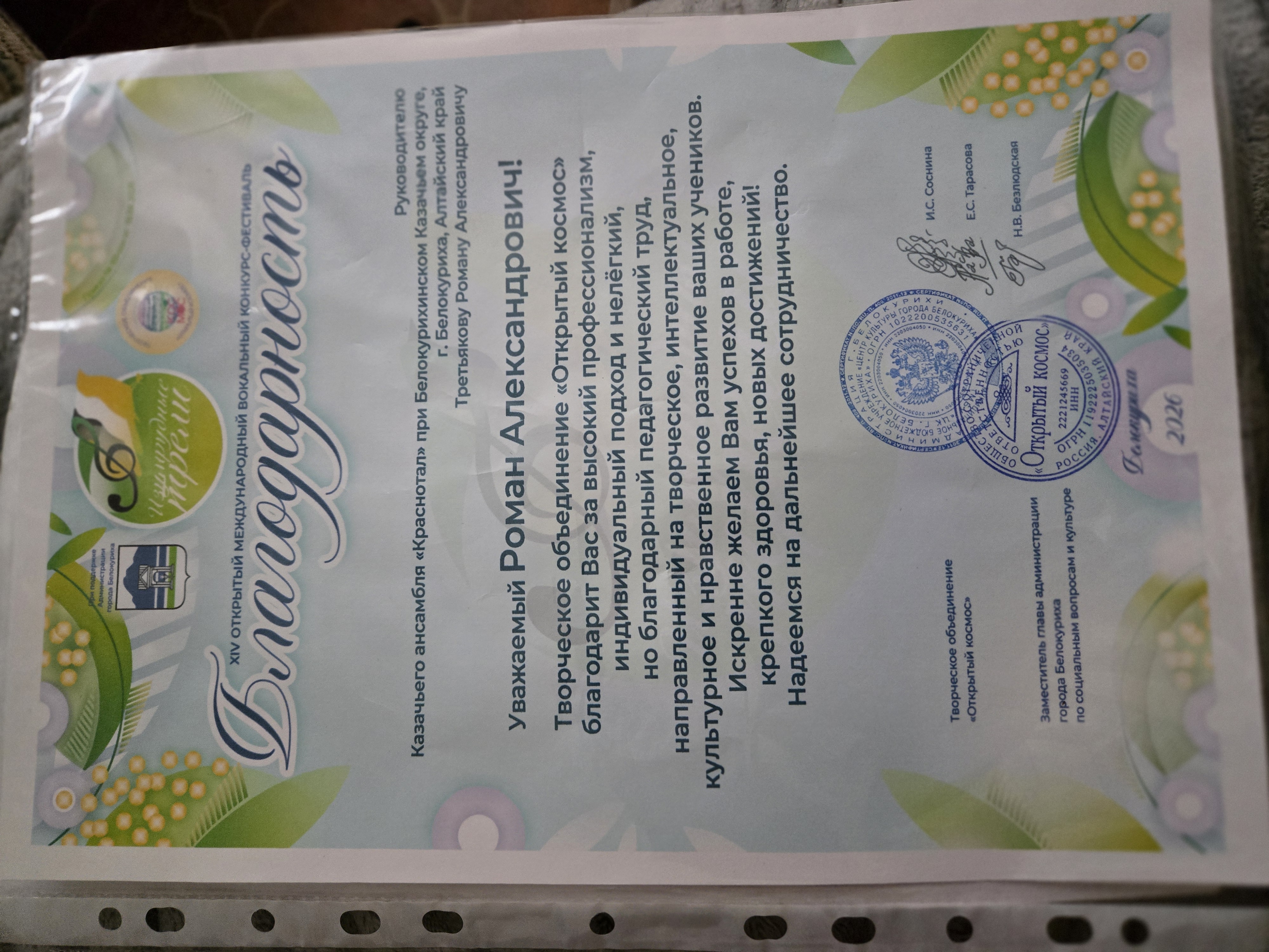 От Белокурихинского казачьего ансамбля «Краснотал», руководителем которого является иерей Роман Третьяков, было подано две заявки: дуэт иерея Романа Третьякова и Майи Николаевны Гавриловой, и дуэт иерея Романа Третьякова и Марии Дмитриевны Зайцевой.