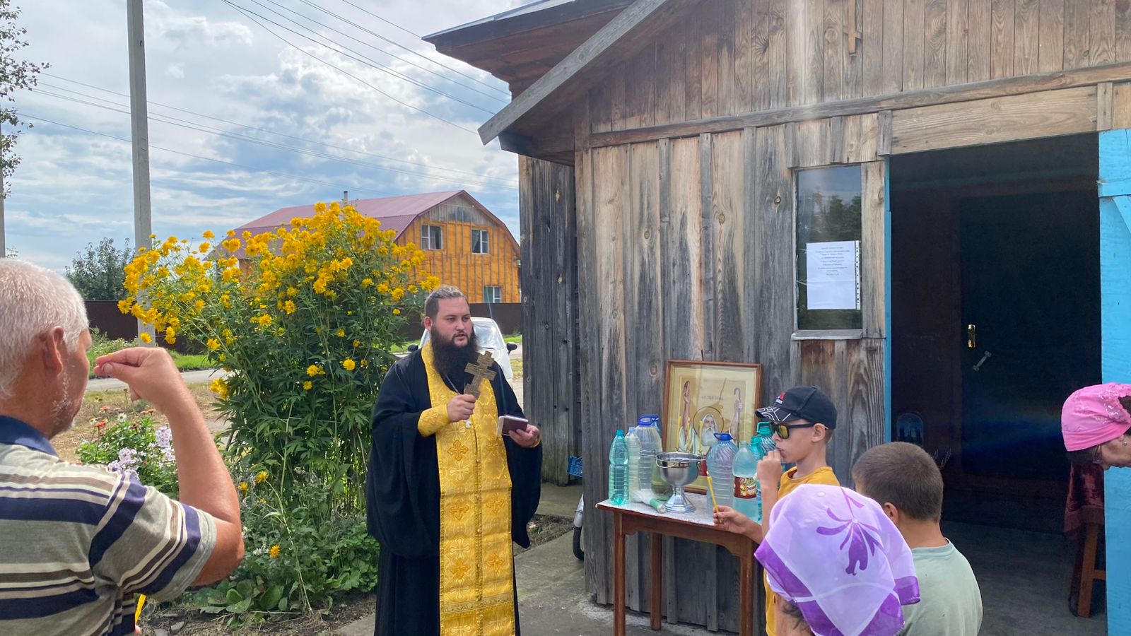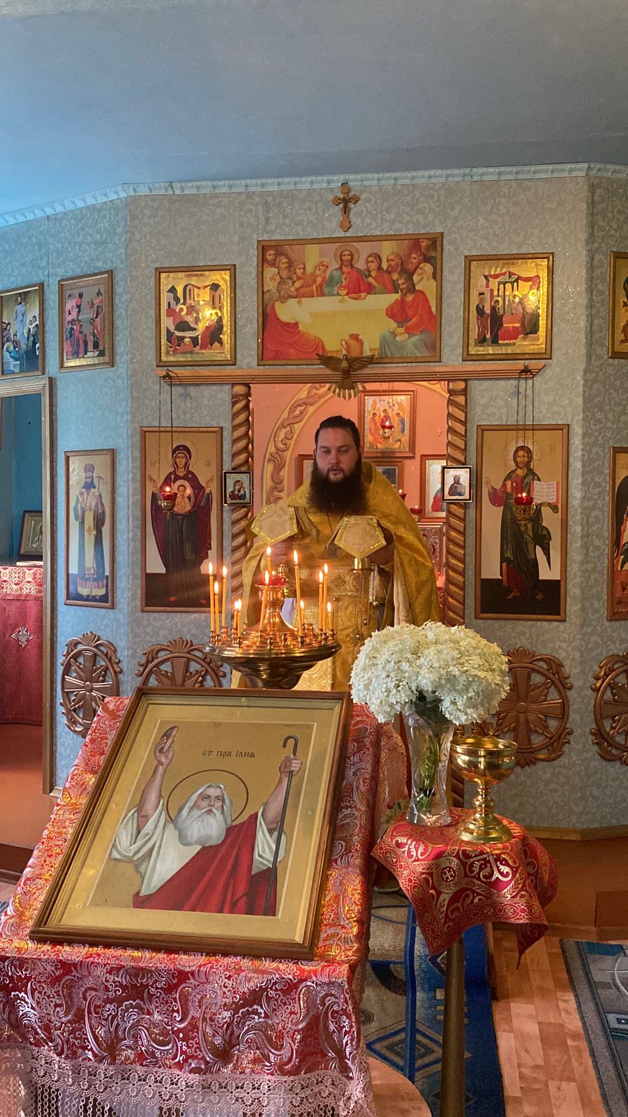 2 августа батюшка совершил праздничную Божественную литургию, на которой верующие – дети и взрослые – причащались Святых Христовых Таин. По окончании богослужения отец Александр поздравил прихожан с престольным праздником и окропил всех святой водой.