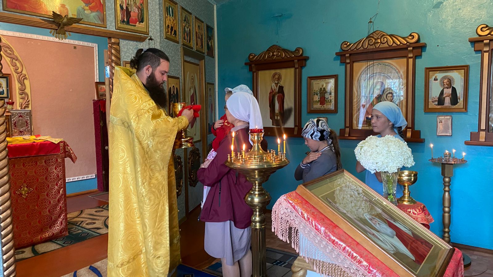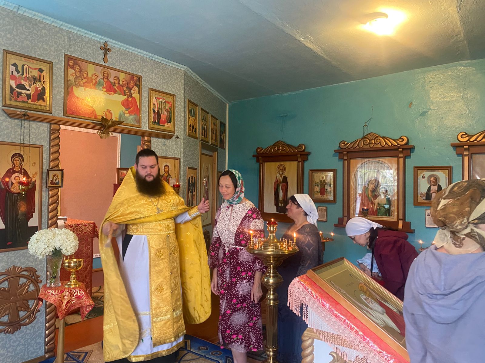 В Новой Чемровке 1 августа, в канун дня празднования памяти пророка Илии, отец Александр совершил всенощное бдение с благословением хлебов и помазанием молящихся освященным елеем.