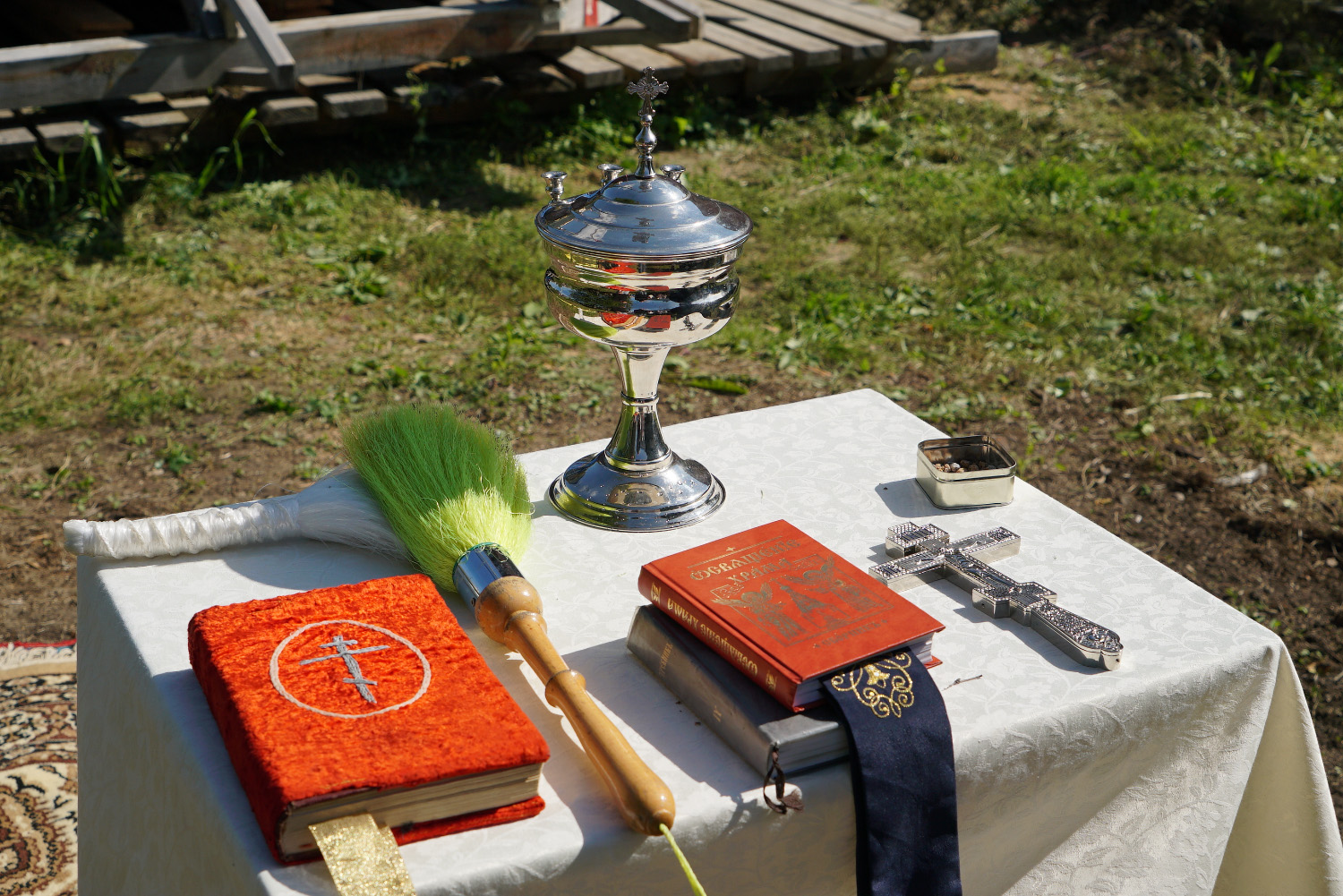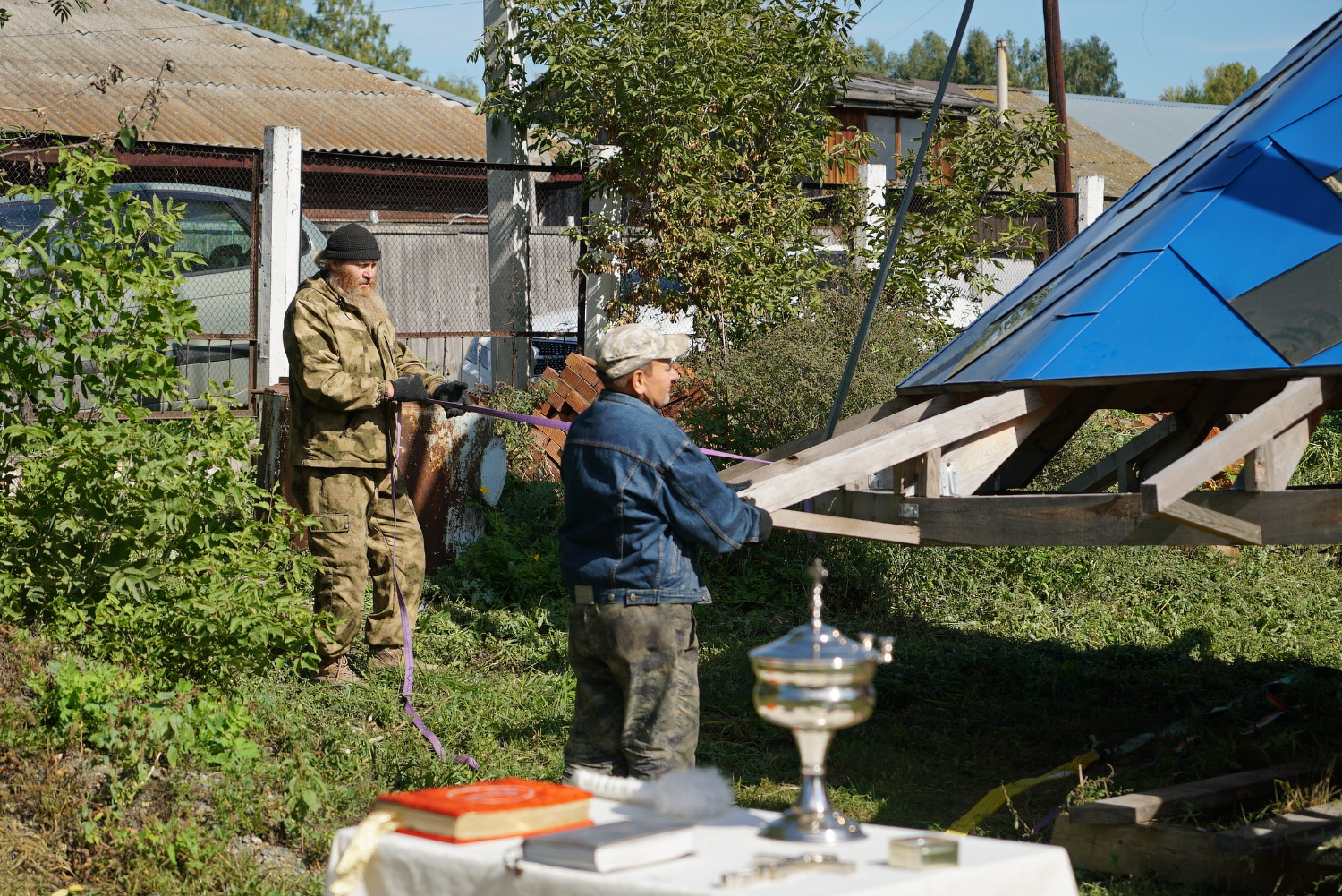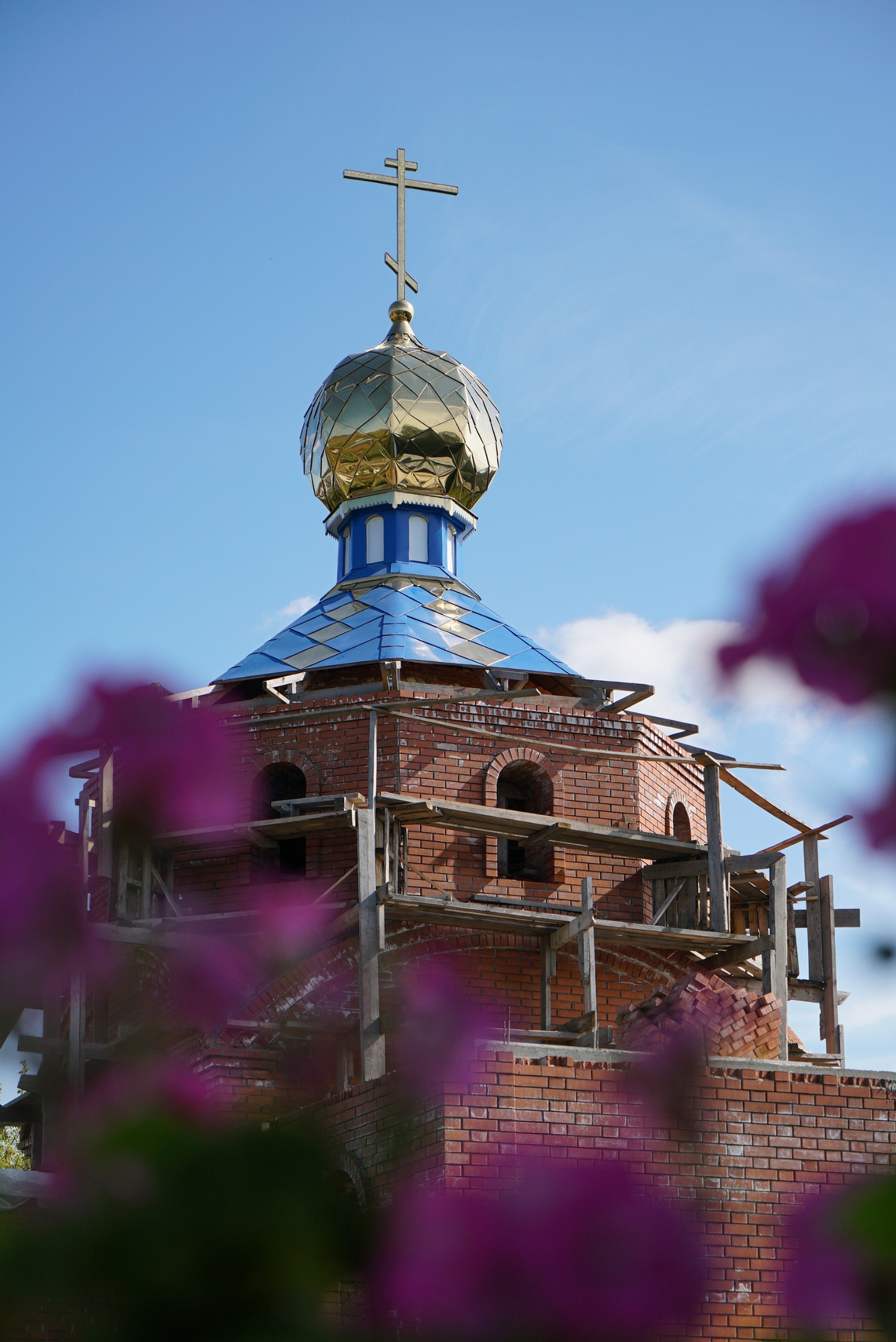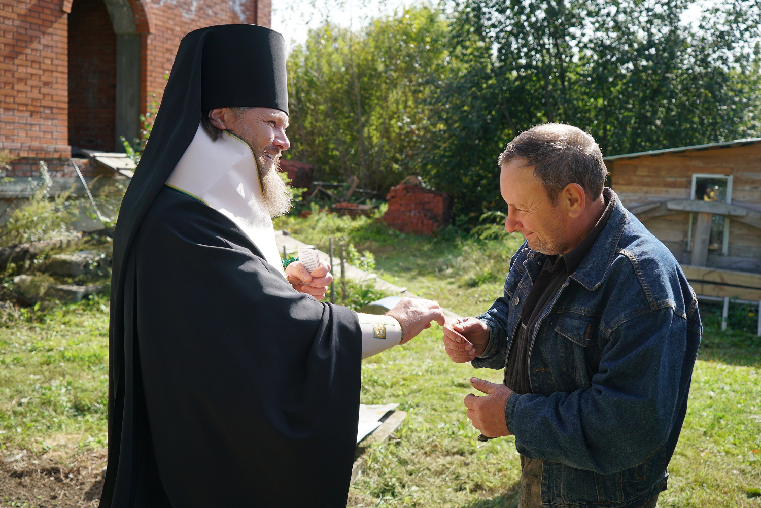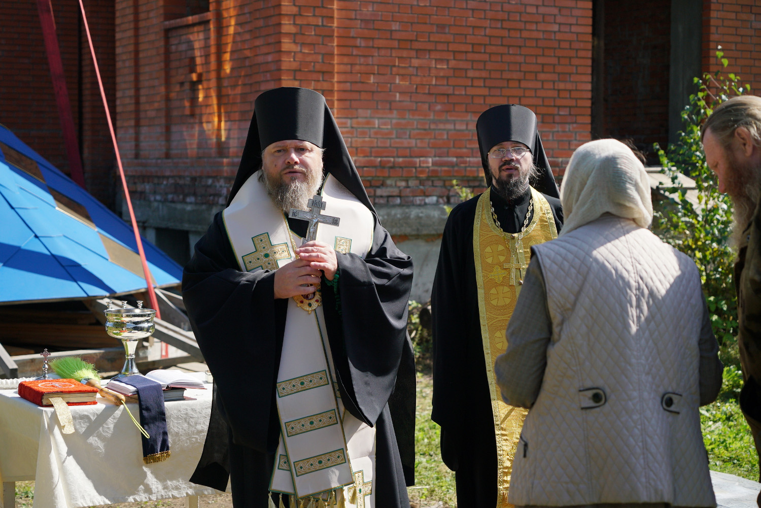 Епископ Серафим освятил накупольный крест строящегося храма Тихвинской иконы Божией Матери поселка Боровое