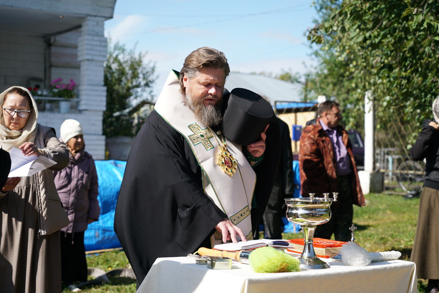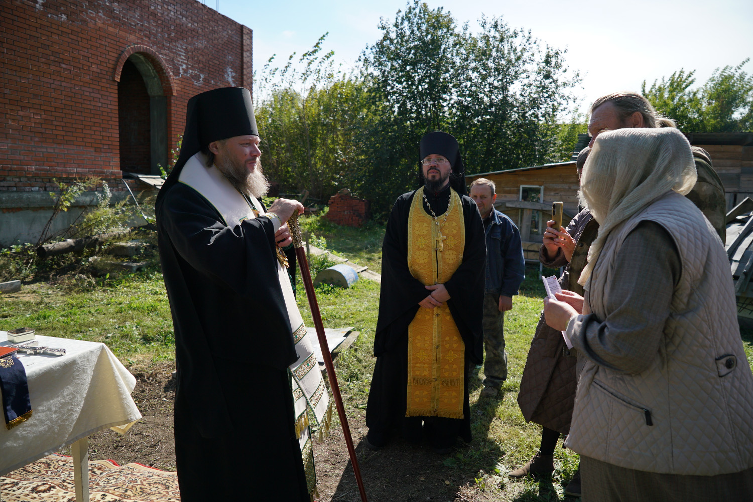 12 сентября епископ Бийский и Белокурихинский Серафим освятил накупольный крест строящегося храма Тихвинской иконы Божией Матери поселка Боровое города Бийска.