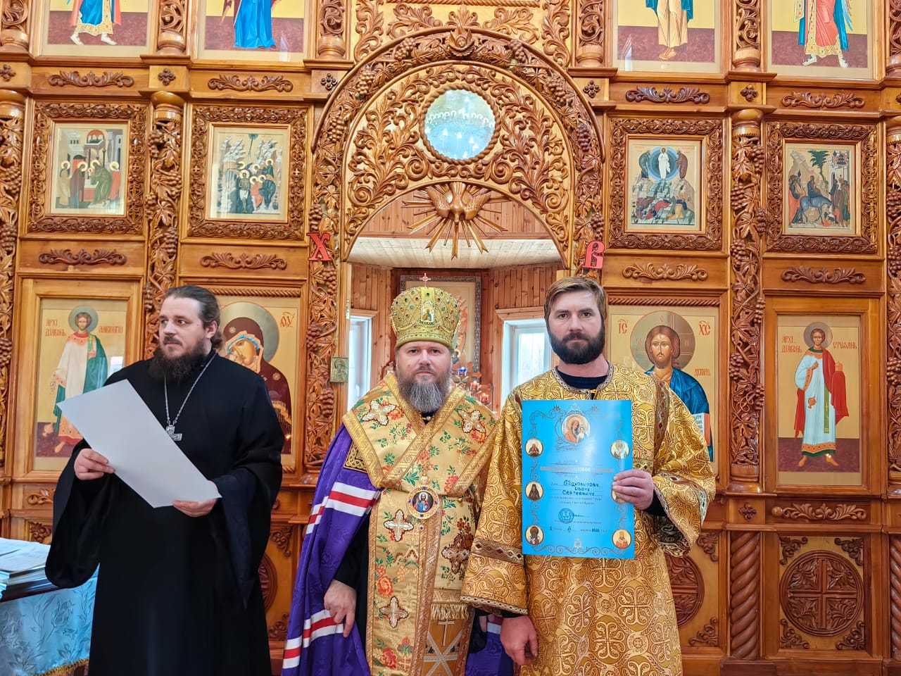 Депутат Государственной Думы Бессарабов Даниил Владимирович вручил благодарственные письма за усердные труды во благо жизни храма Колосовой Людмиле Геннадьевне, Моисеевой Надежде Ивановне, Рыбкиной Ольге Викторовне, Борисенко Галине Петровне, Чувилеву Владимиру Владимировичу.