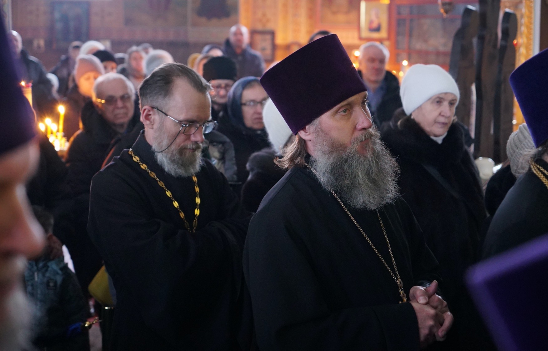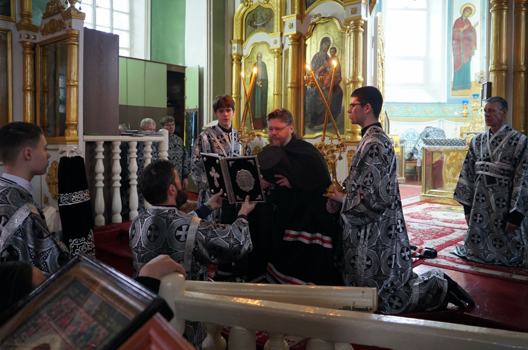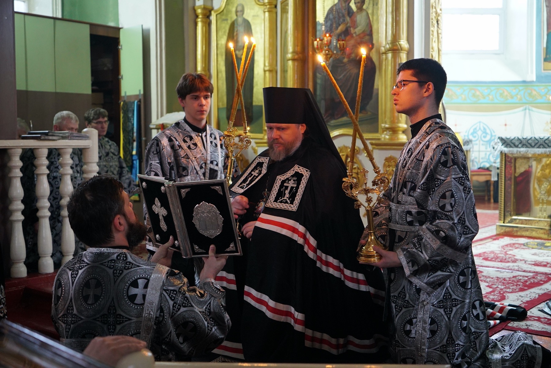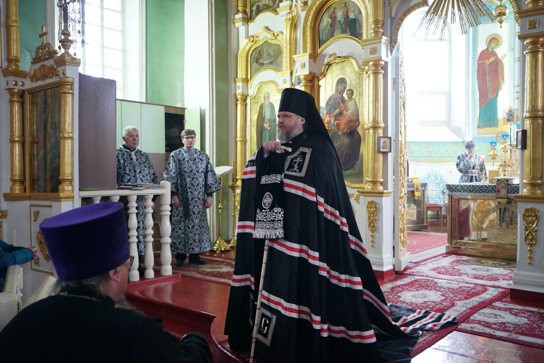После пения великого прокимна и закрытия Царских врат епископ Серафим и духовенство переоблачились в великопостные черные ризы.