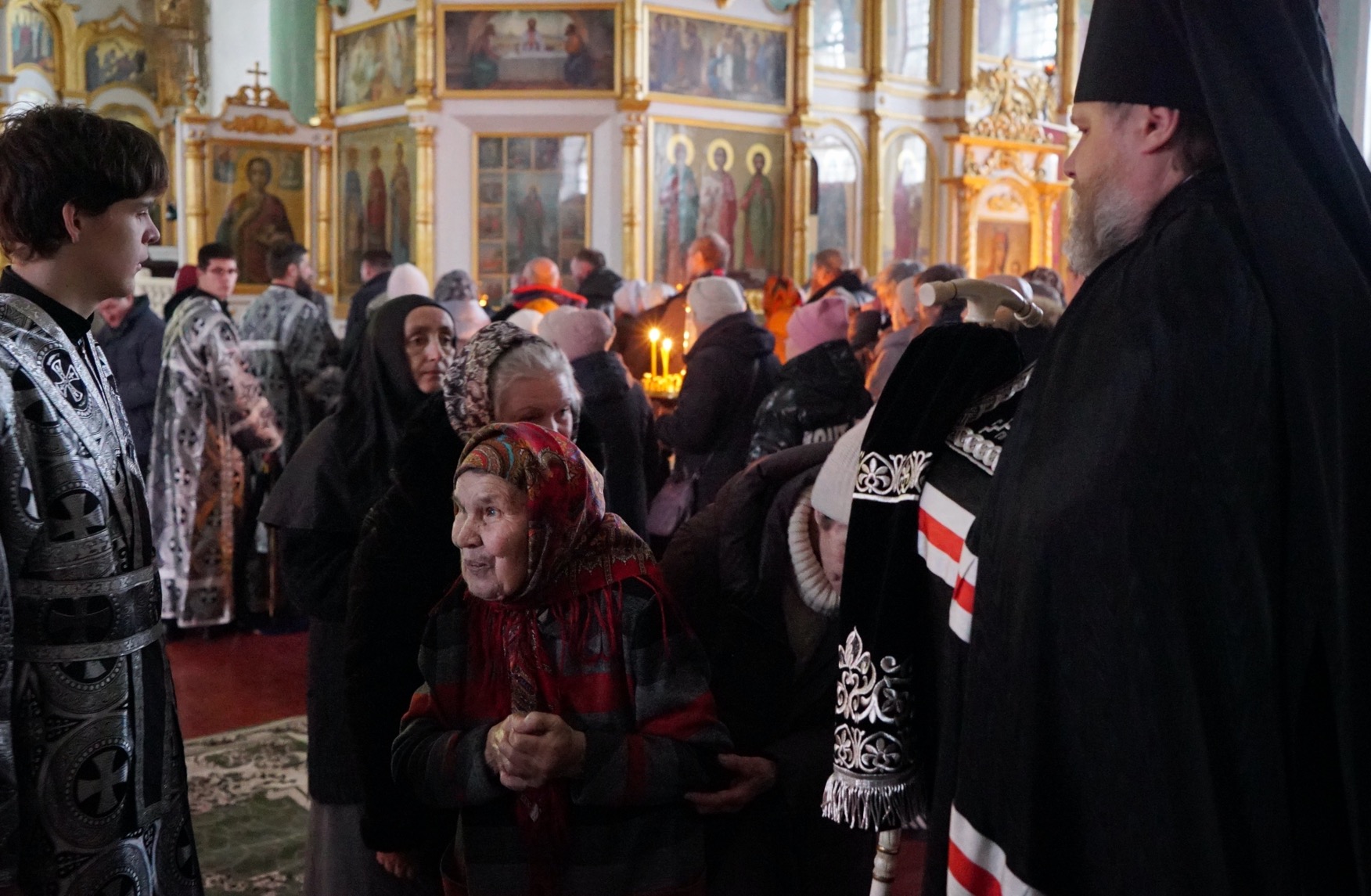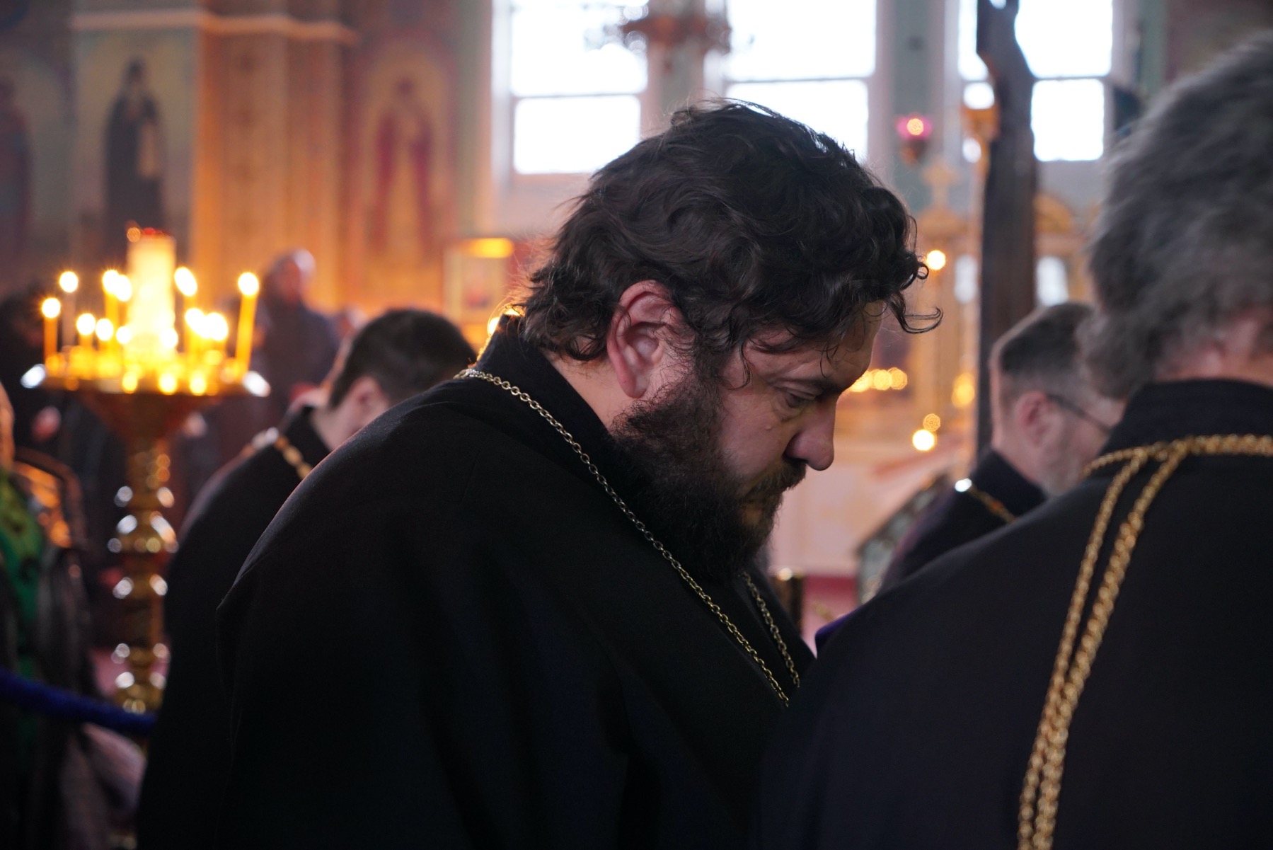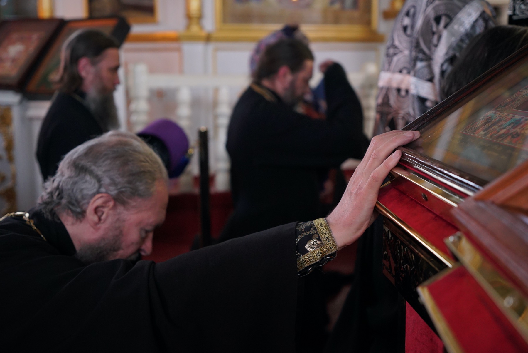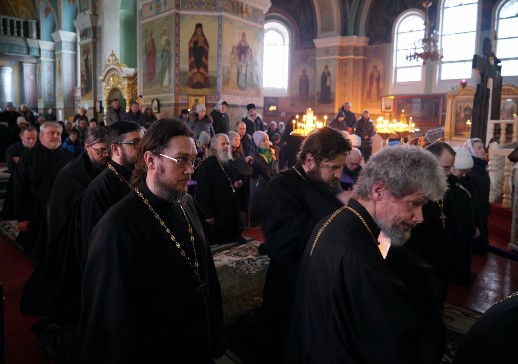 После пения великого прокимна и закрытия Царских врат епископ Серафим и духовенство переоблачились в великопостные черные ризы.