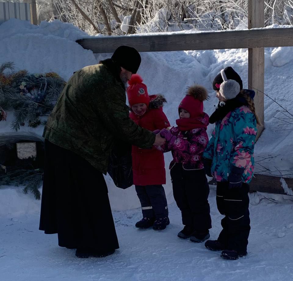 В завершение встречи настоятель храма иерей Димитрий Камбалин угостил всех присутствующих сладкими подарками.