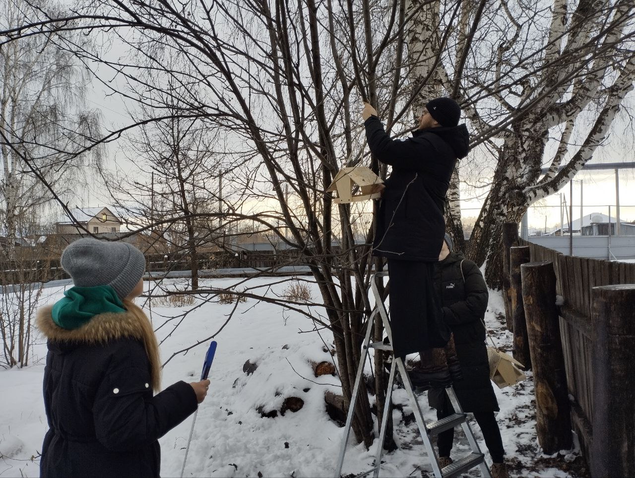 Кормление птиц будут осуществлять представители организации "Движение Первых" и прихожане Свято-Троицкого храма. В дальнейшем планируется разместить на территории еще несколько кормушек.